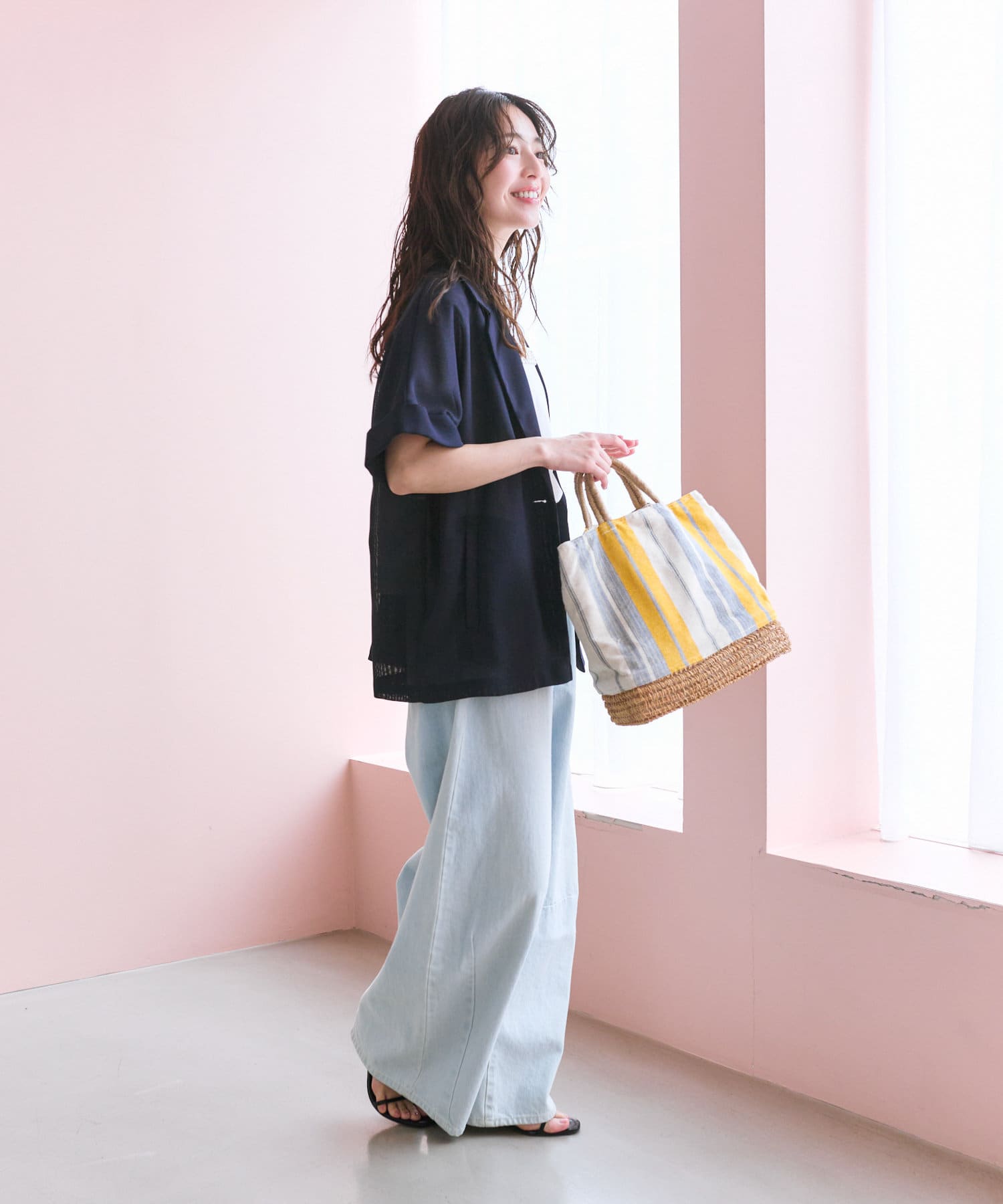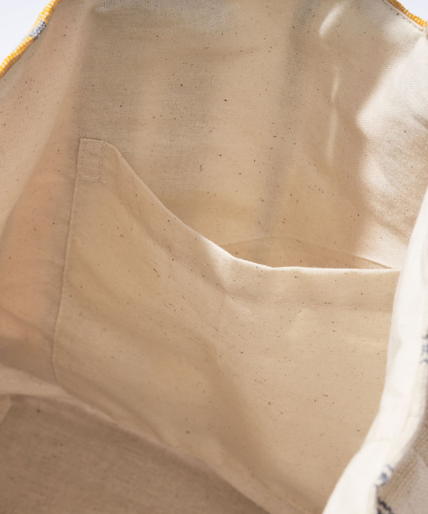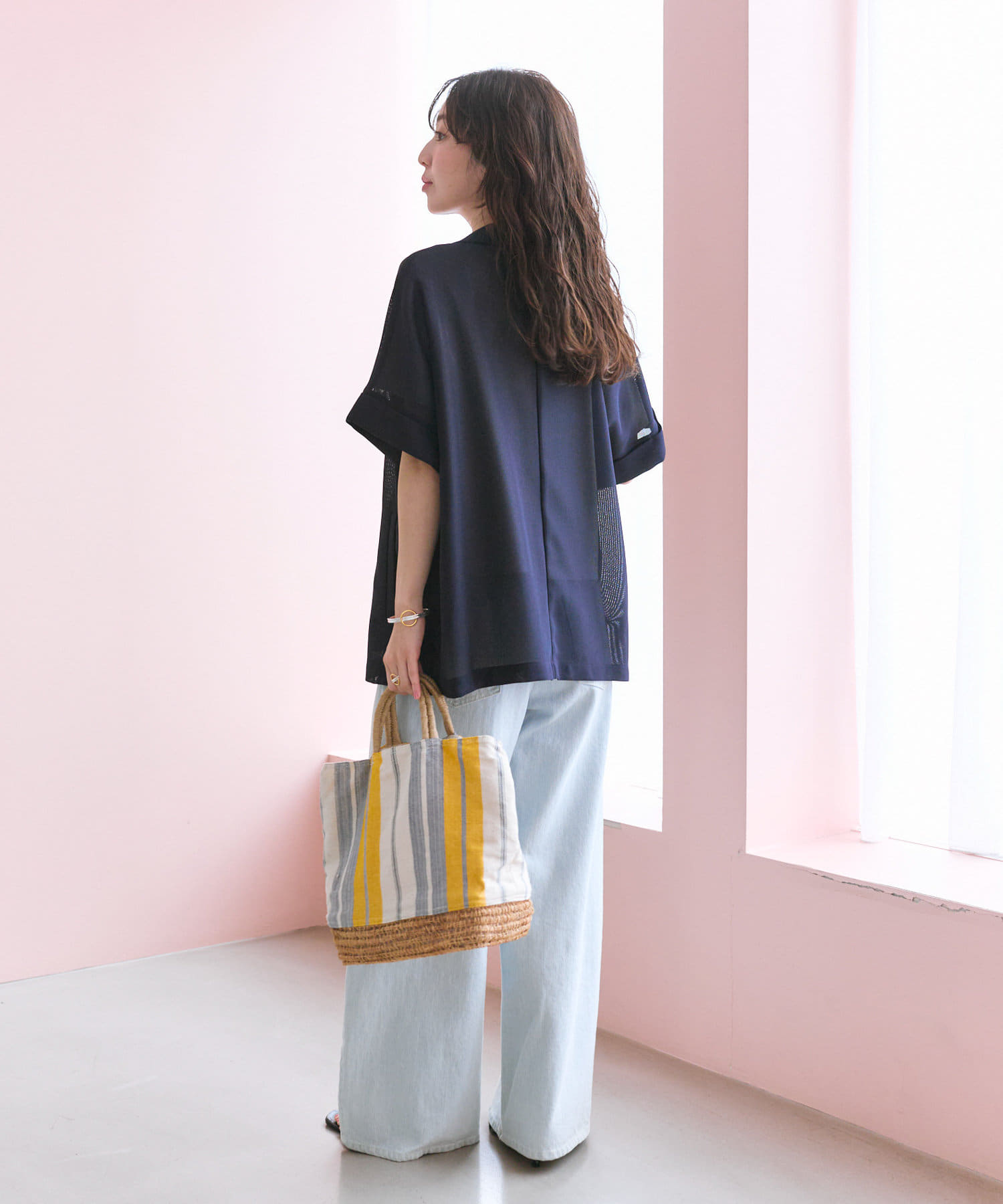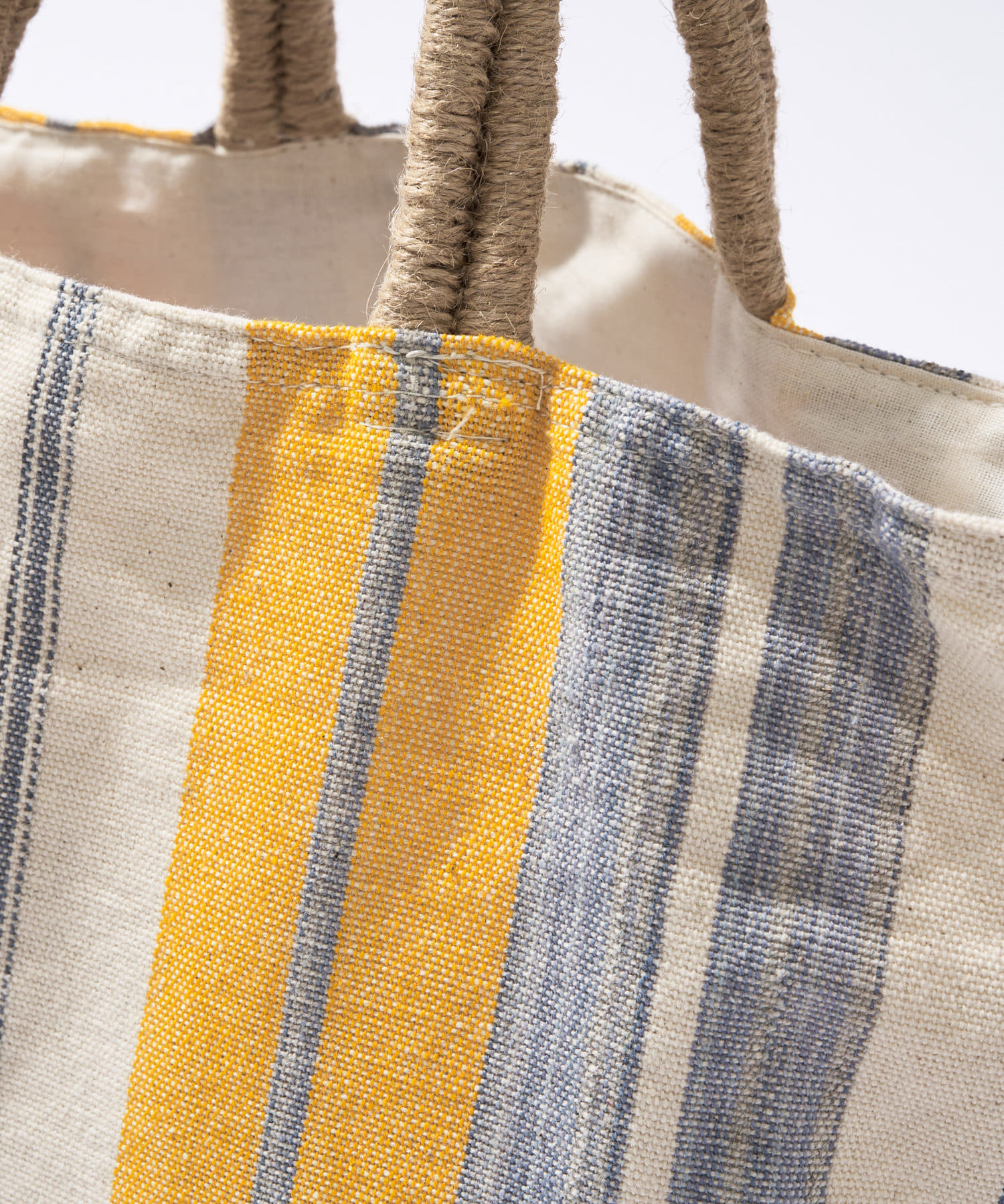 本体はコットン、バッグ底はパームファイバー、持ち手にジュート素材を使用した