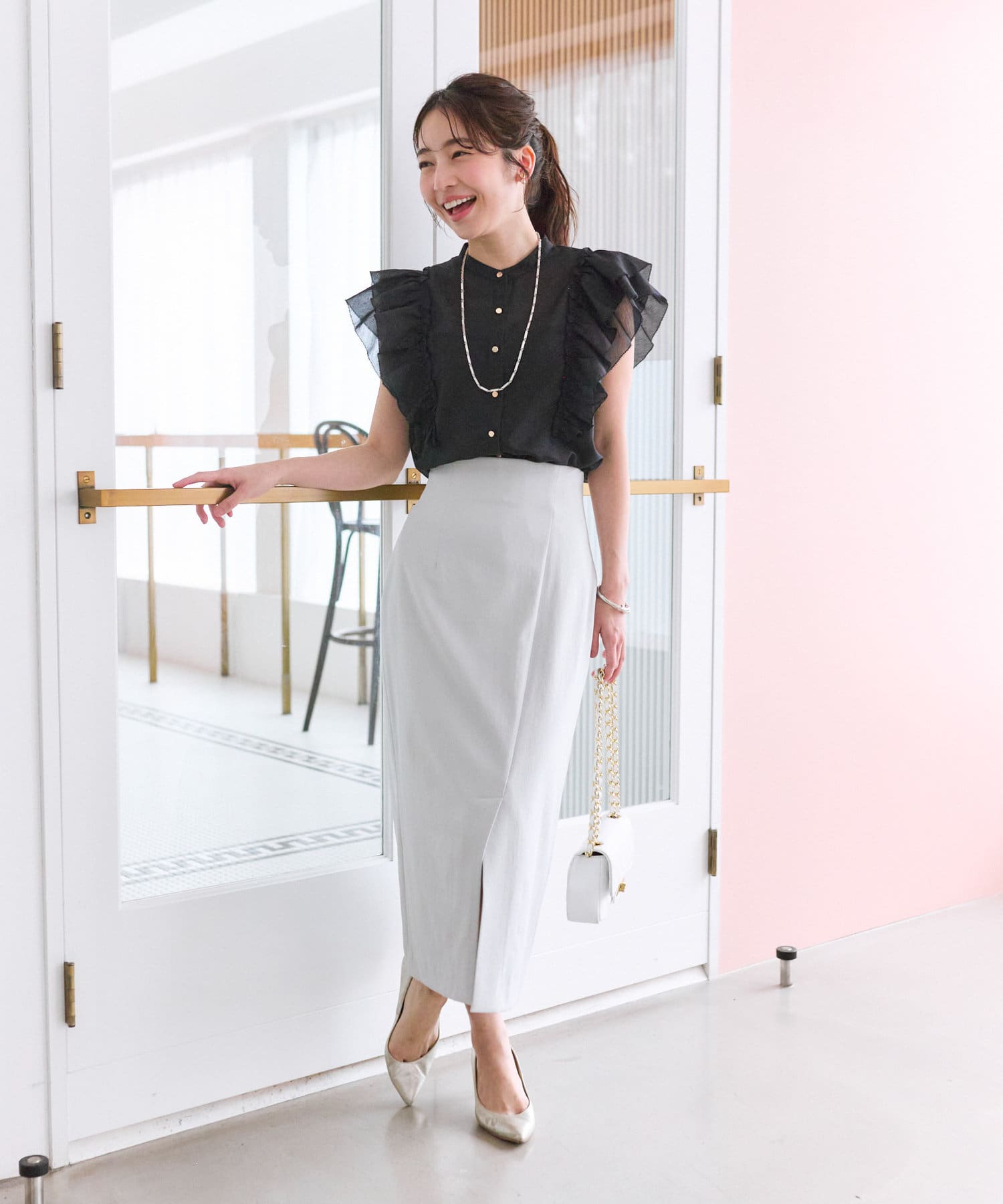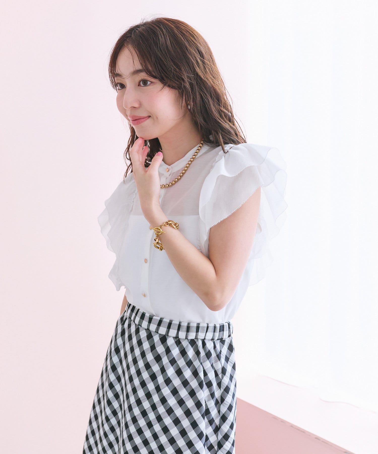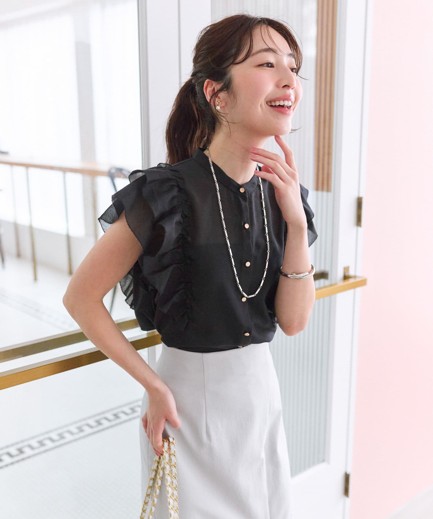 ふんわりと軽やかな印象のラッフルフリルブラウス。