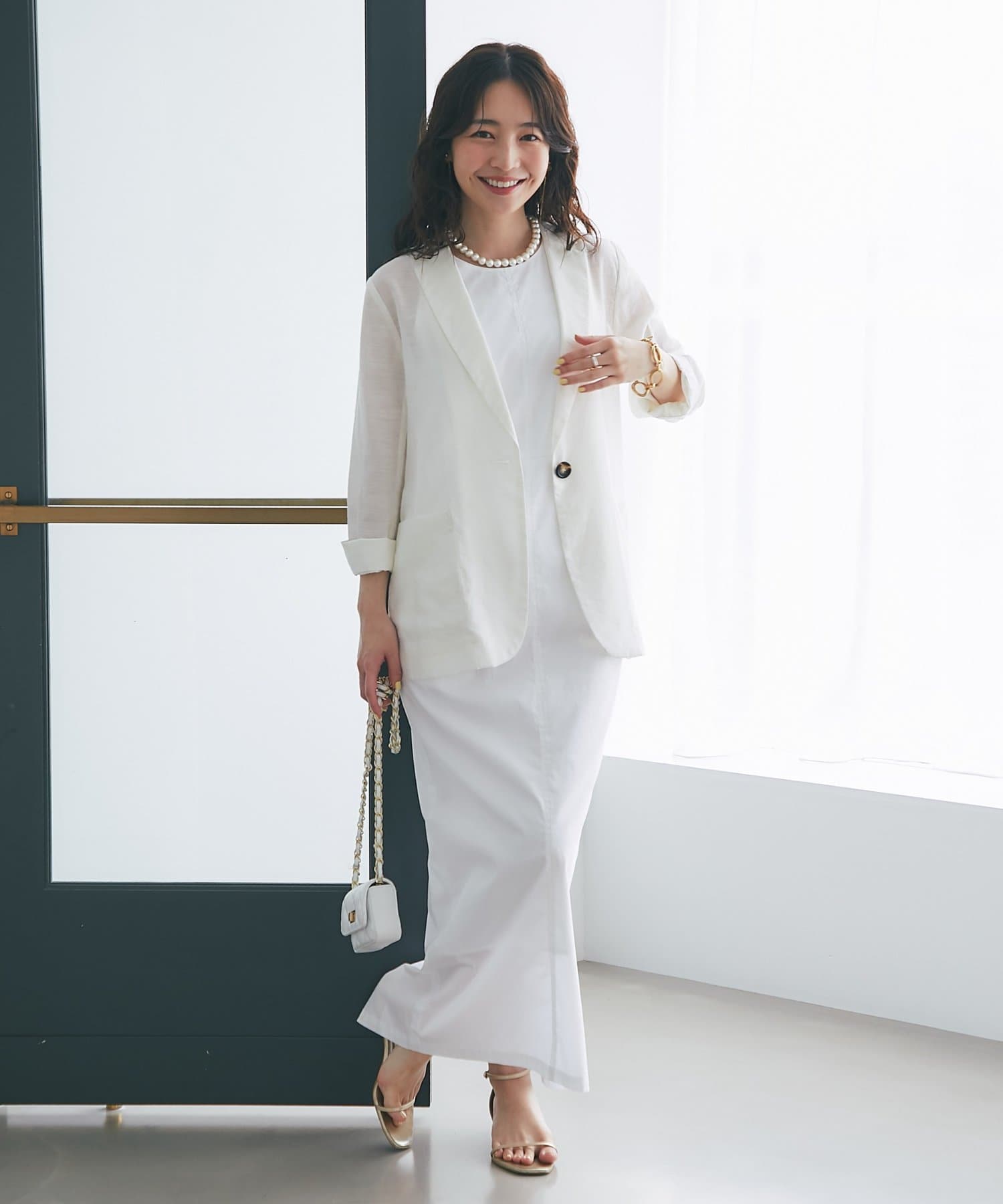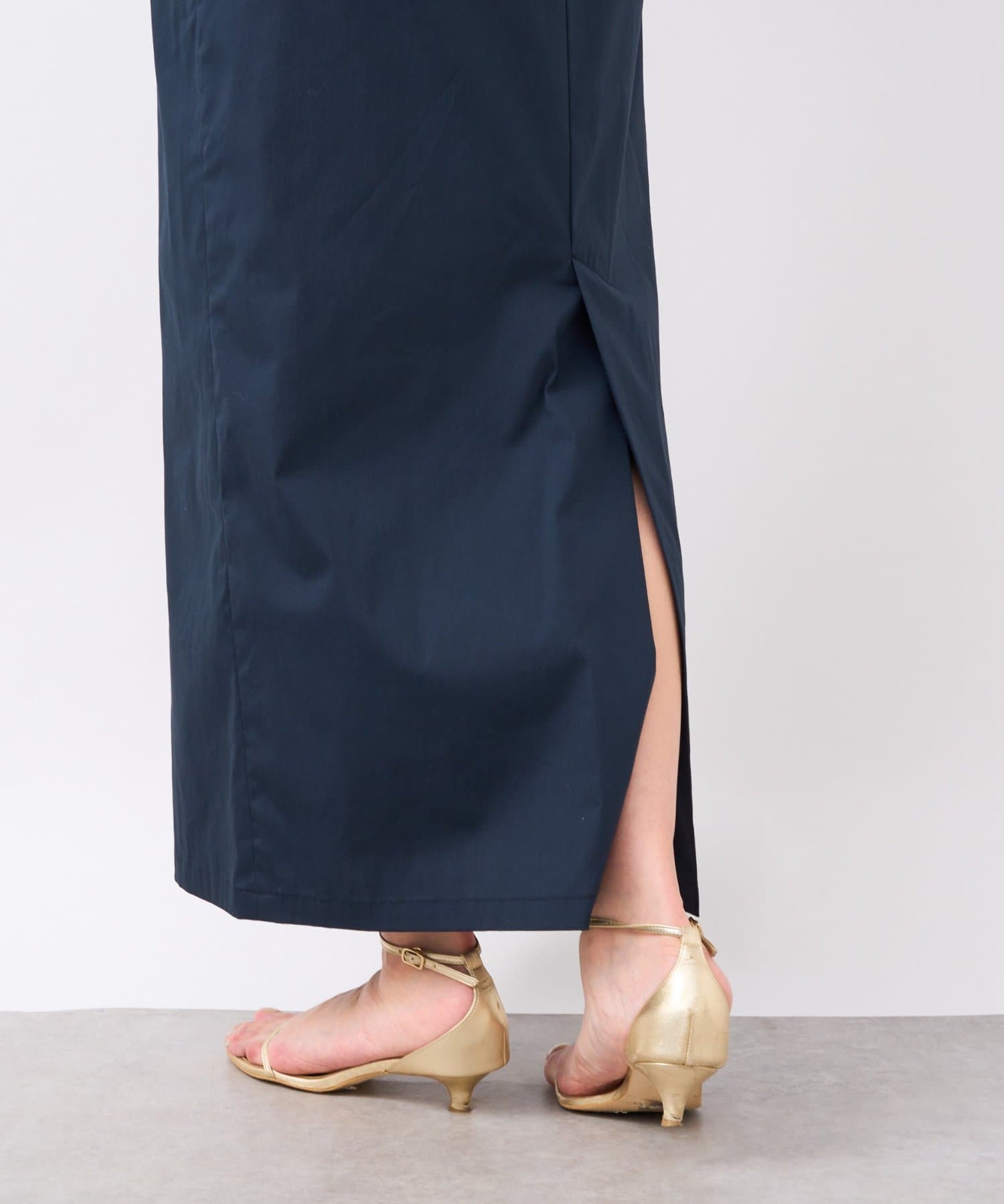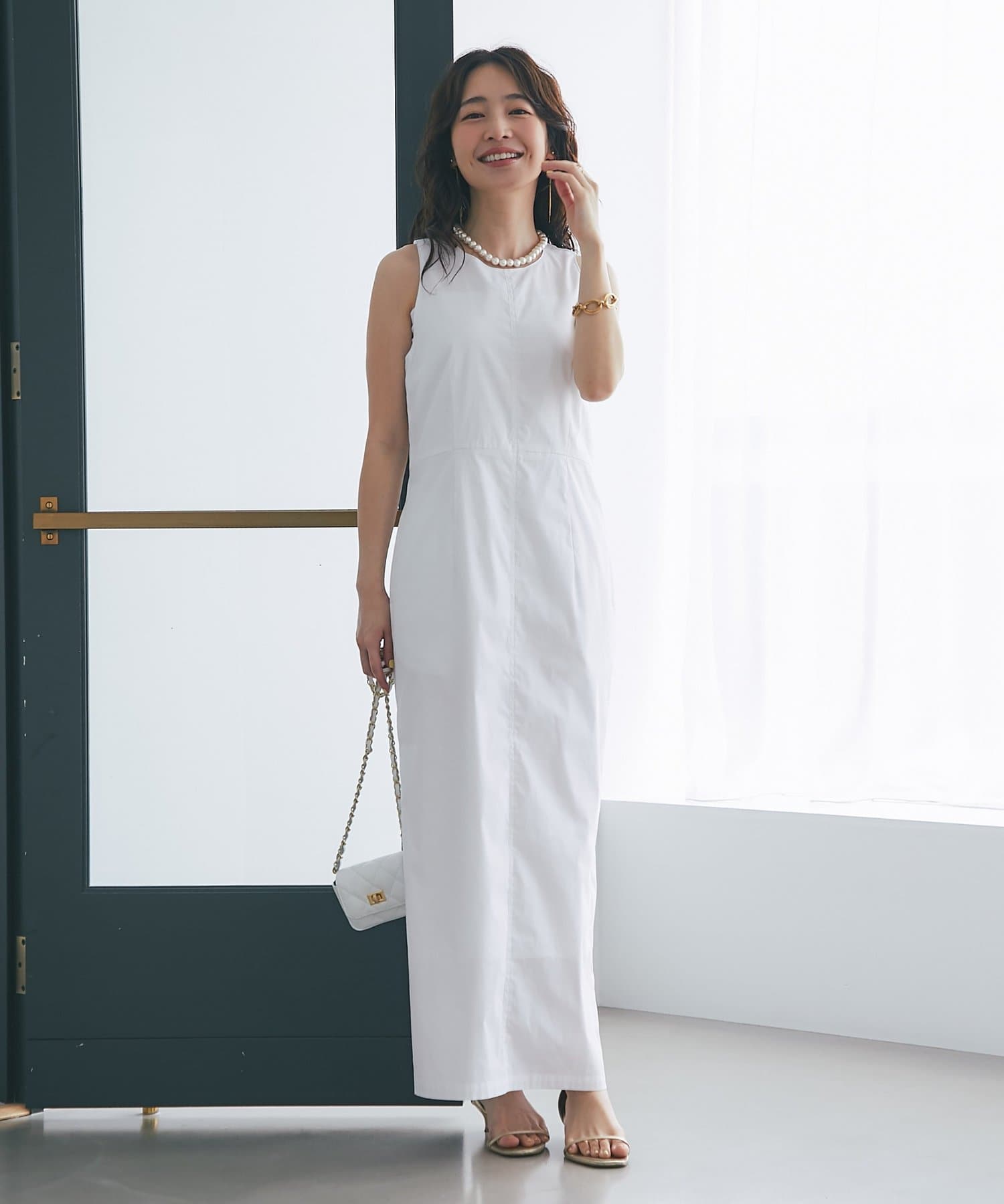 シンプルながらも洗練されたナローなシルエットのワンピース。
