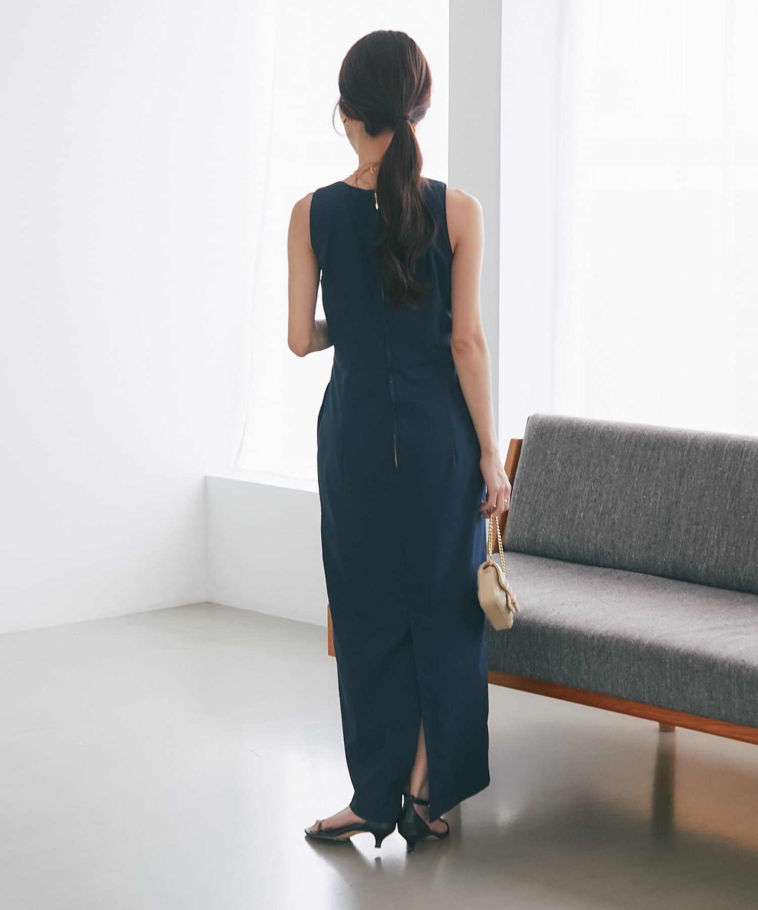 無駄を削ぎ落としたノースリーブのデザインが、すっきりとした印象を与えます。