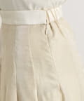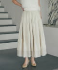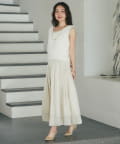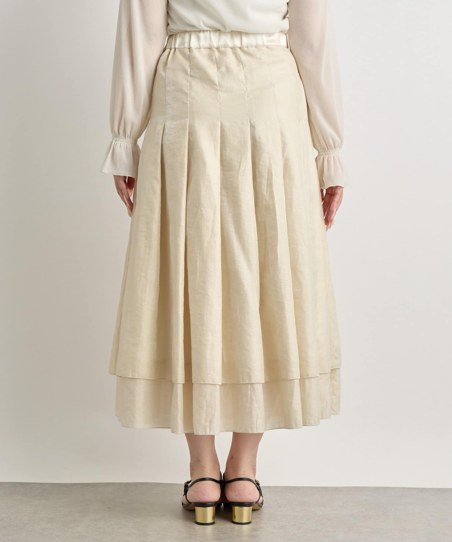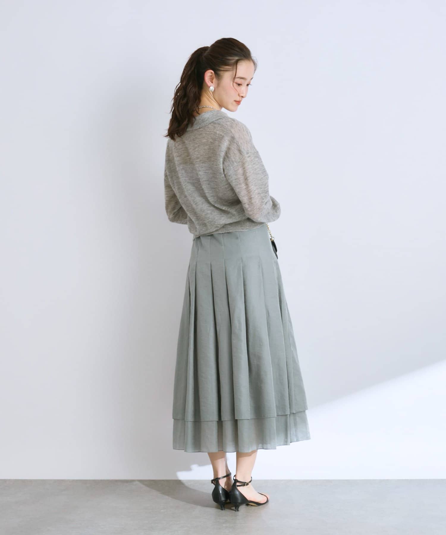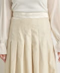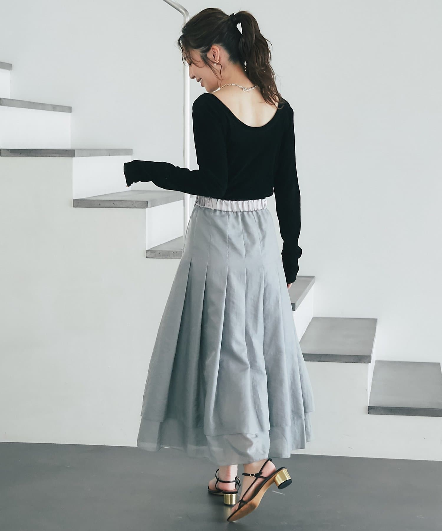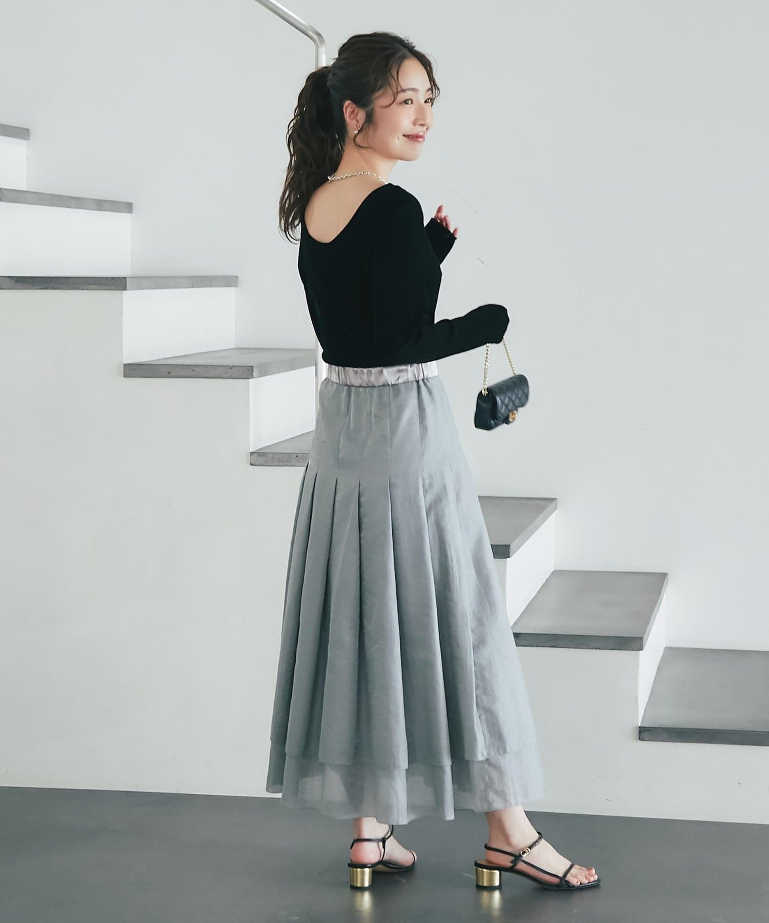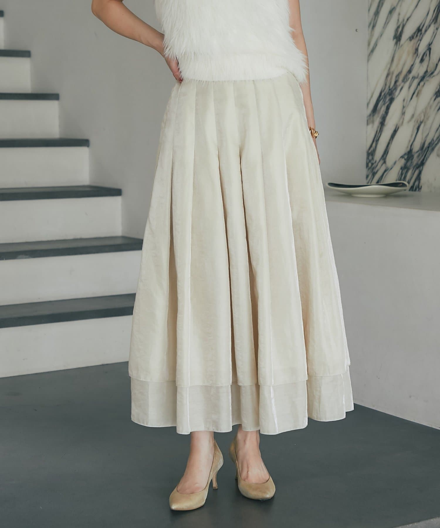 繊細な光沢を放つシアー素材が、フェミニンな印象を際立たせるタックスカート。