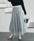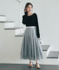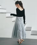 タイトなトップスを合わせて、スカートのフレアを引き立てるとスタイルアップ効果も◎