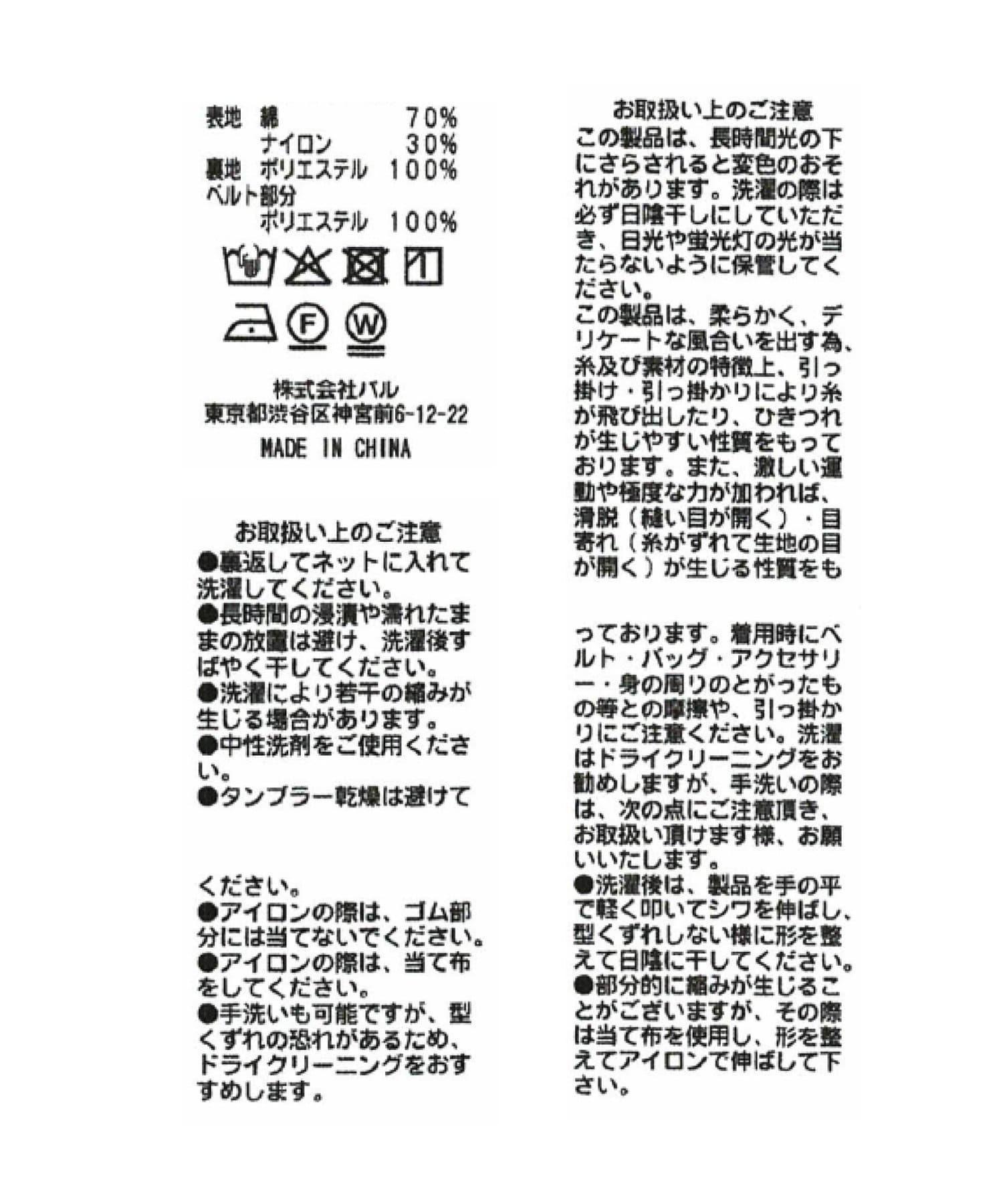 品番 LBZ1052101A0003e 素材 表地 綿:70%