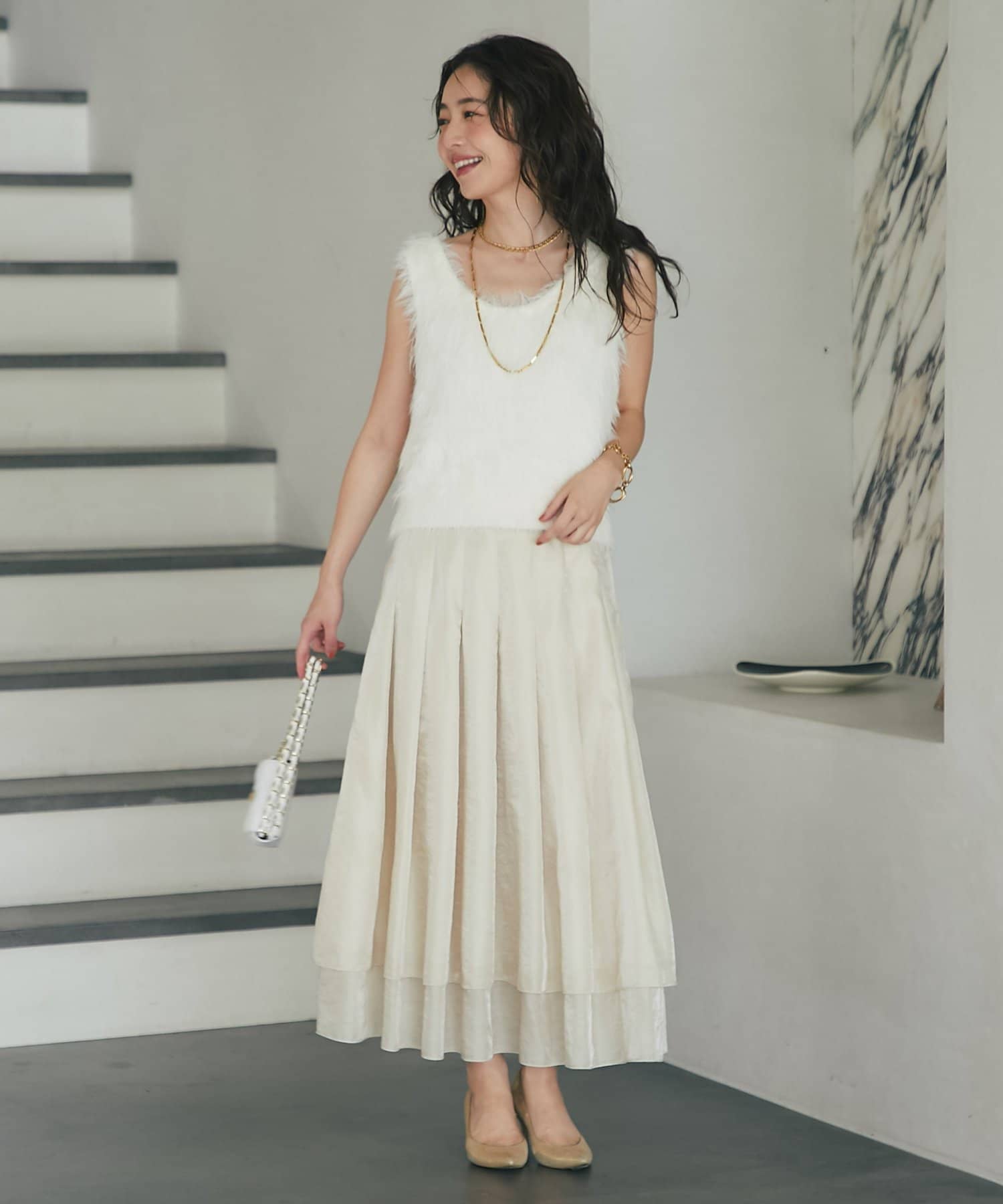 ふんわりとした贅沢なボリューム感で、2枚重ねの裾がポイント。