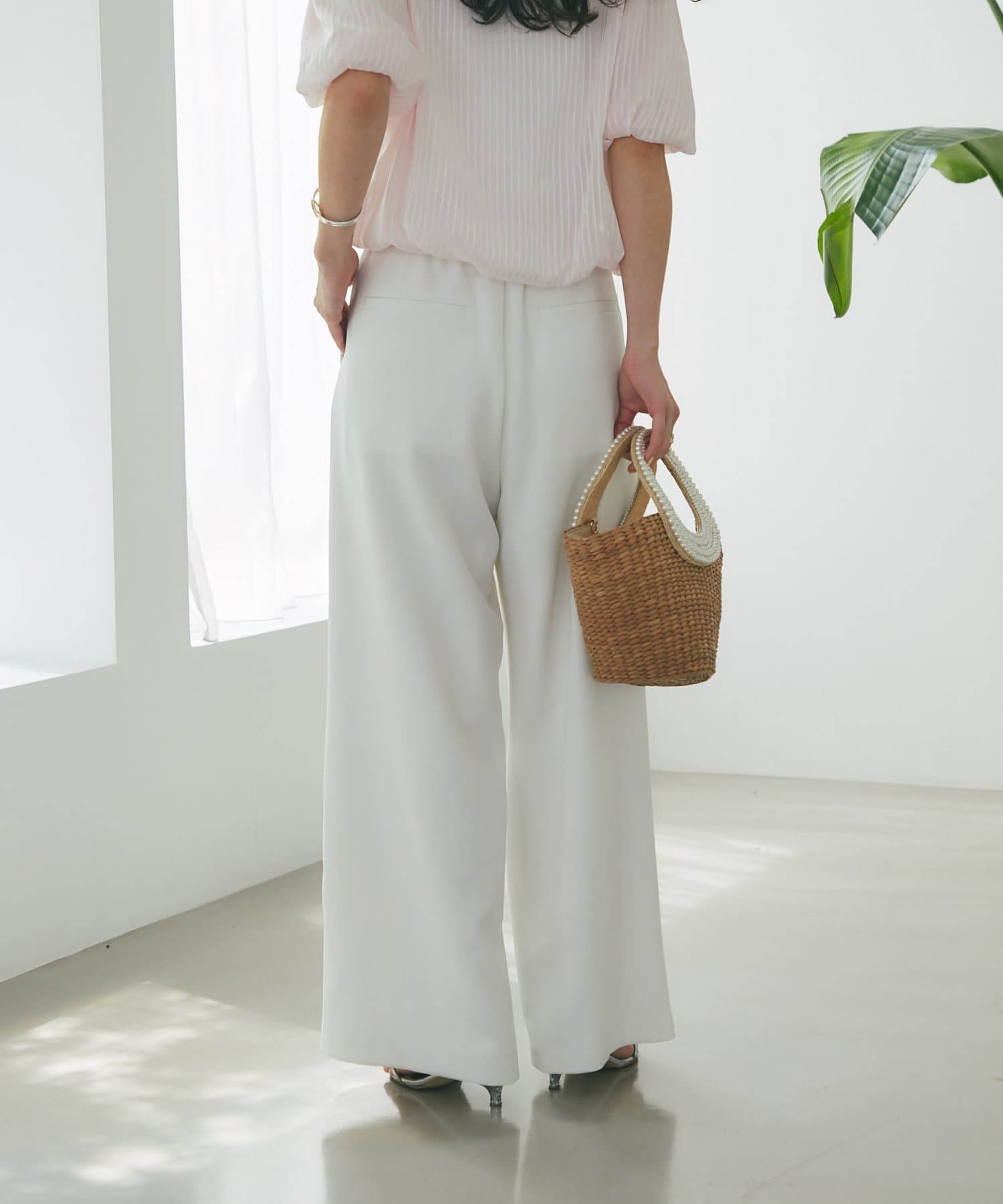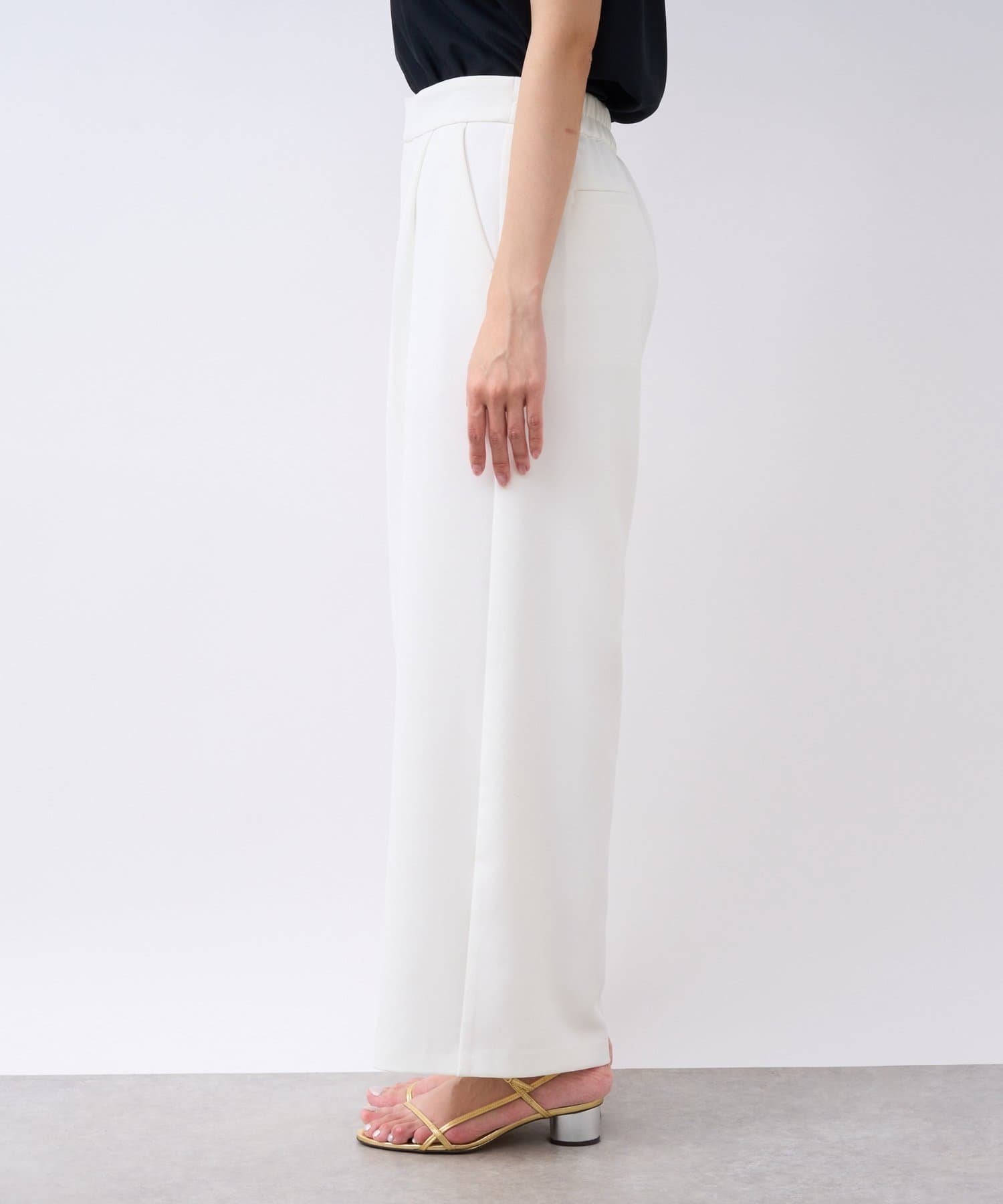 洗練された印象を与える、美しいシルエットのワイドパンツです。