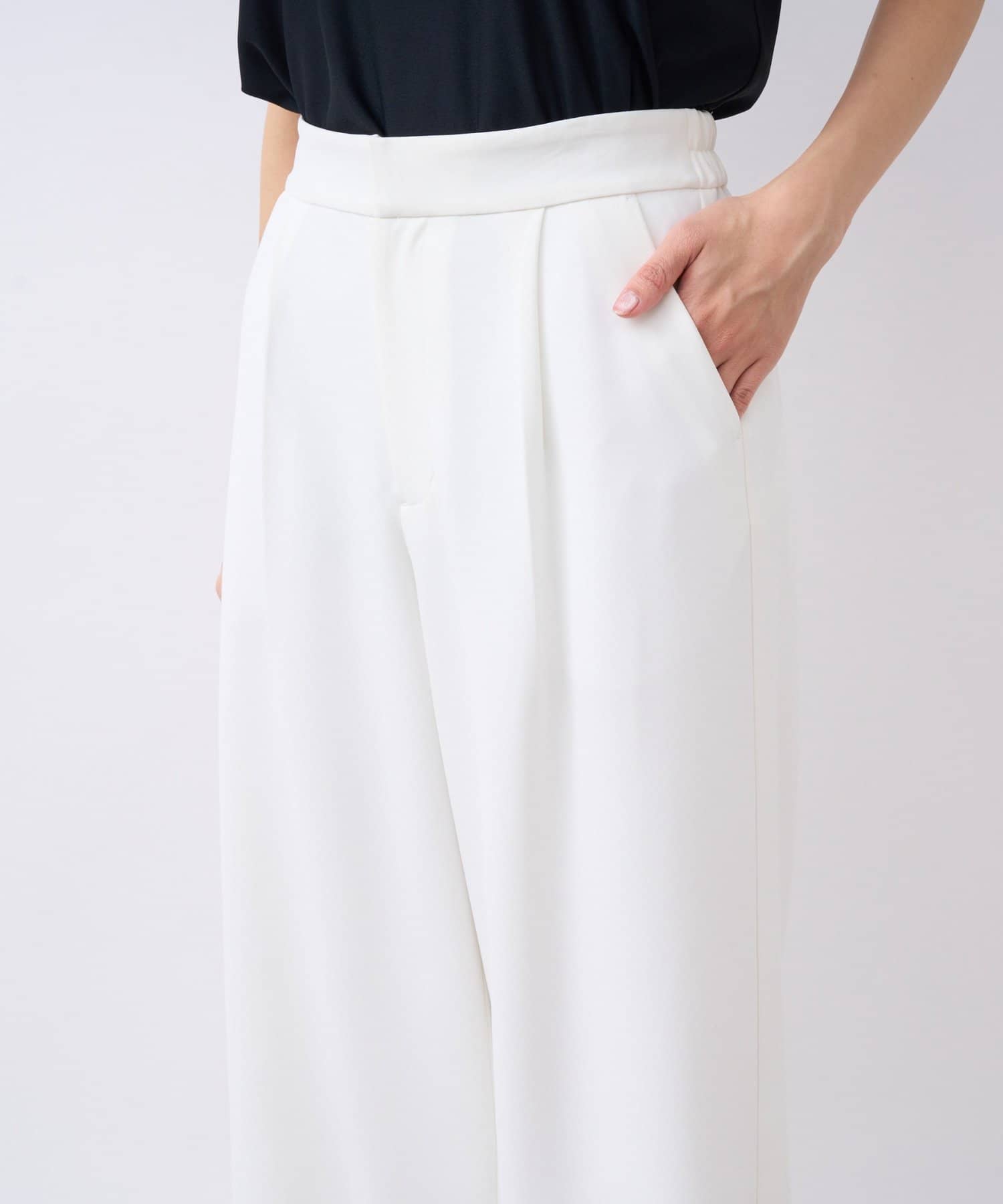 落ち感のある素材を使用し、気になるレッグラインをカバーしながら、