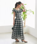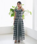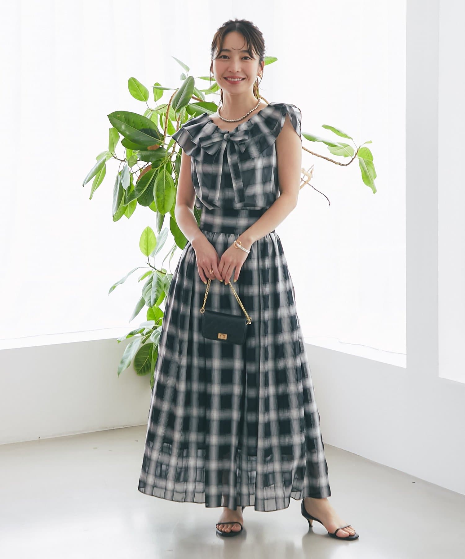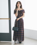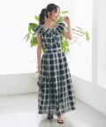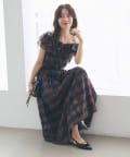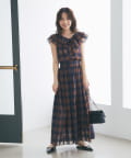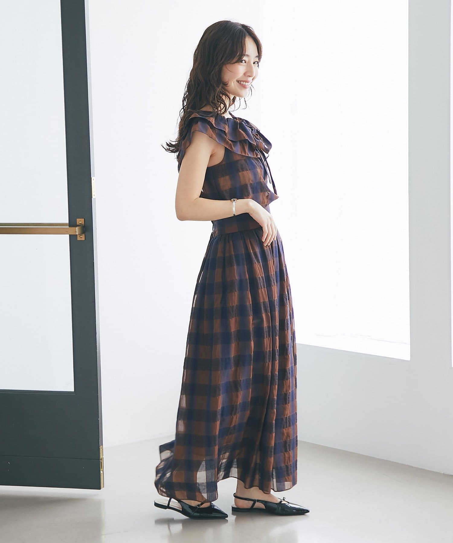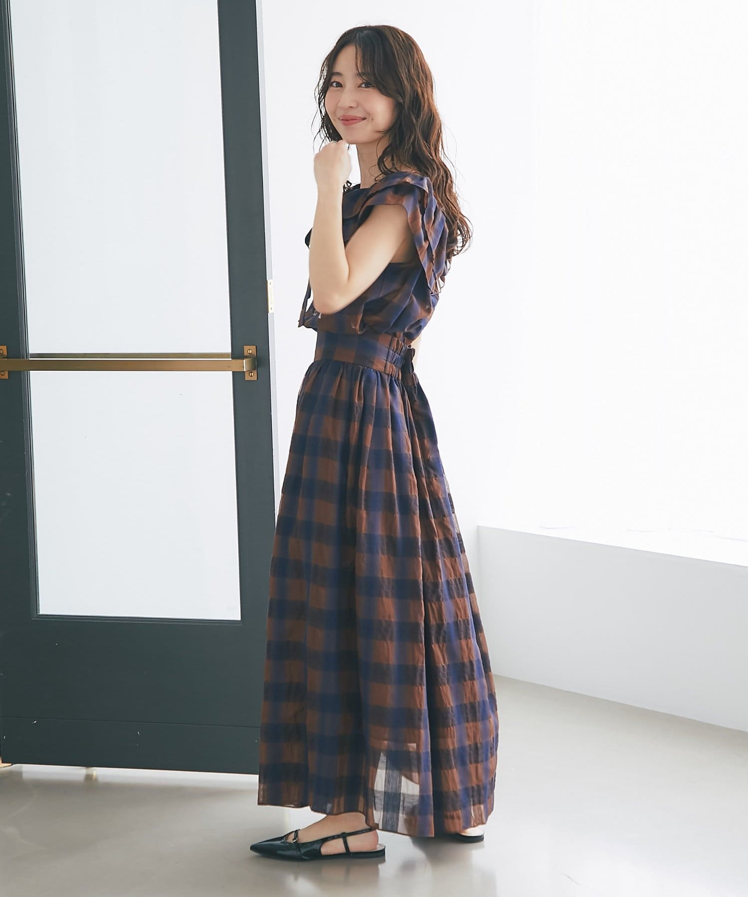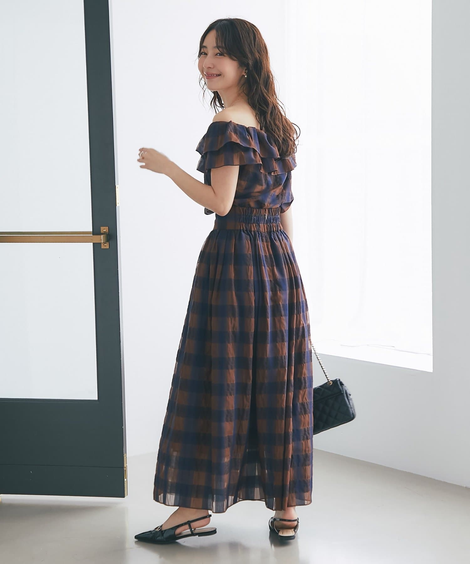・シアーオンブレーチェックギャザーロングスカート(LBZ1052101A0001)