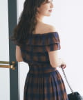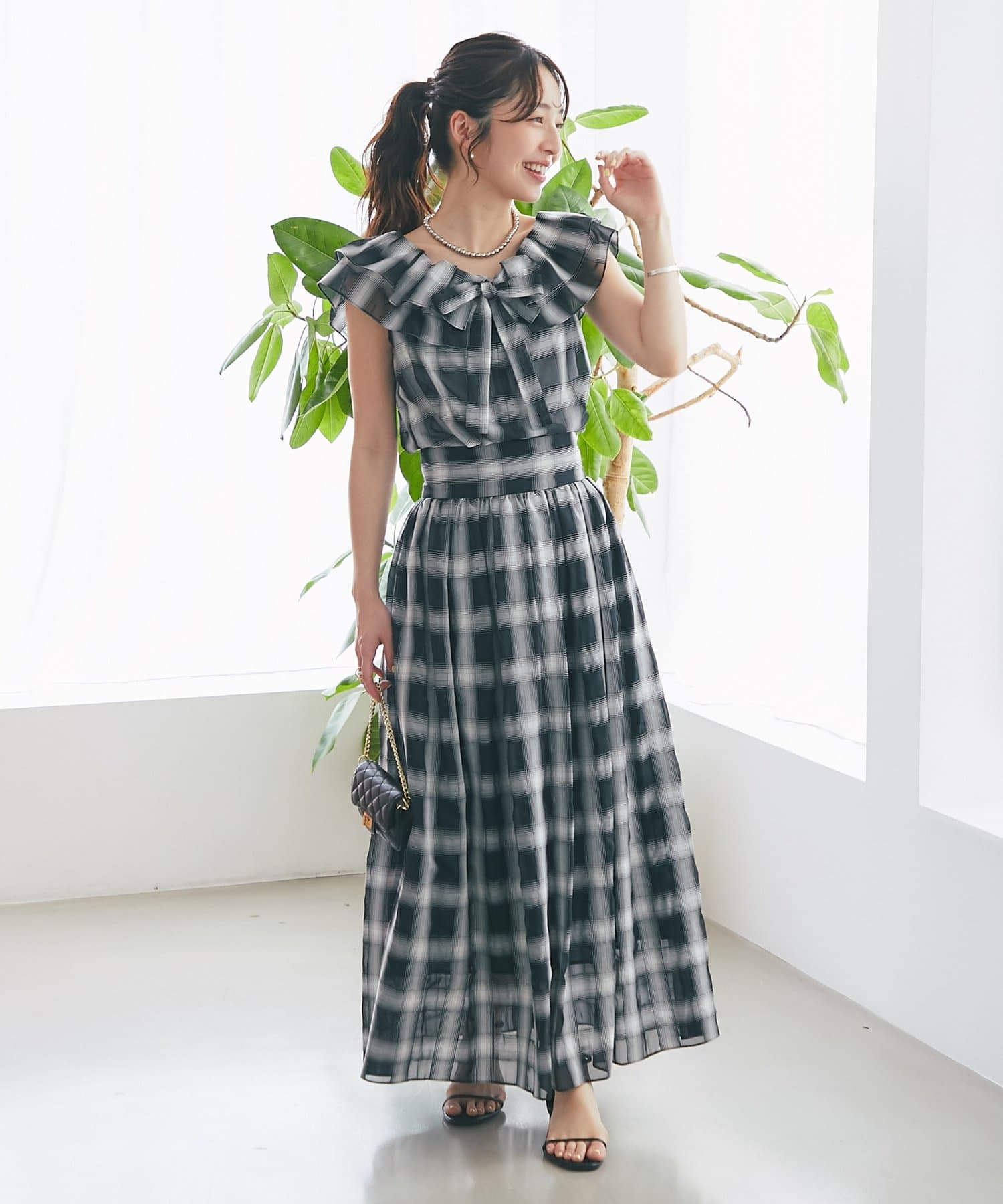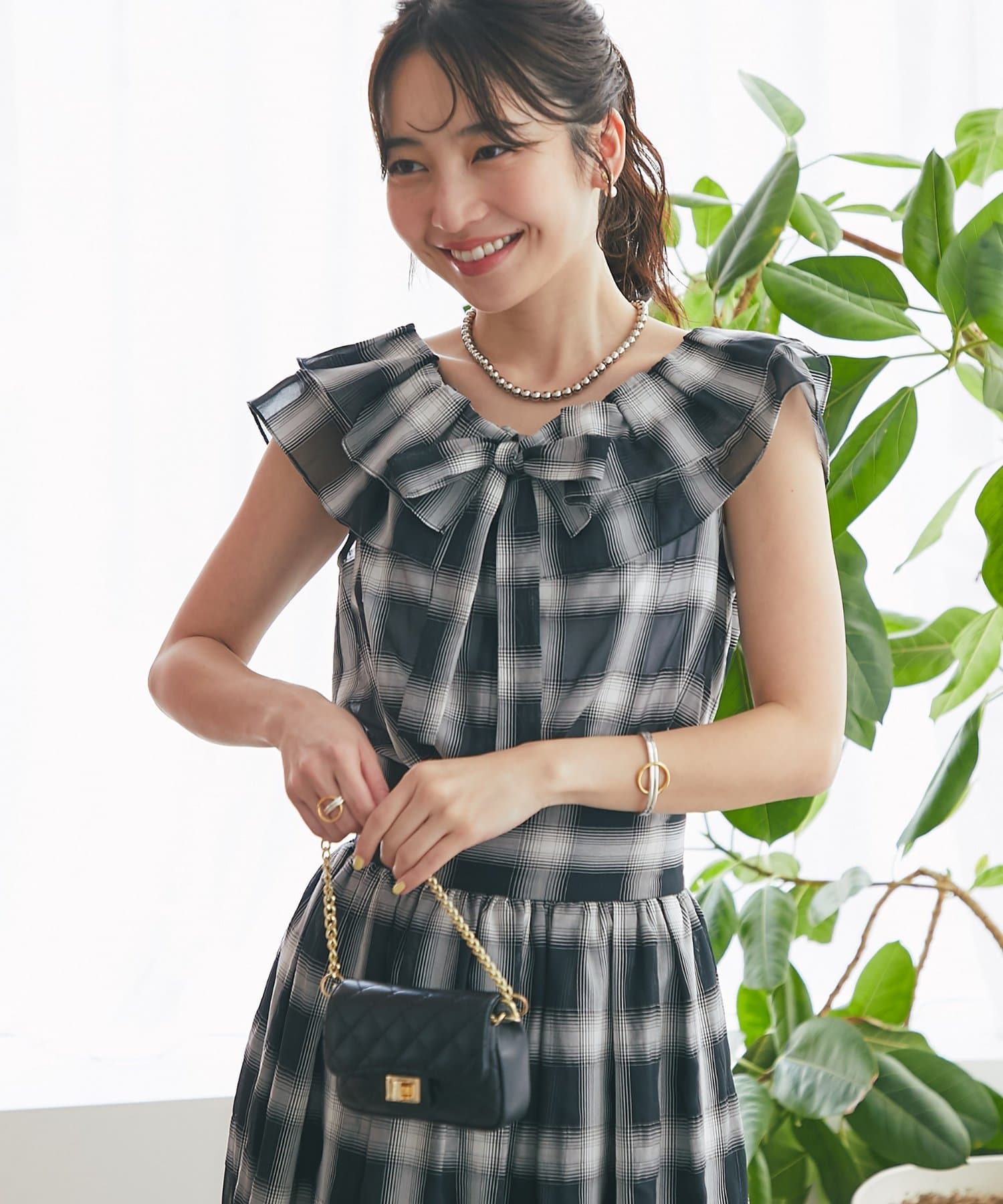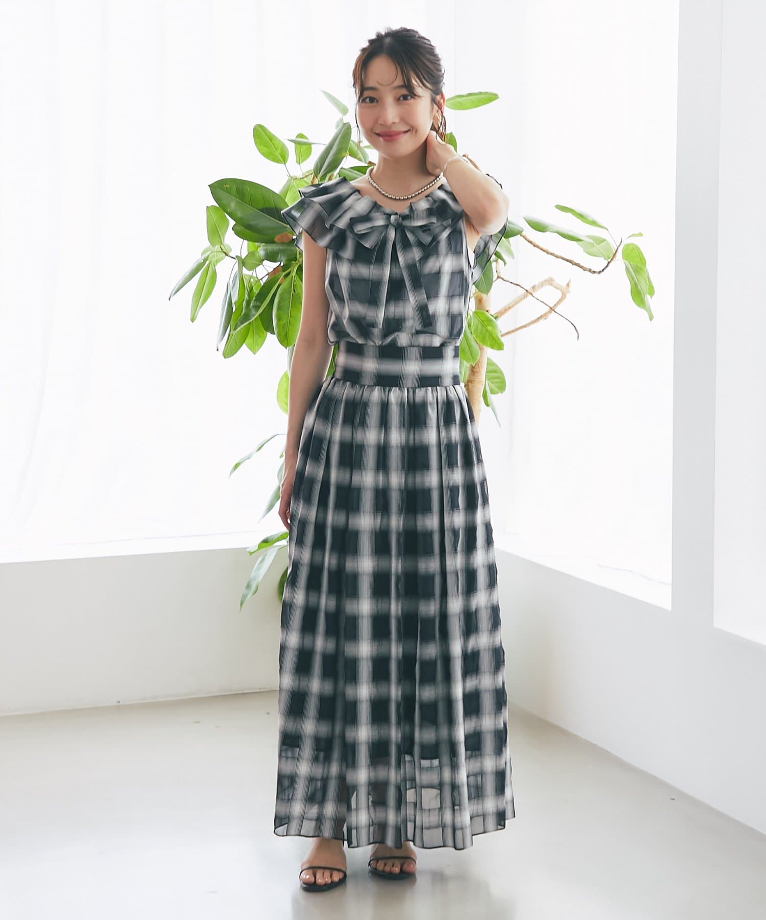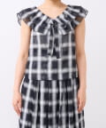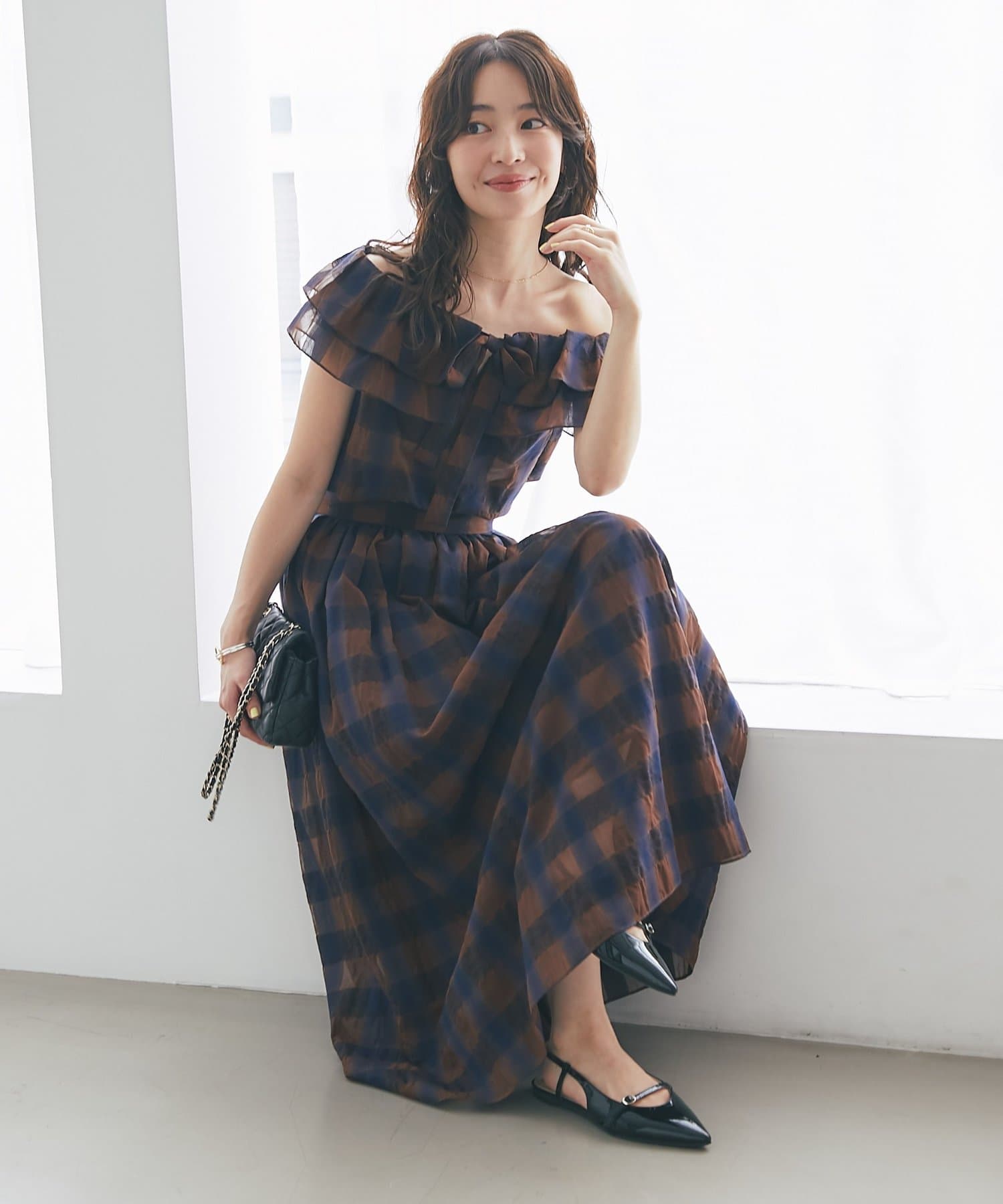 【セットアップ可】シアーオンブレーチェック2WAYフリルオフショルブラウス