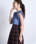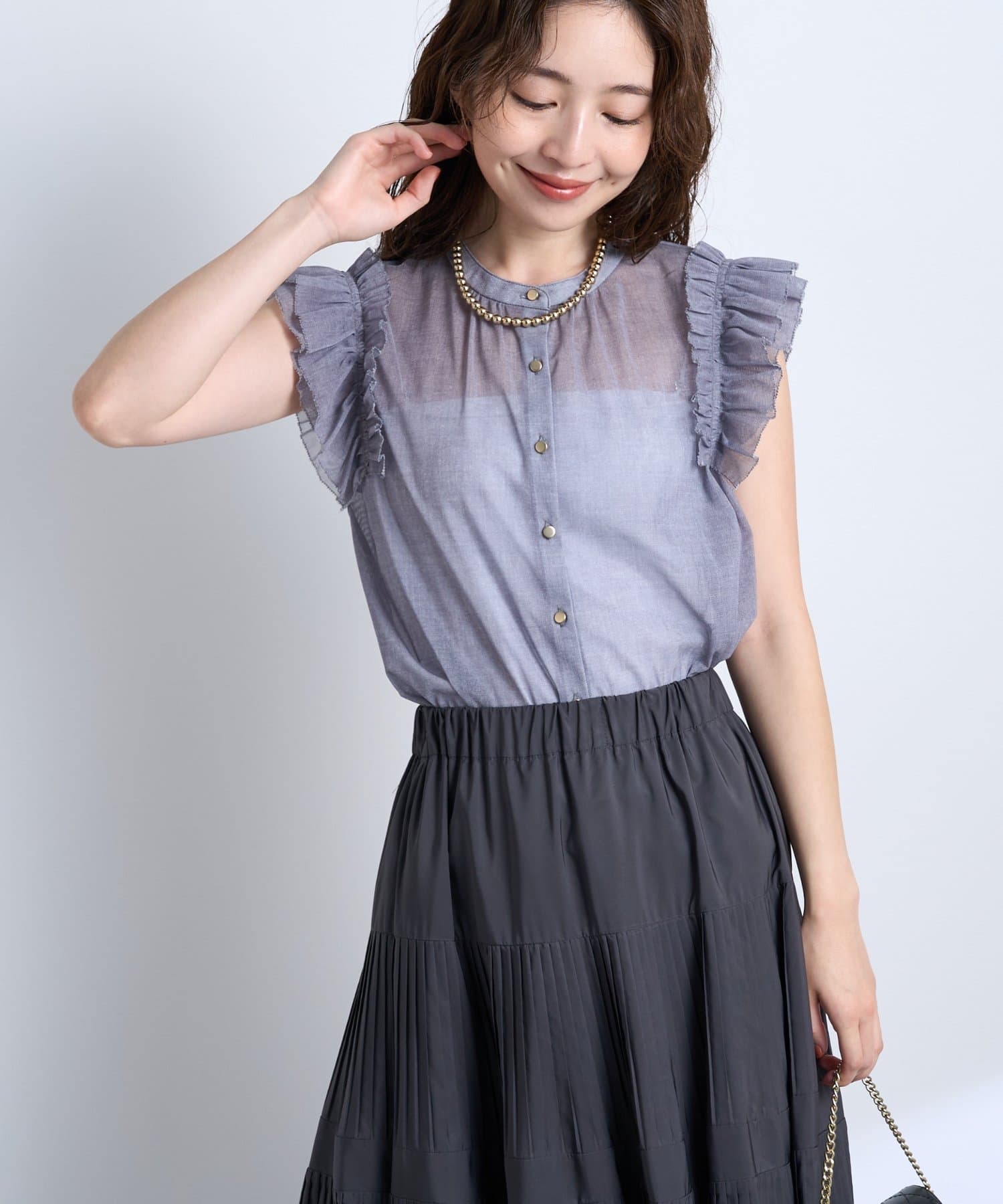 【涼しくて軽い】デニムライクネットチュールフリルブラウス
