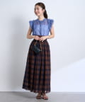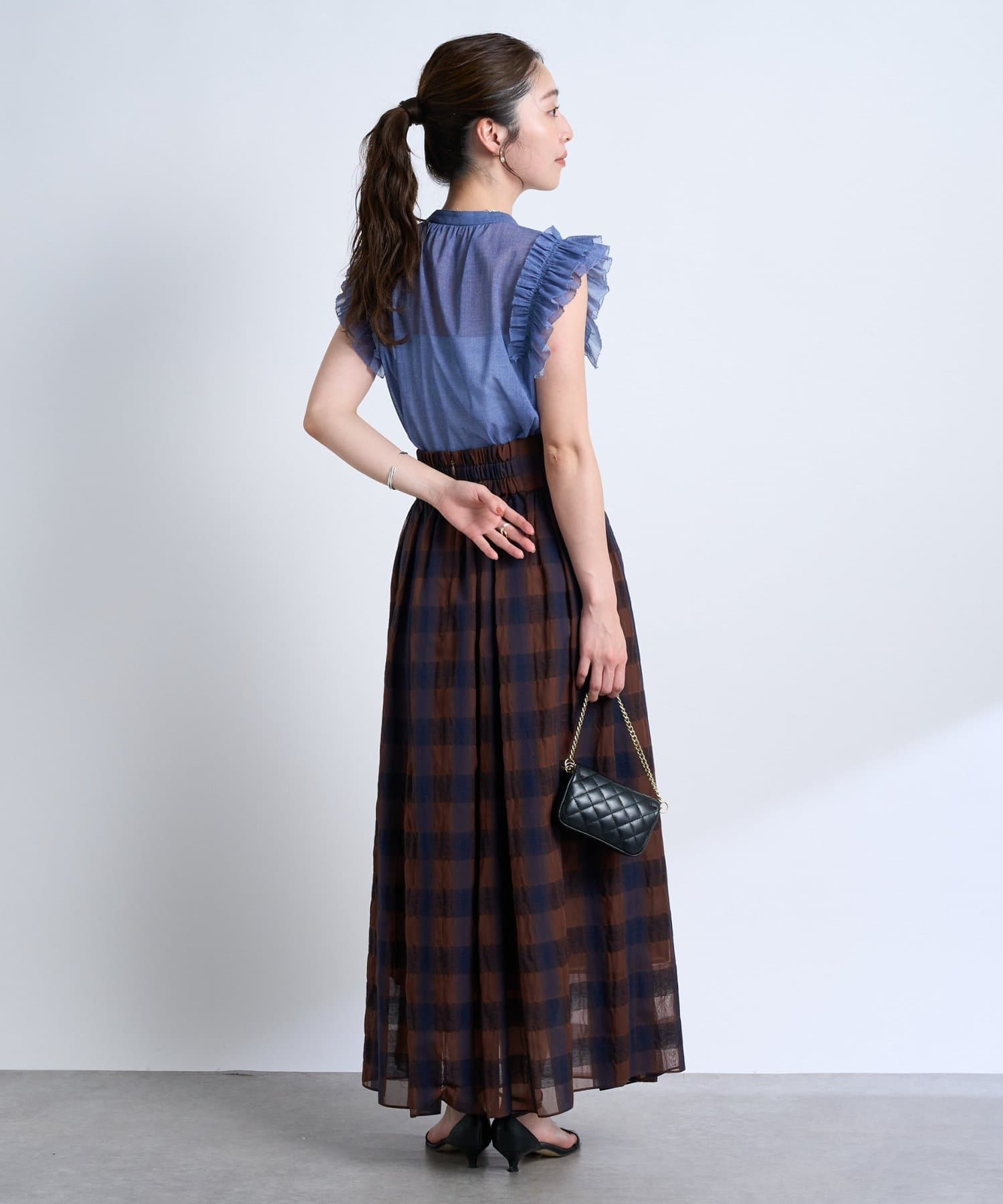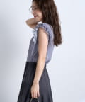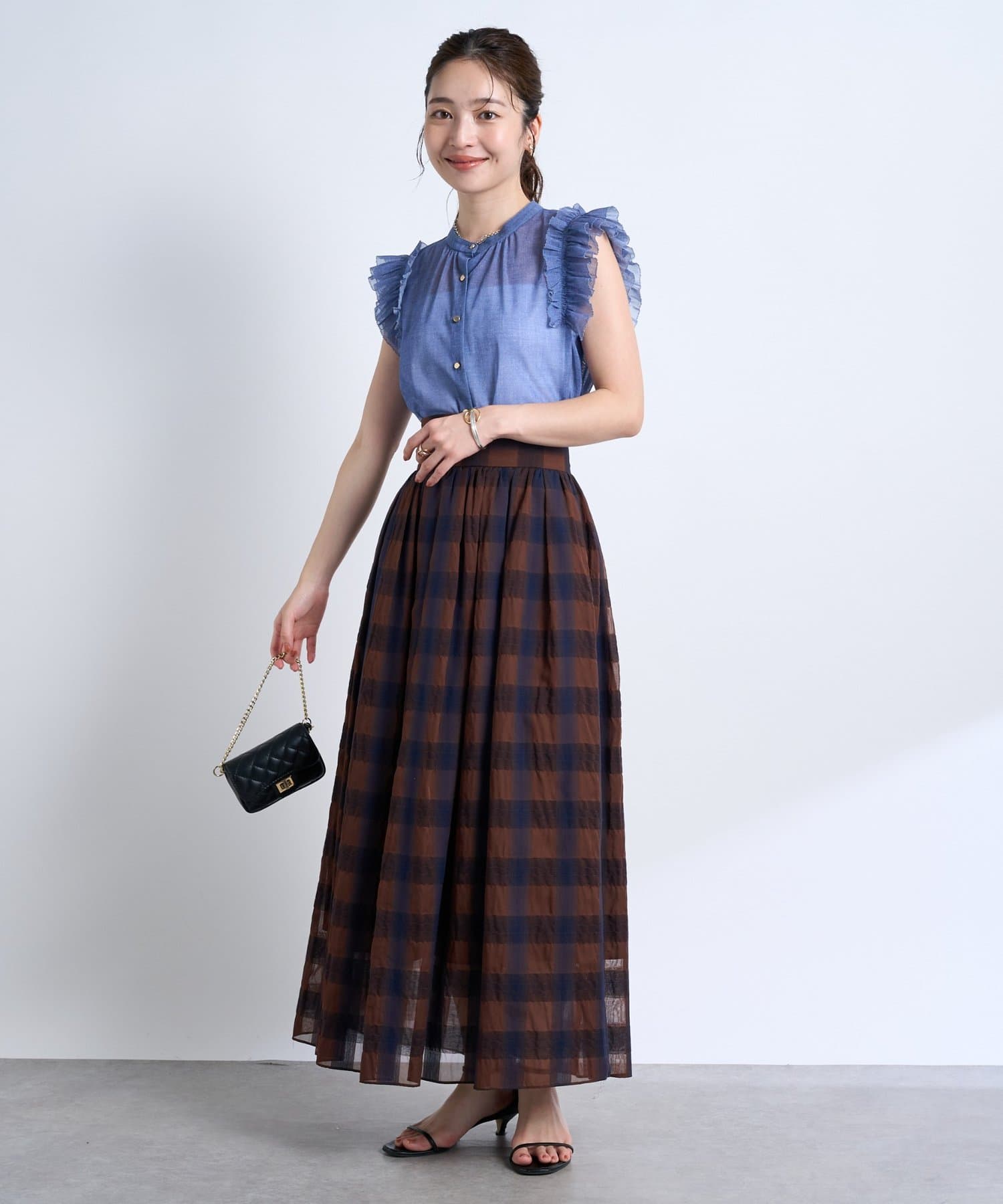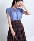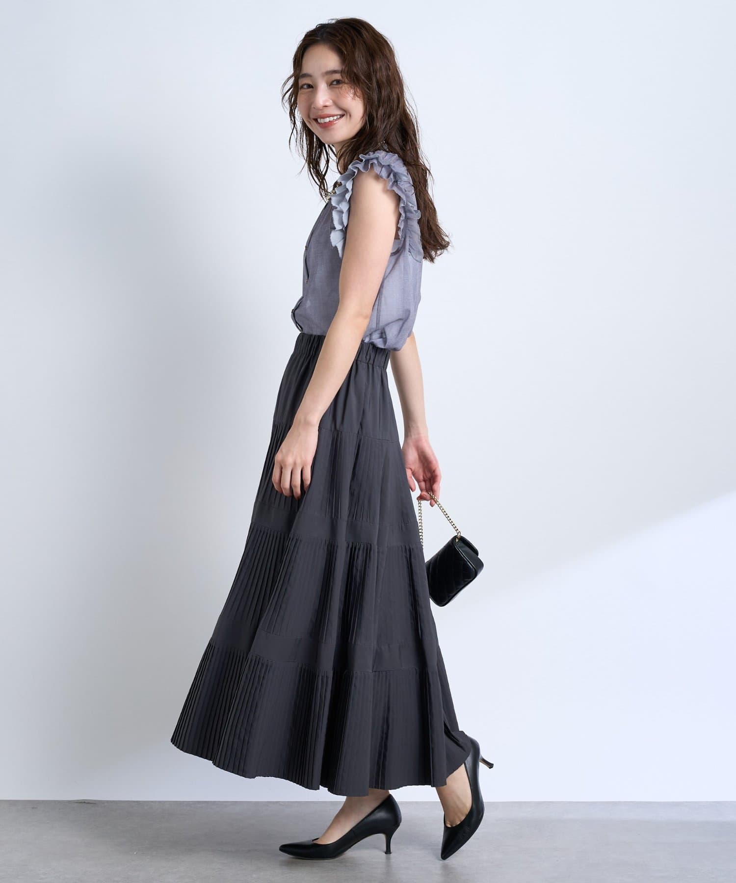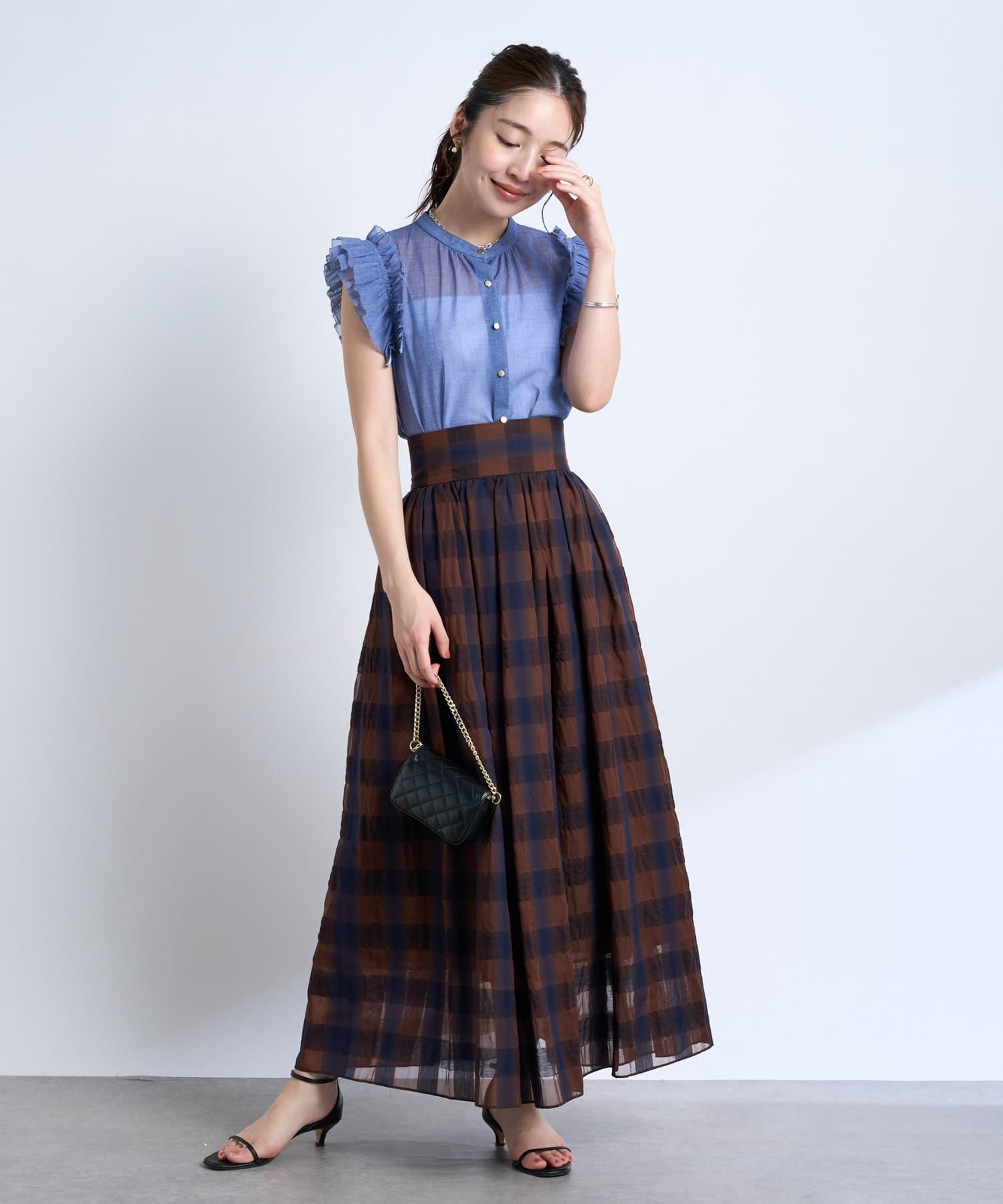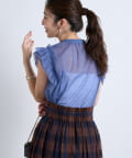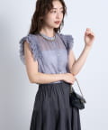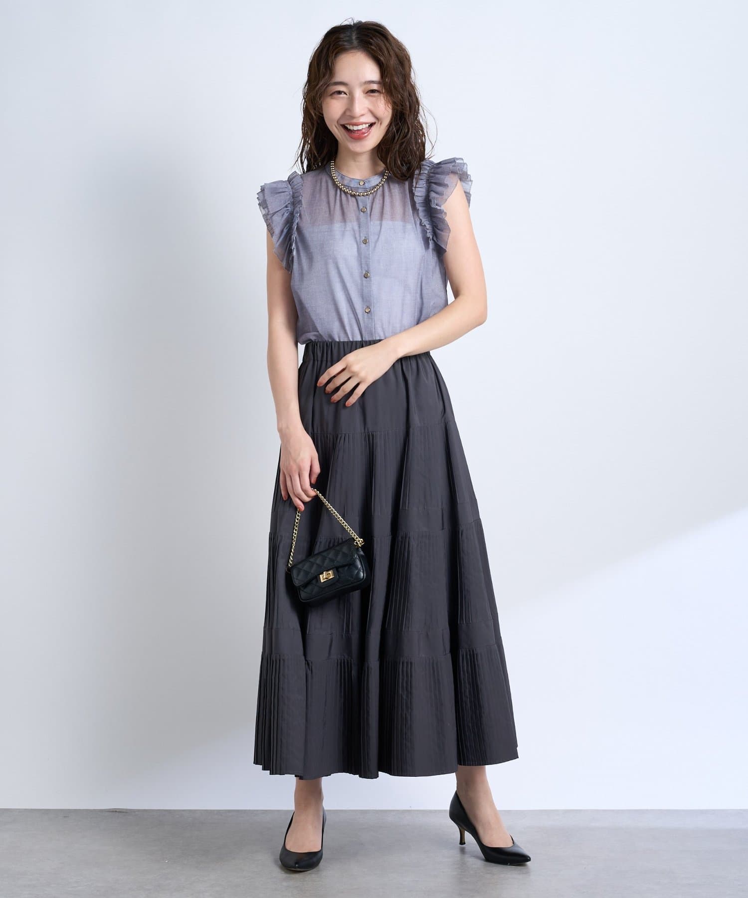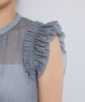 肩まわりにはたっぷりとフリルをあしらい、フェミニンな雰囲気に。