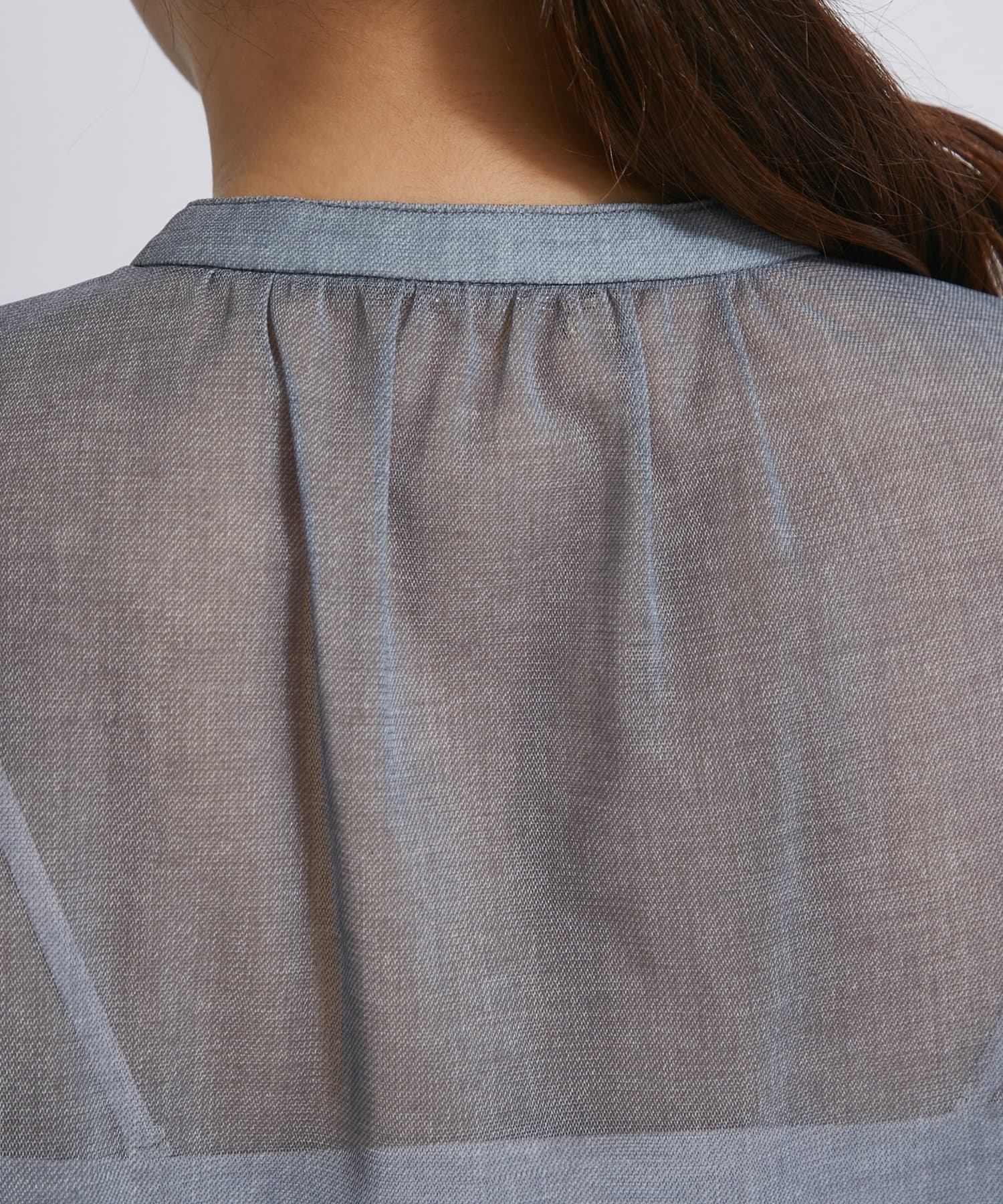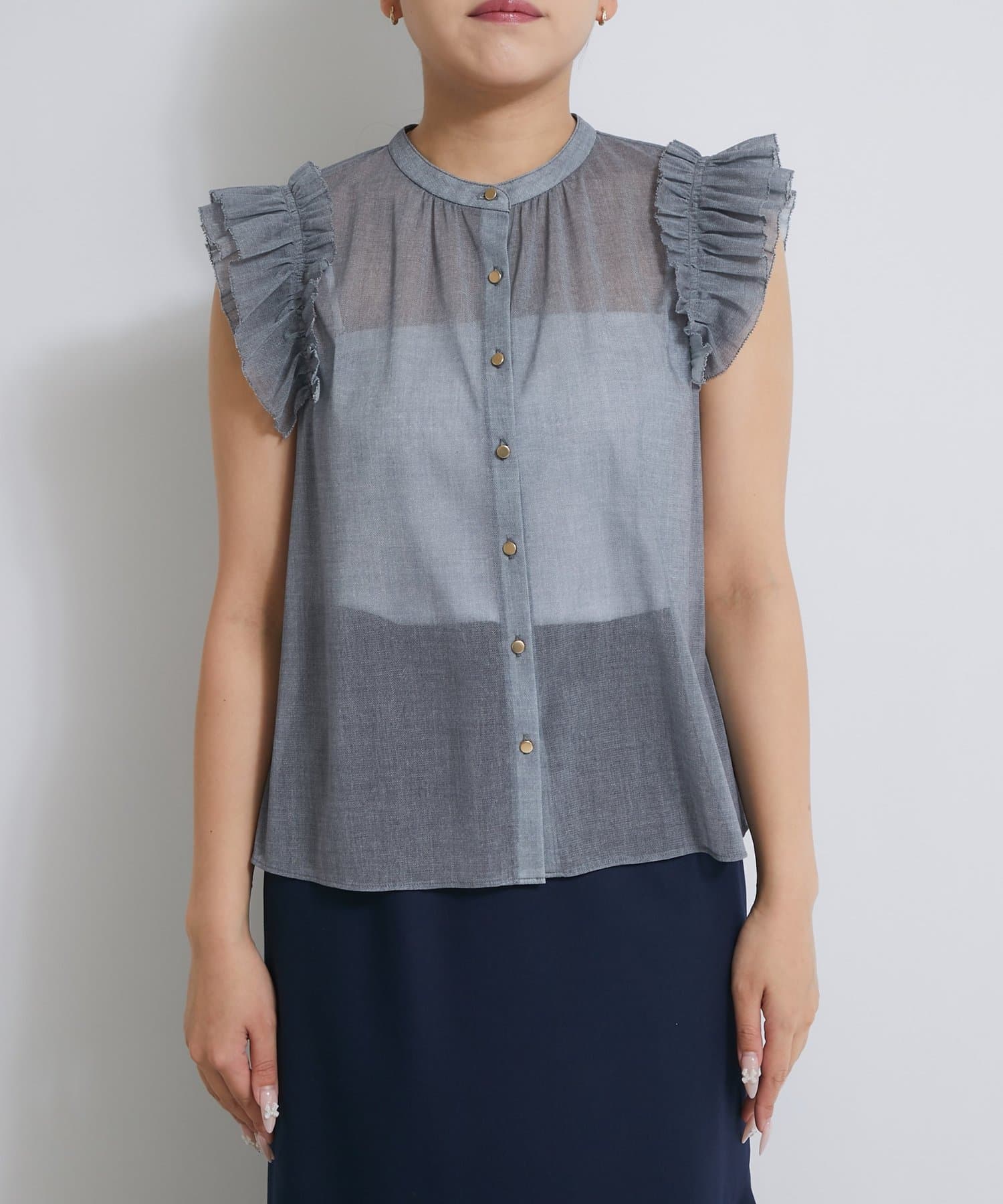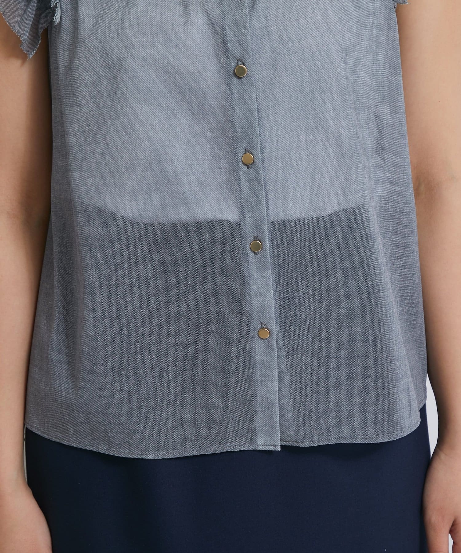 大人の女性を涼やかに彩るエアリーシアーデニムライクブラウス