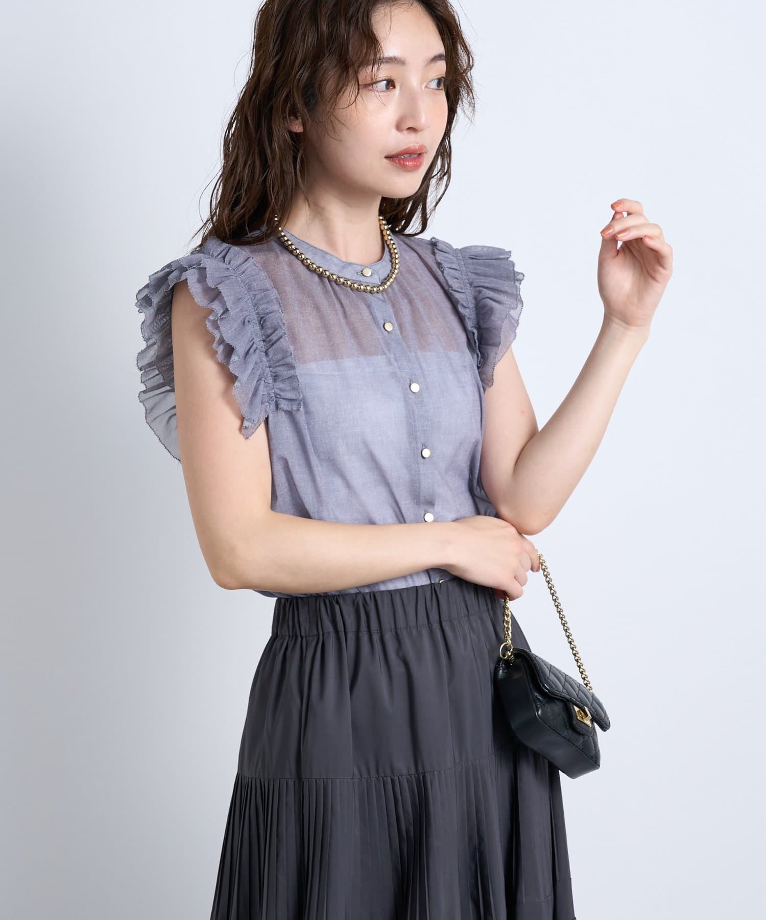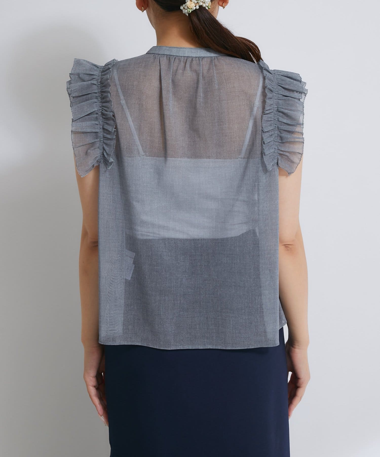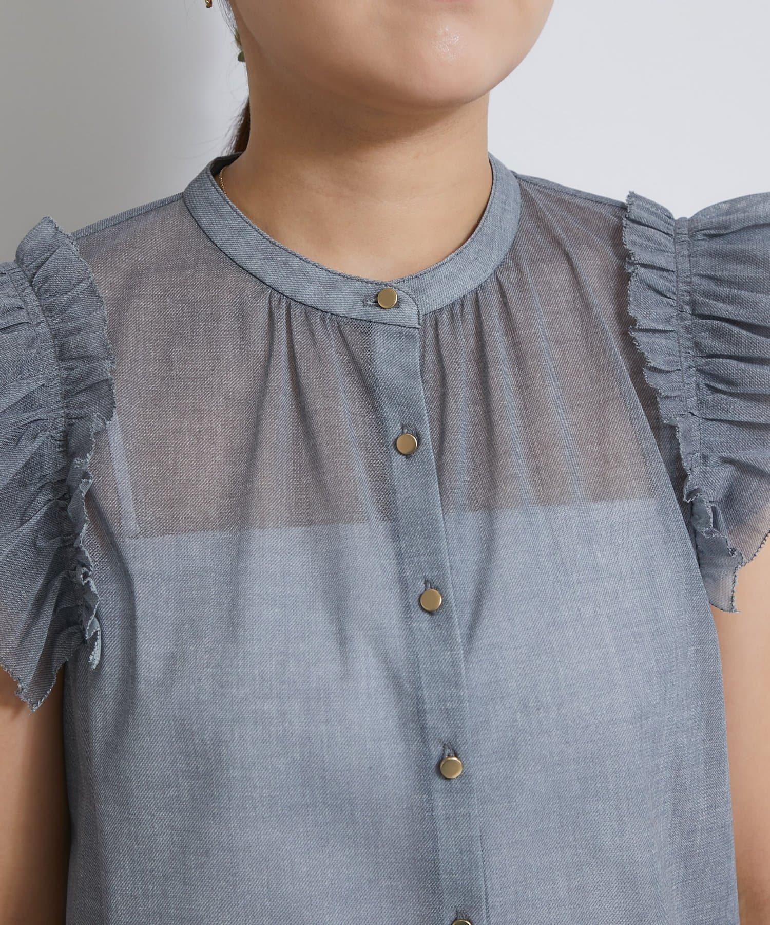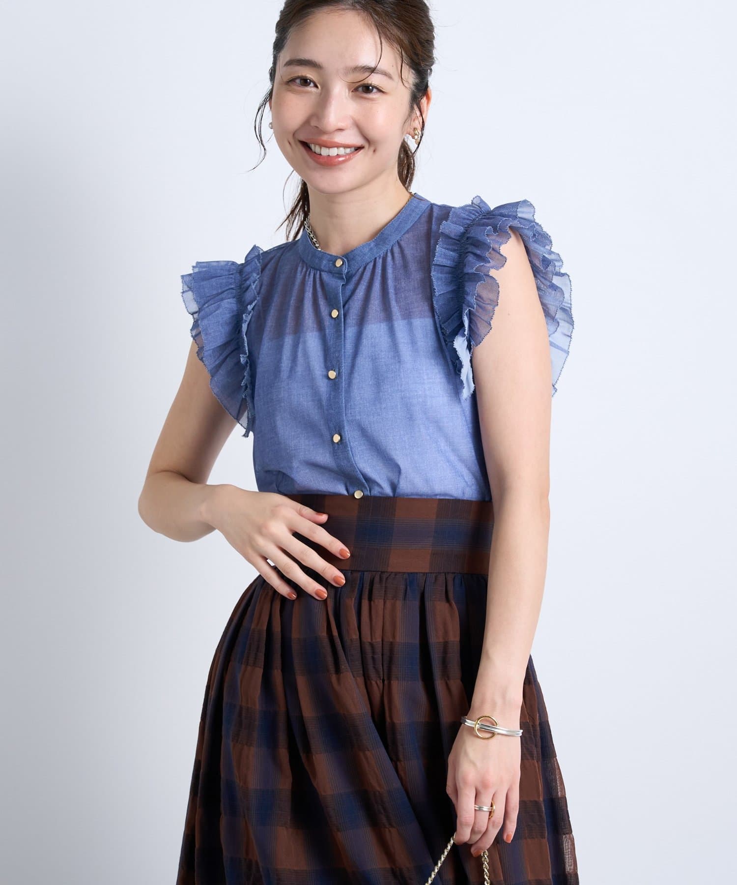 大人の女性を涼やかに彩るエアリーシアーデニムライクブラウス