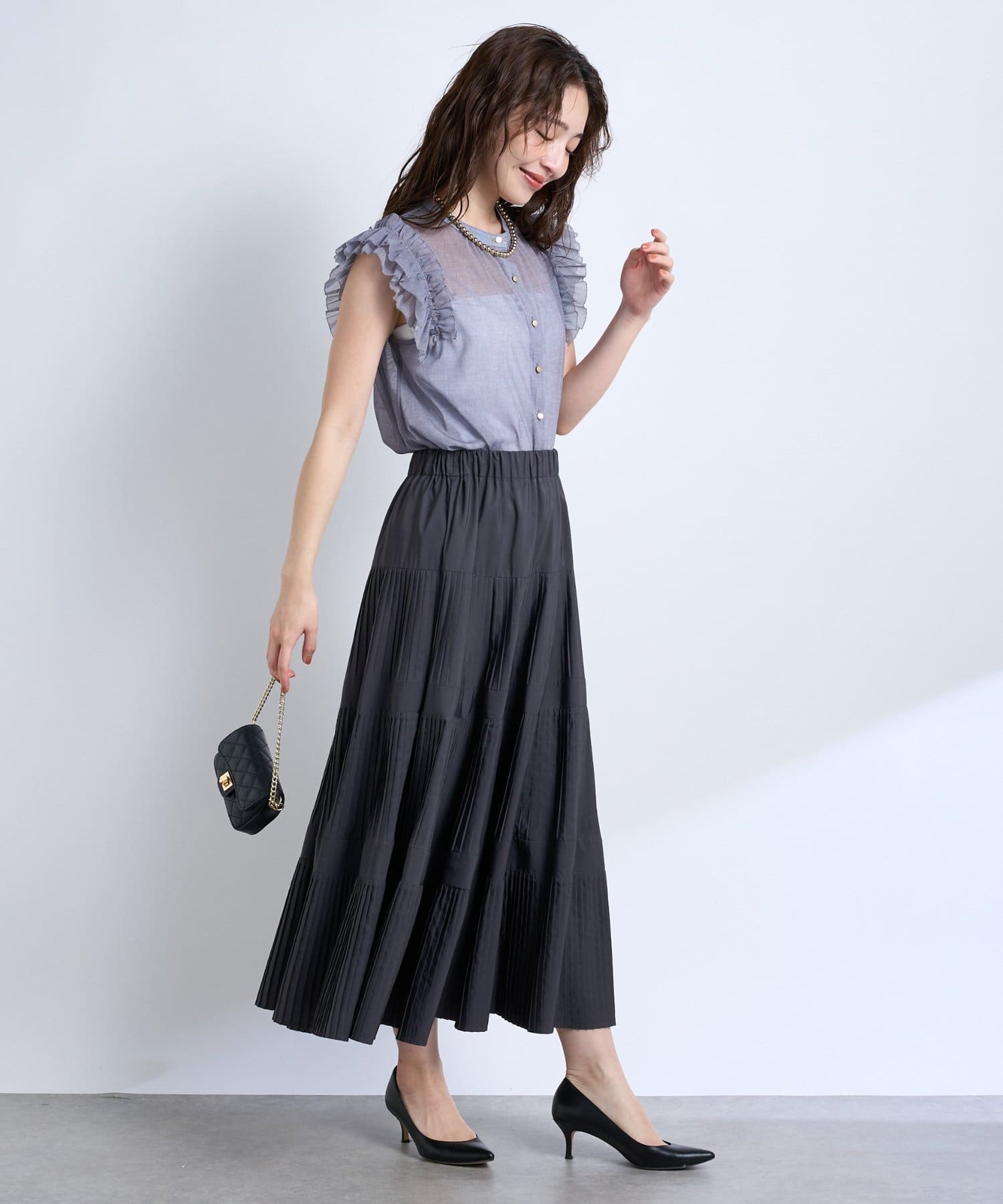 スカートにタックインすれば、上品でクラシカルな雰囲気に。