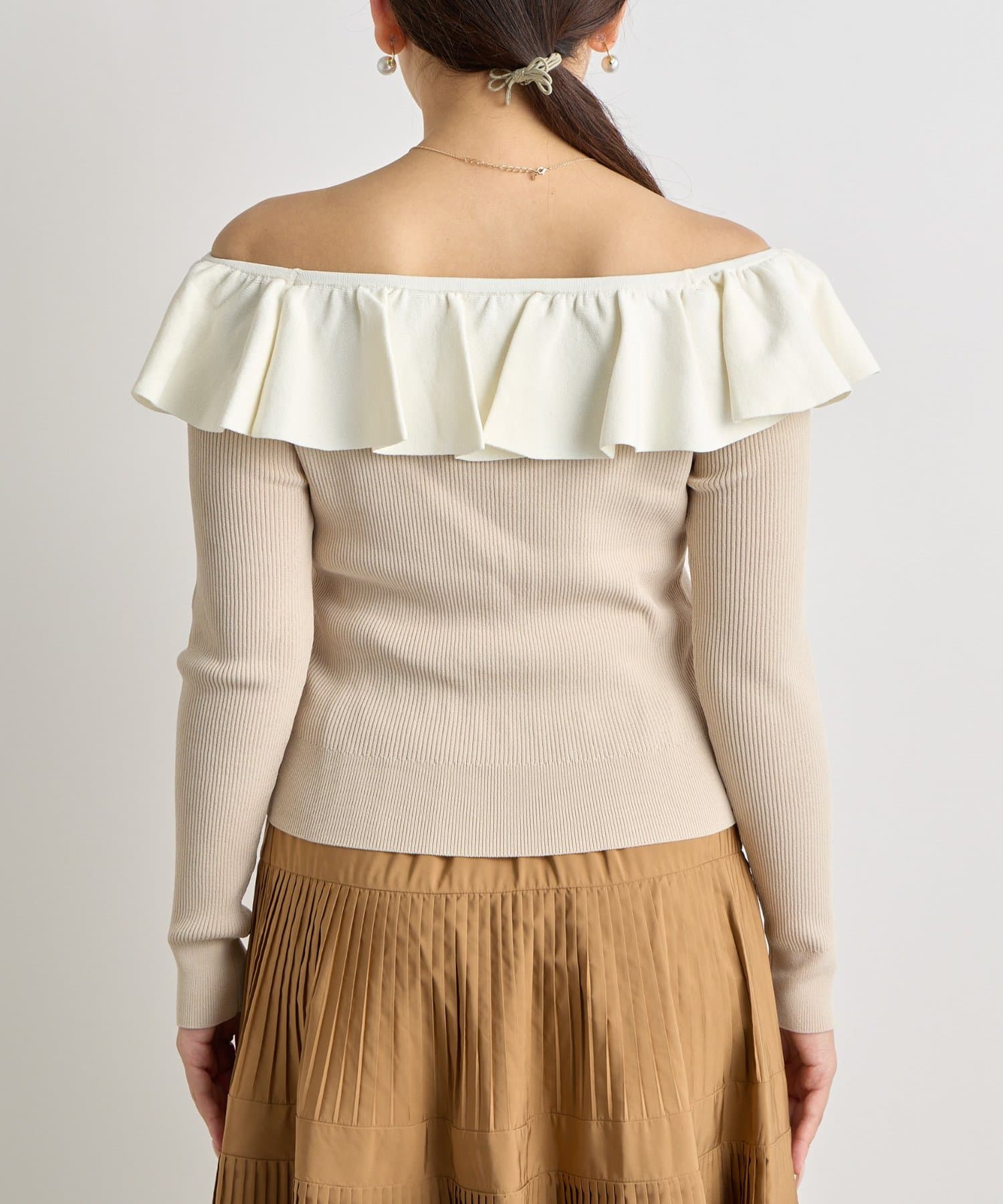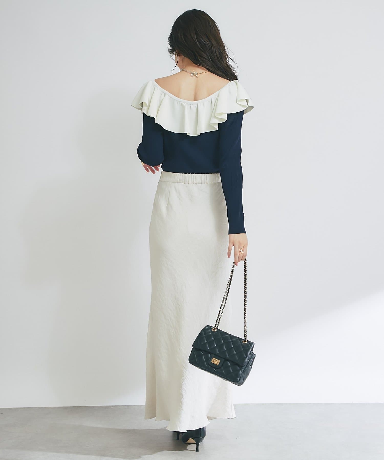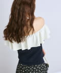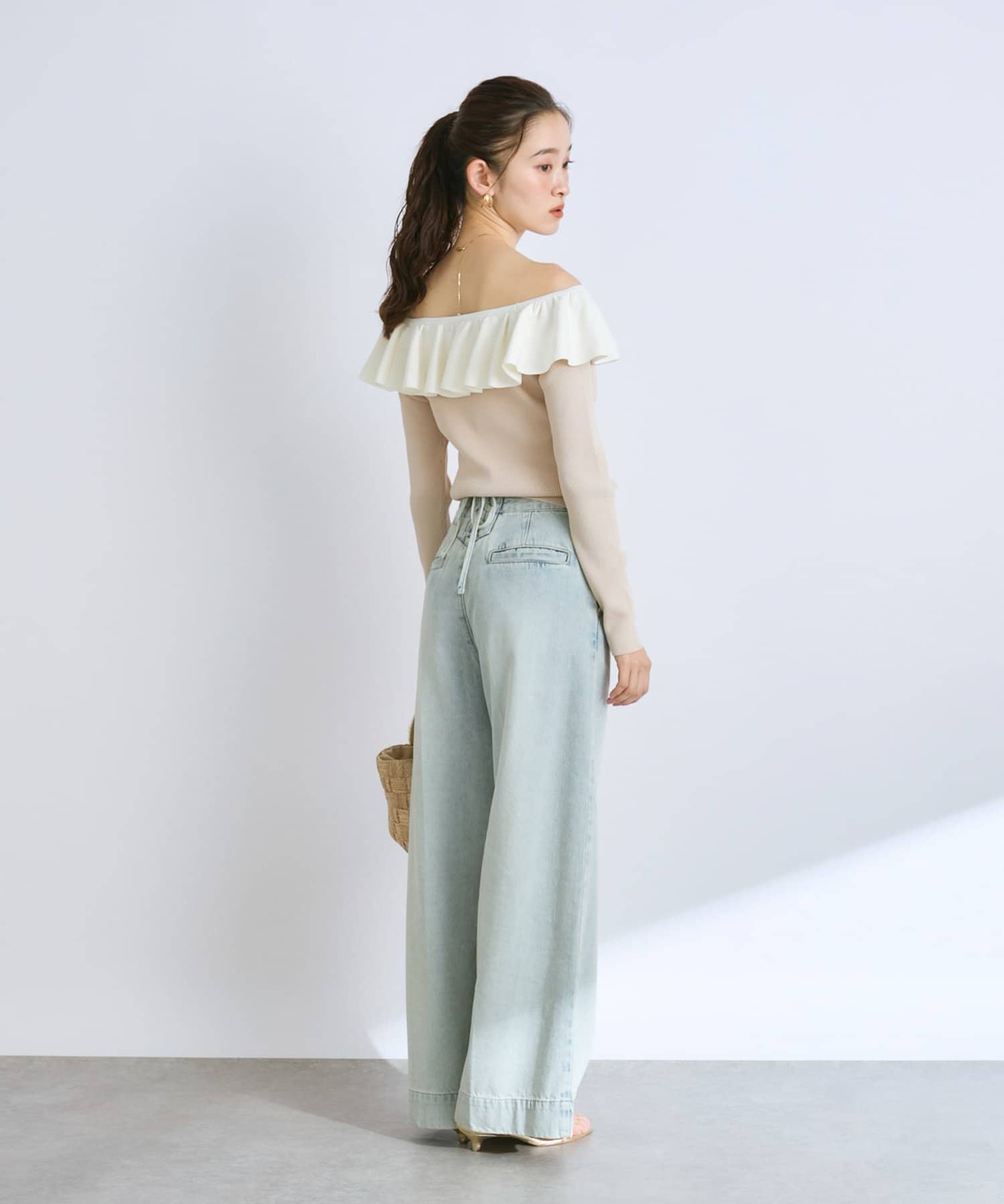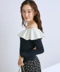 目を惹くオフショルダーデザインは、女性らしさを際立たせるポイント。