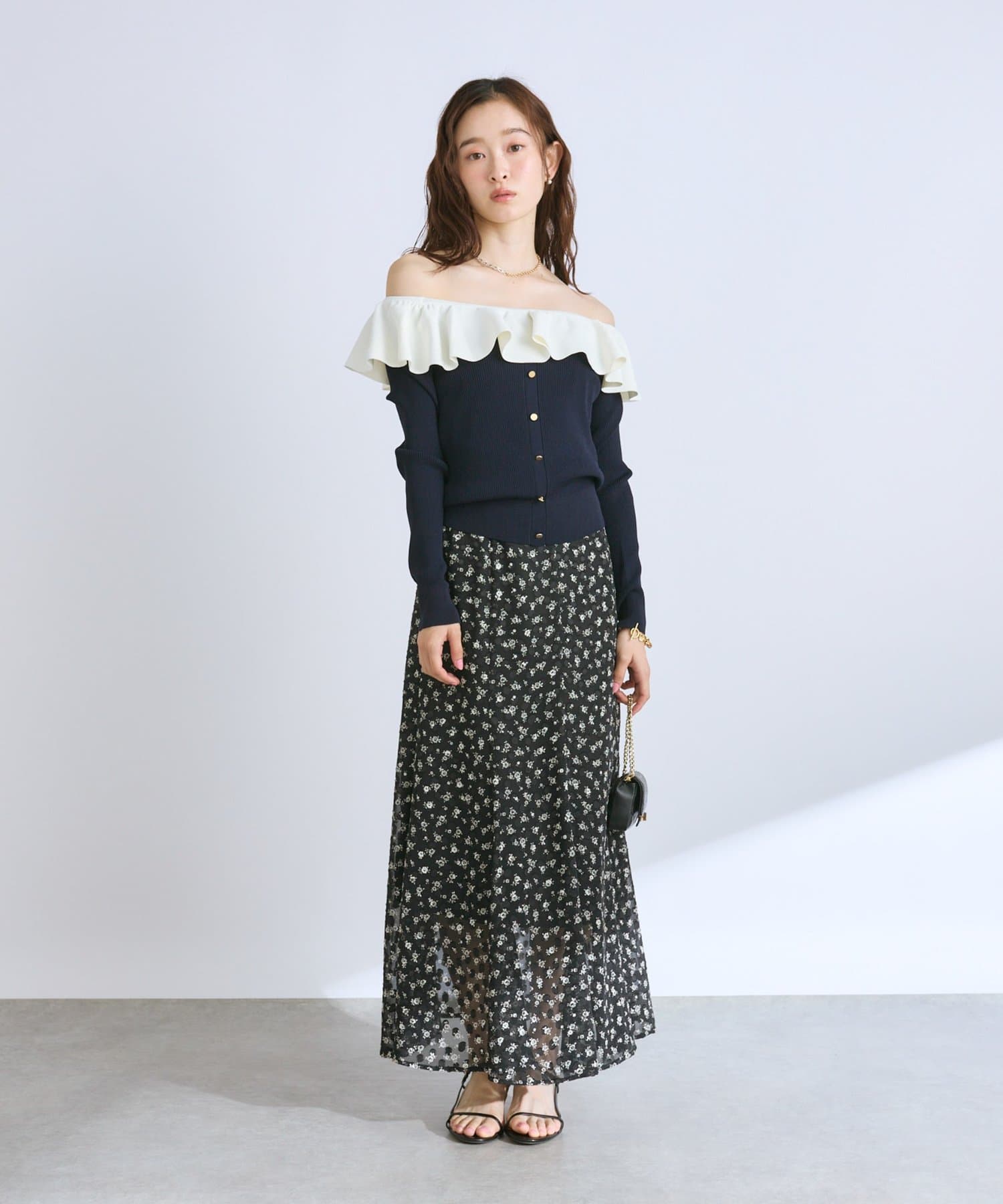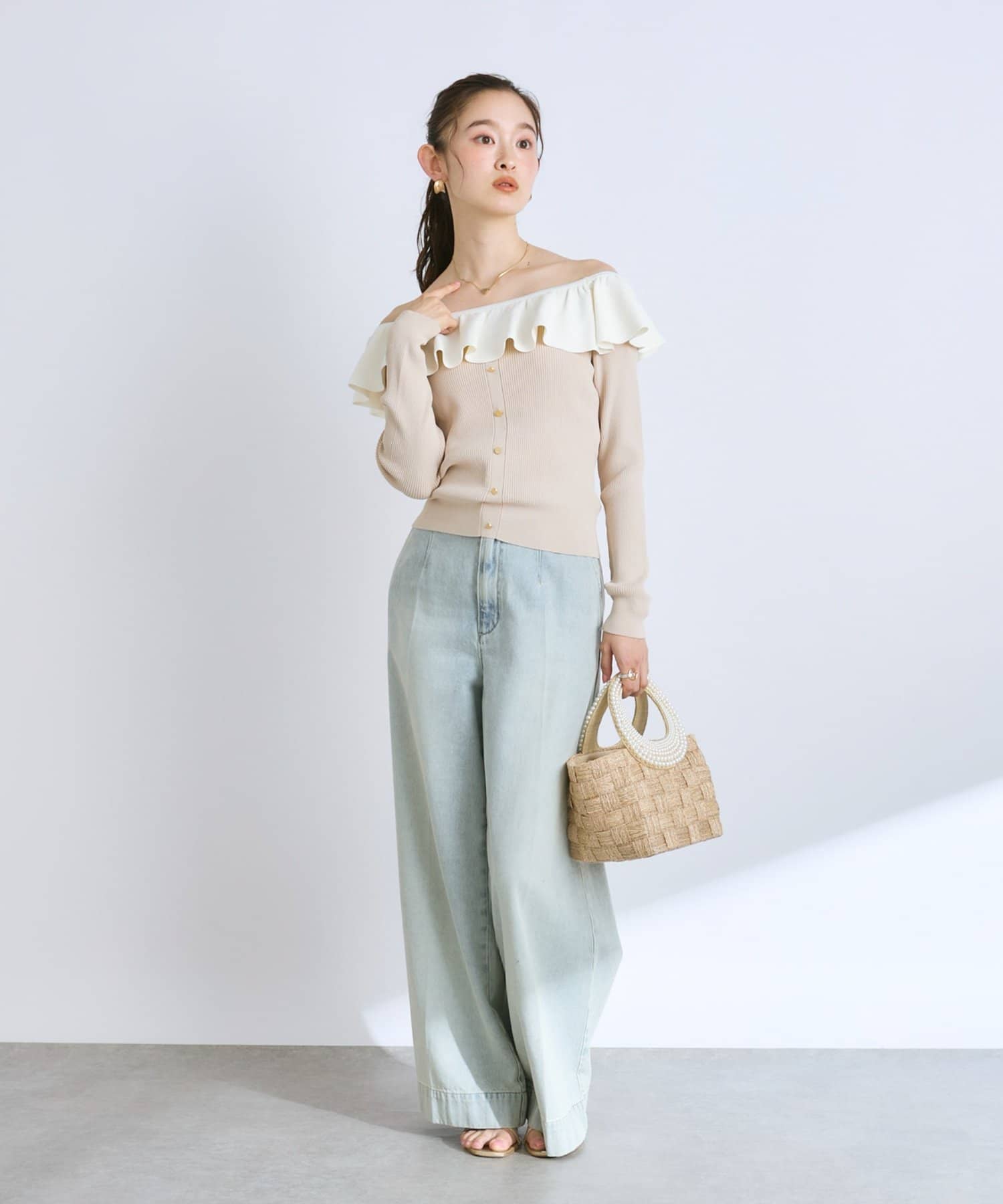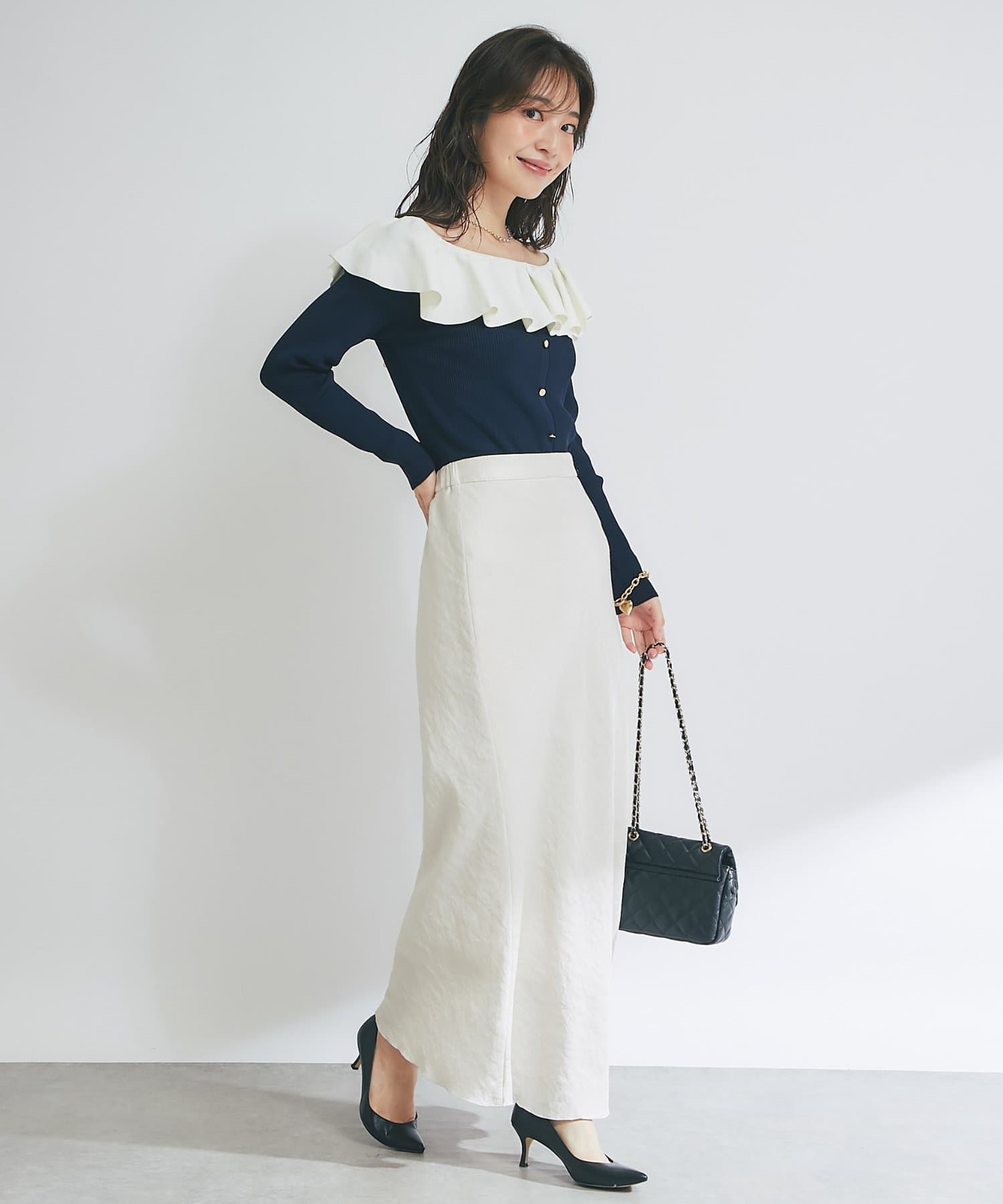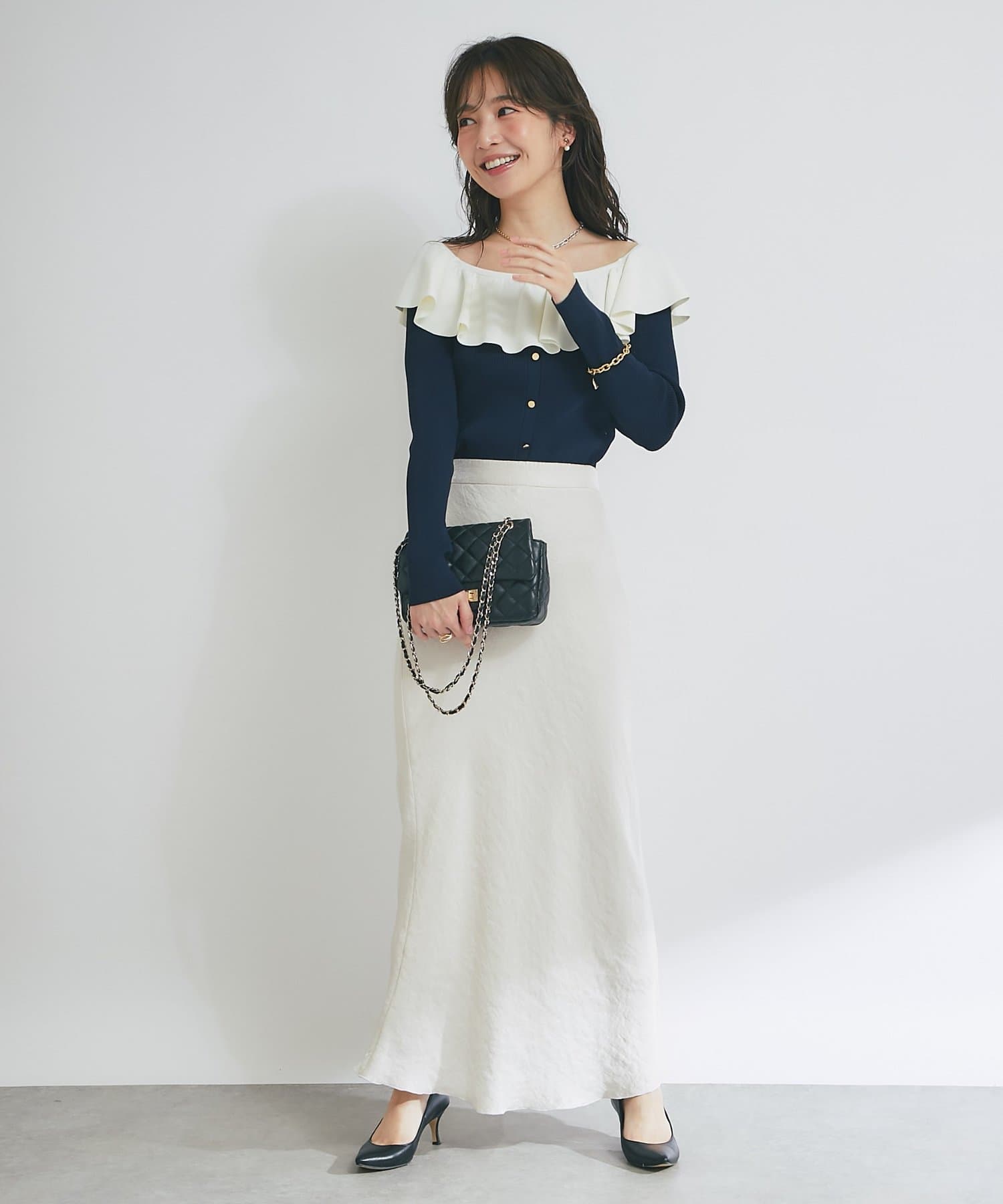 フレアスカートやワンピースと合わせれば、フェミニンで上品な印象で着こなせます。