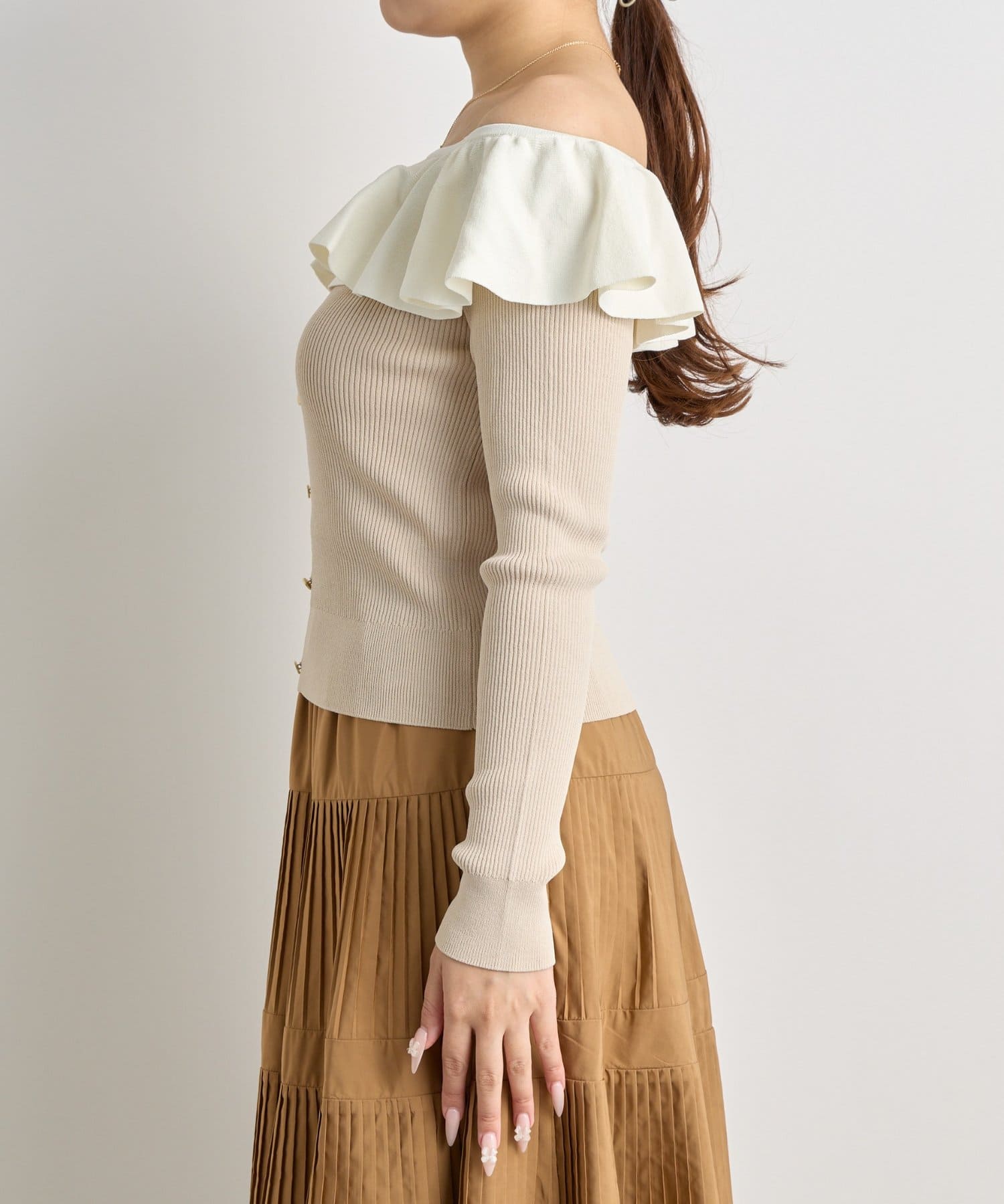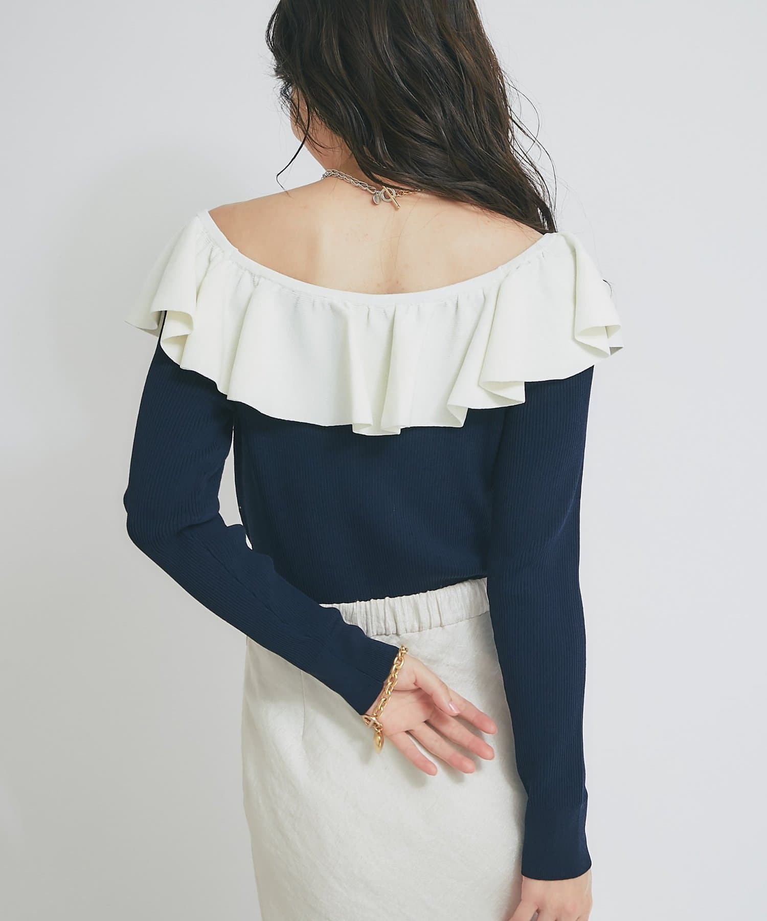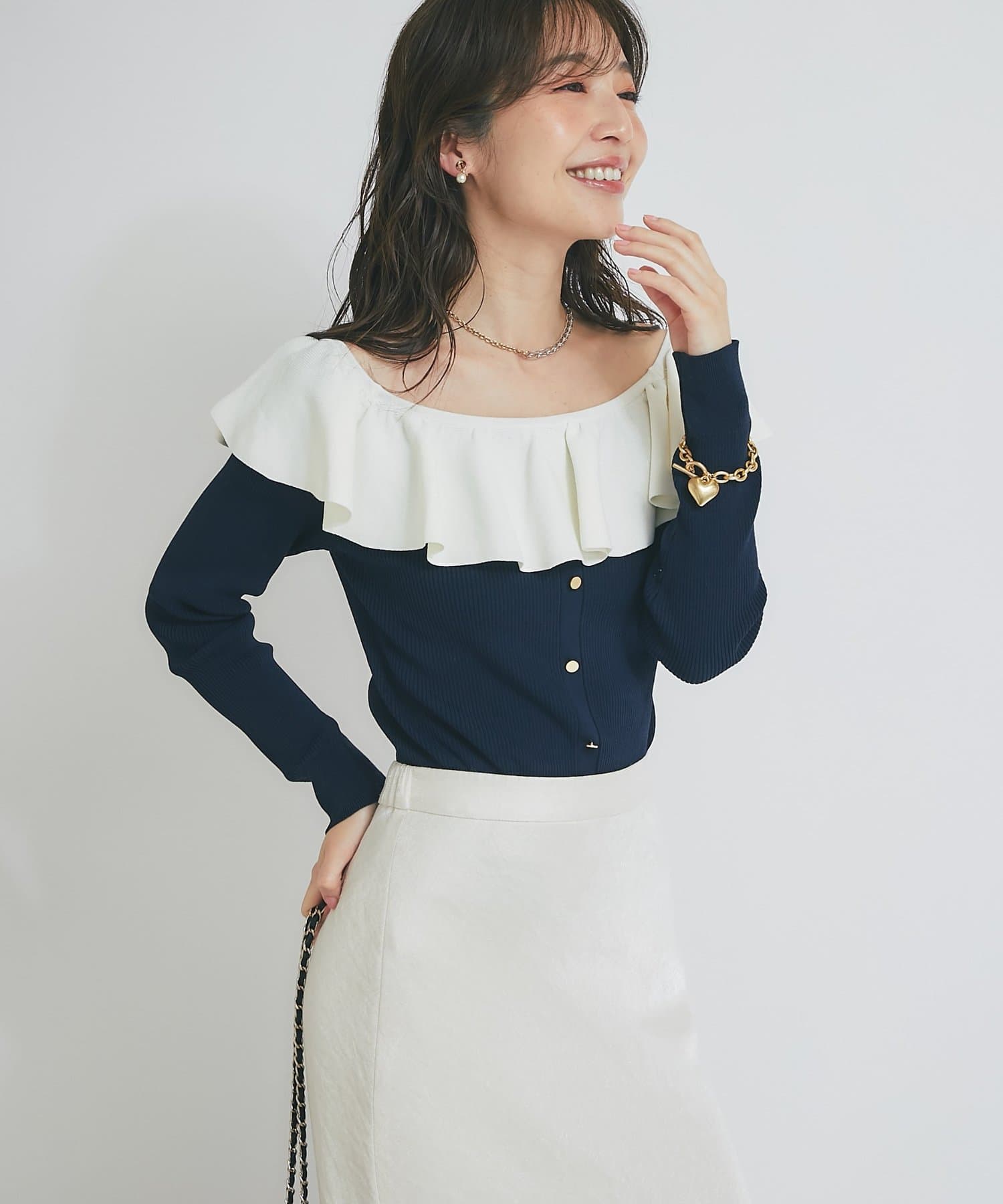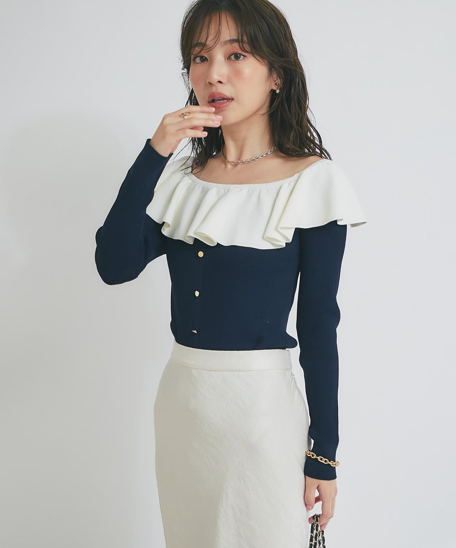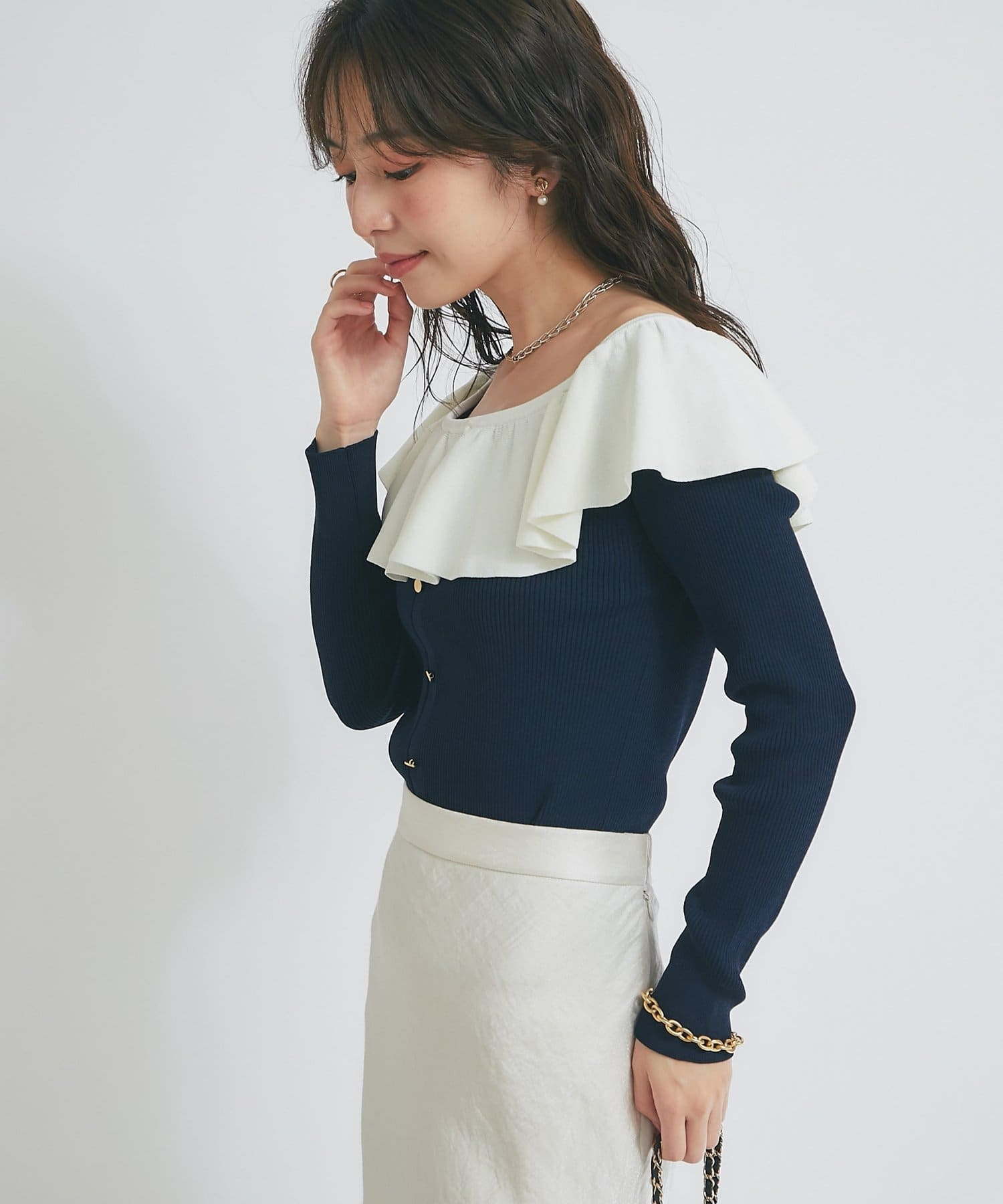ボリューム感のあるバイカラーのラッフル襟が華やかさをプラスし、