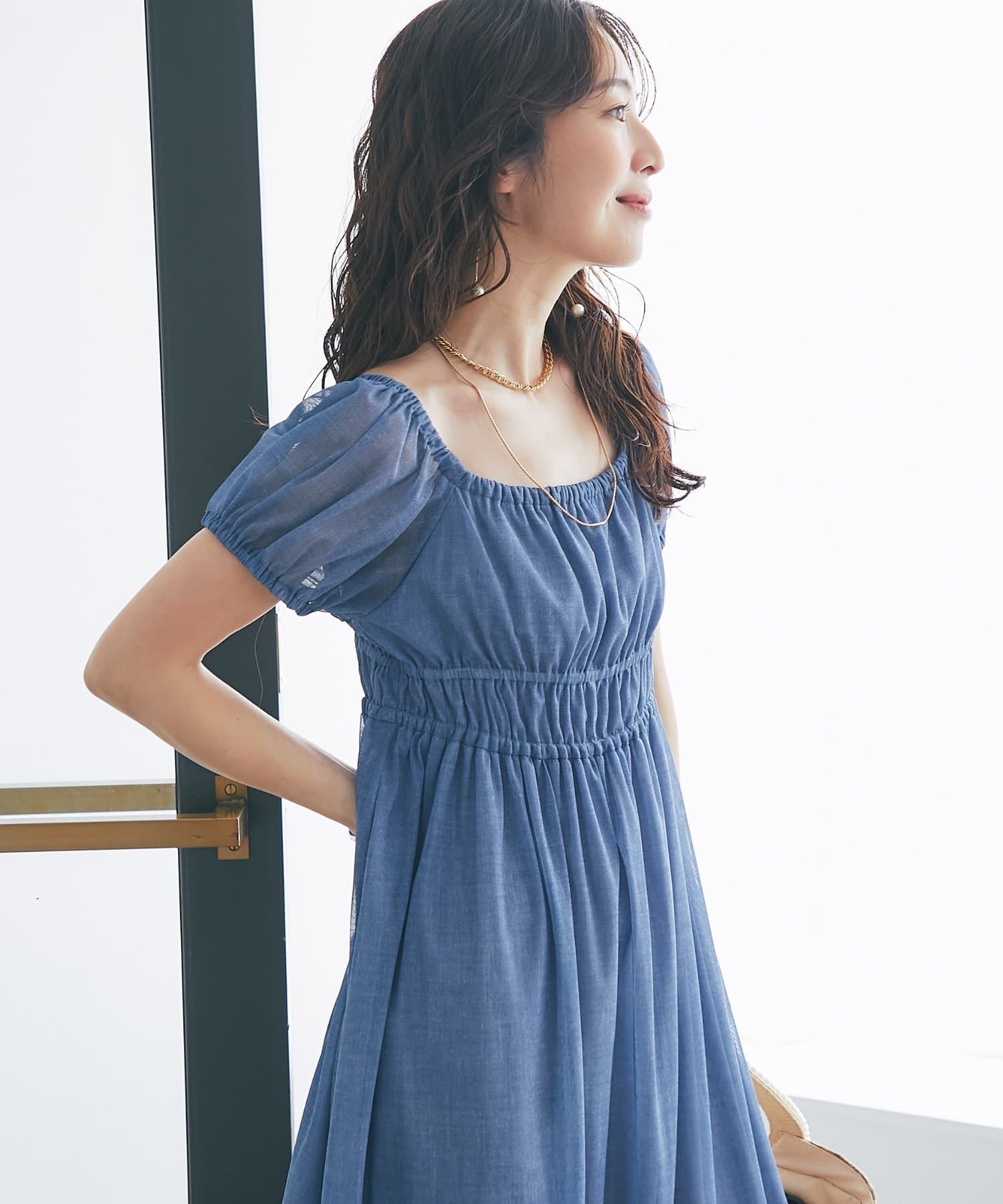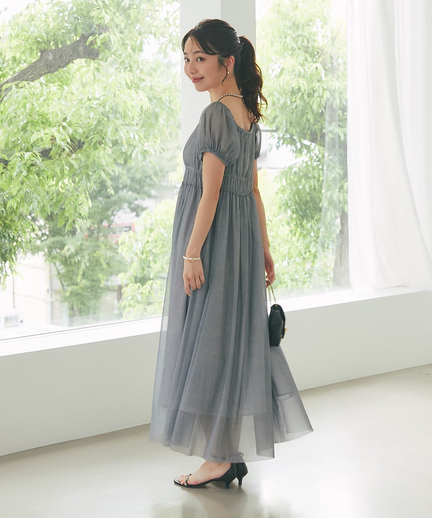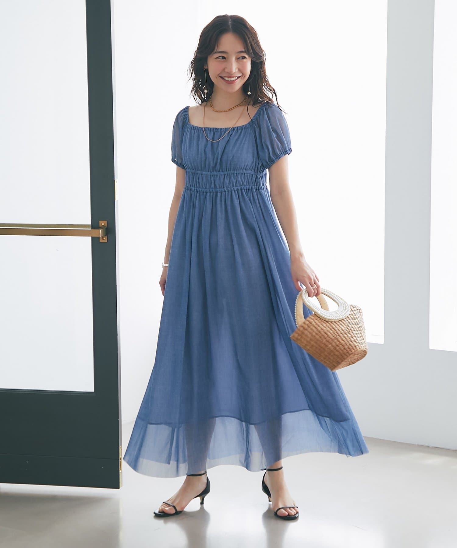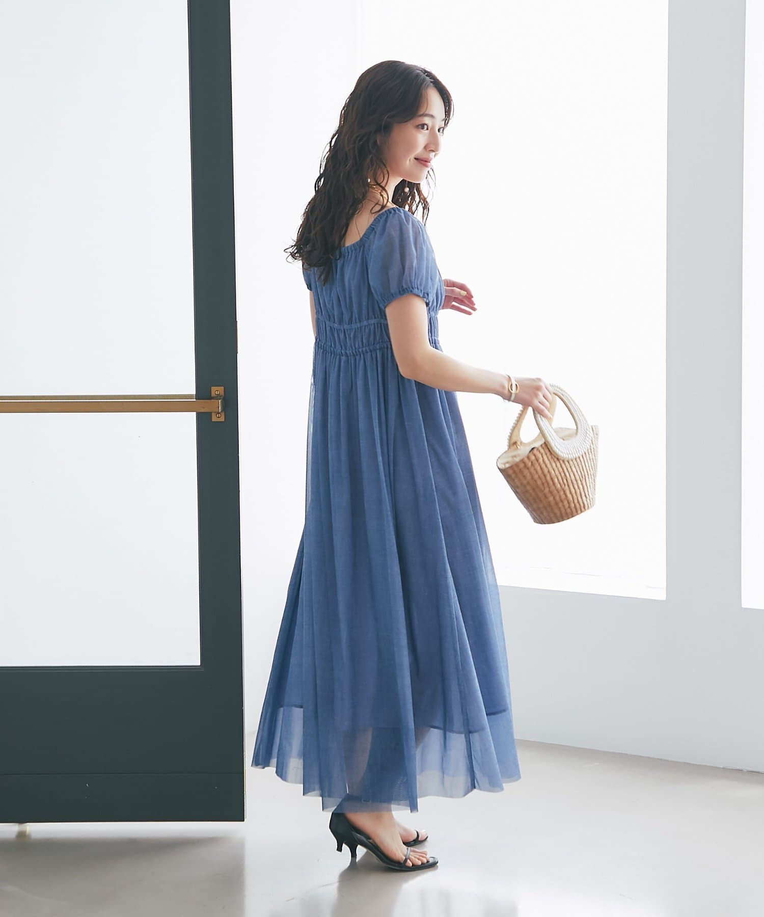 【涼しくて美シルエット】デニムライクネットチュールワンピース