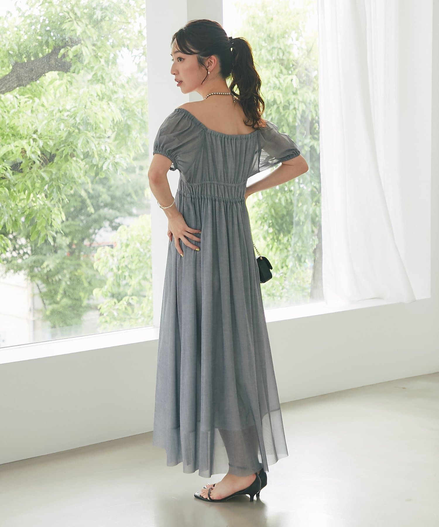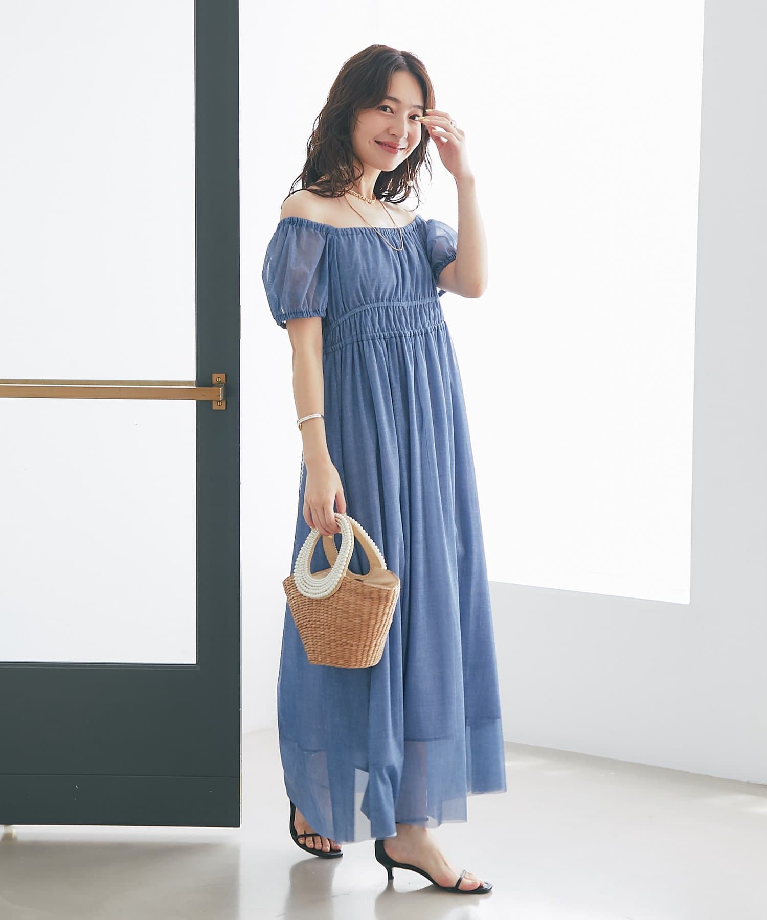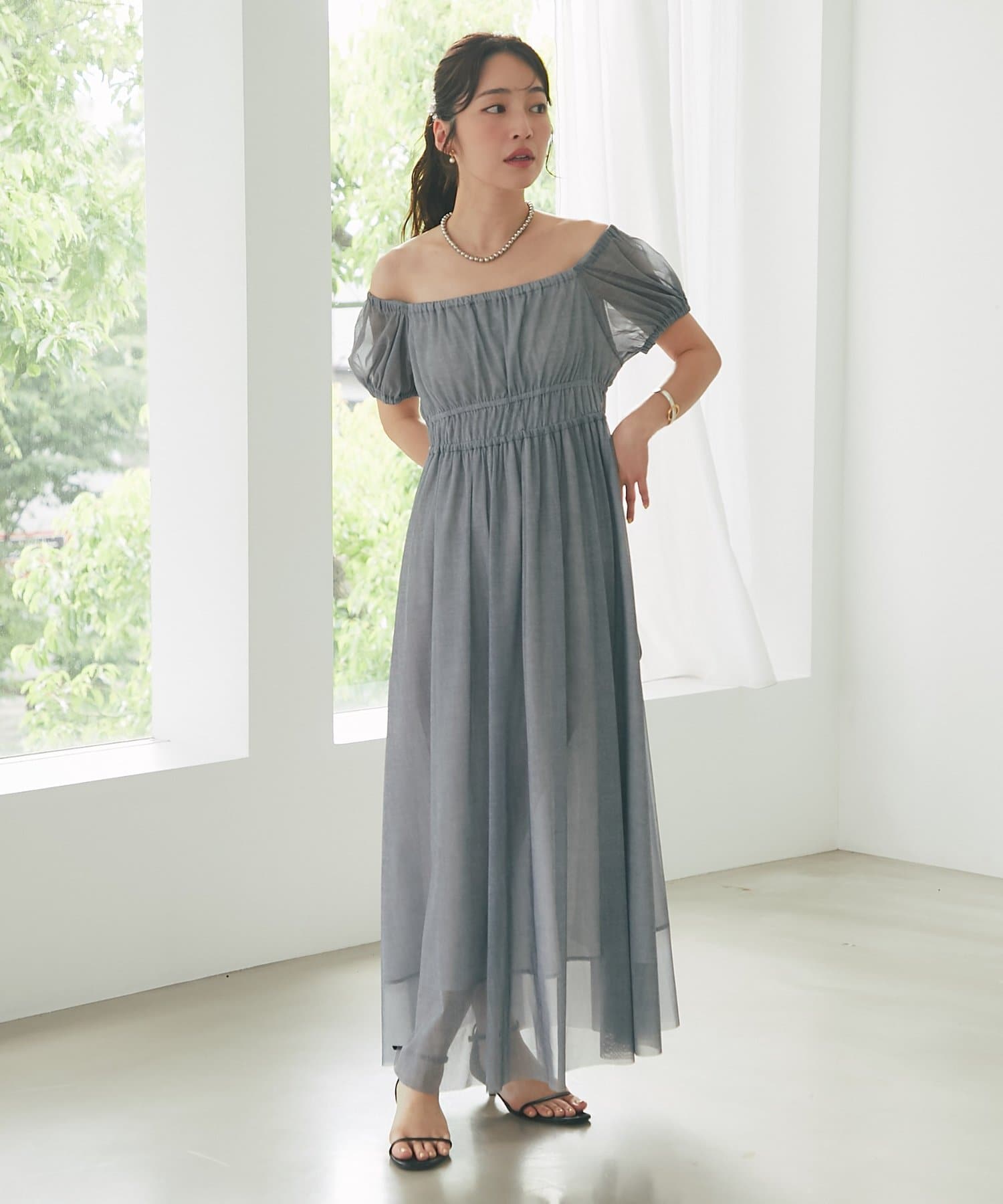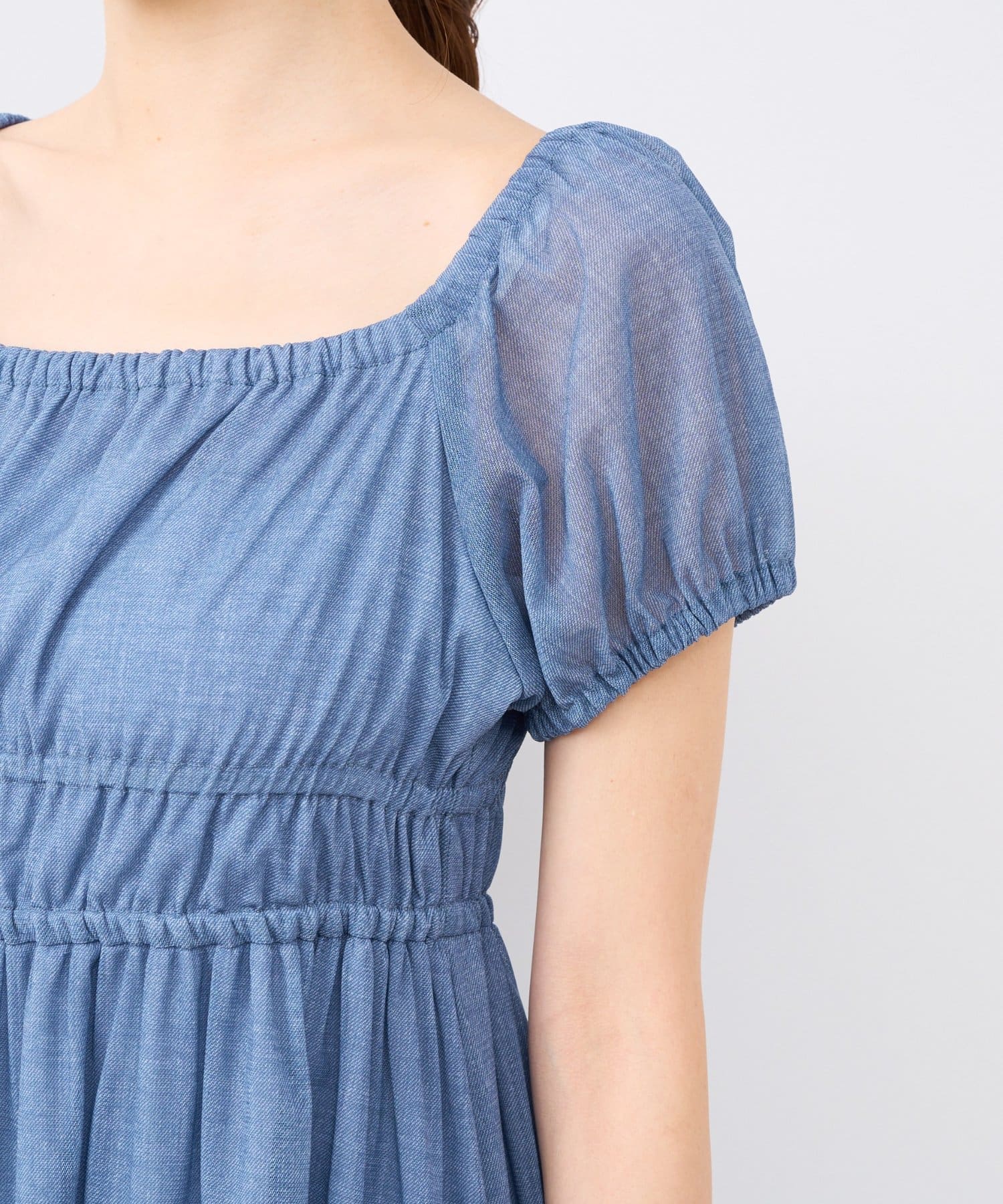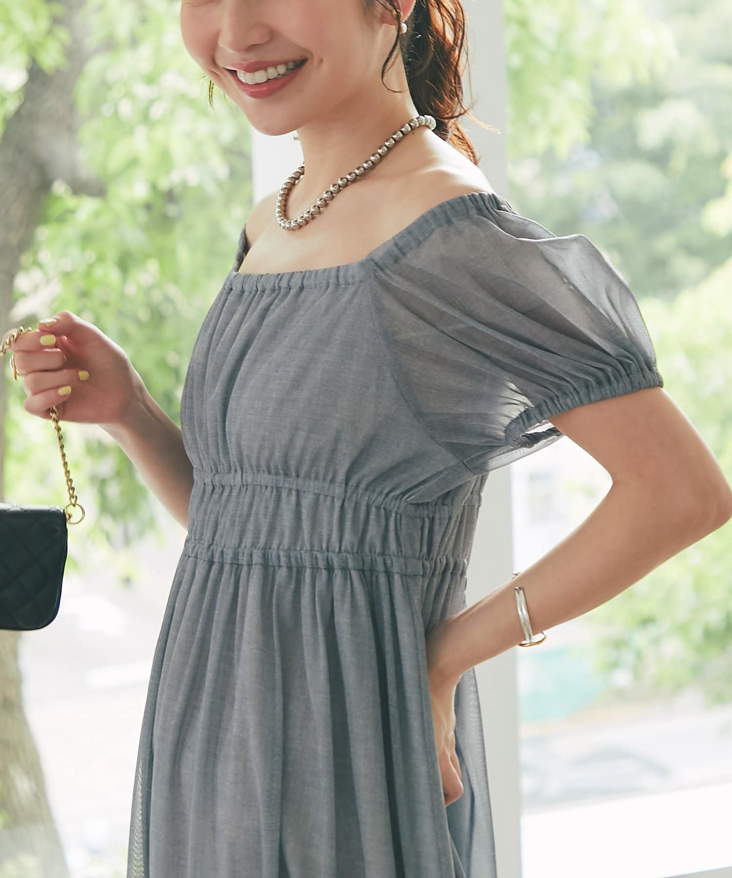 【涼しくて美シルエット】デニムライクネットチュールワンピース