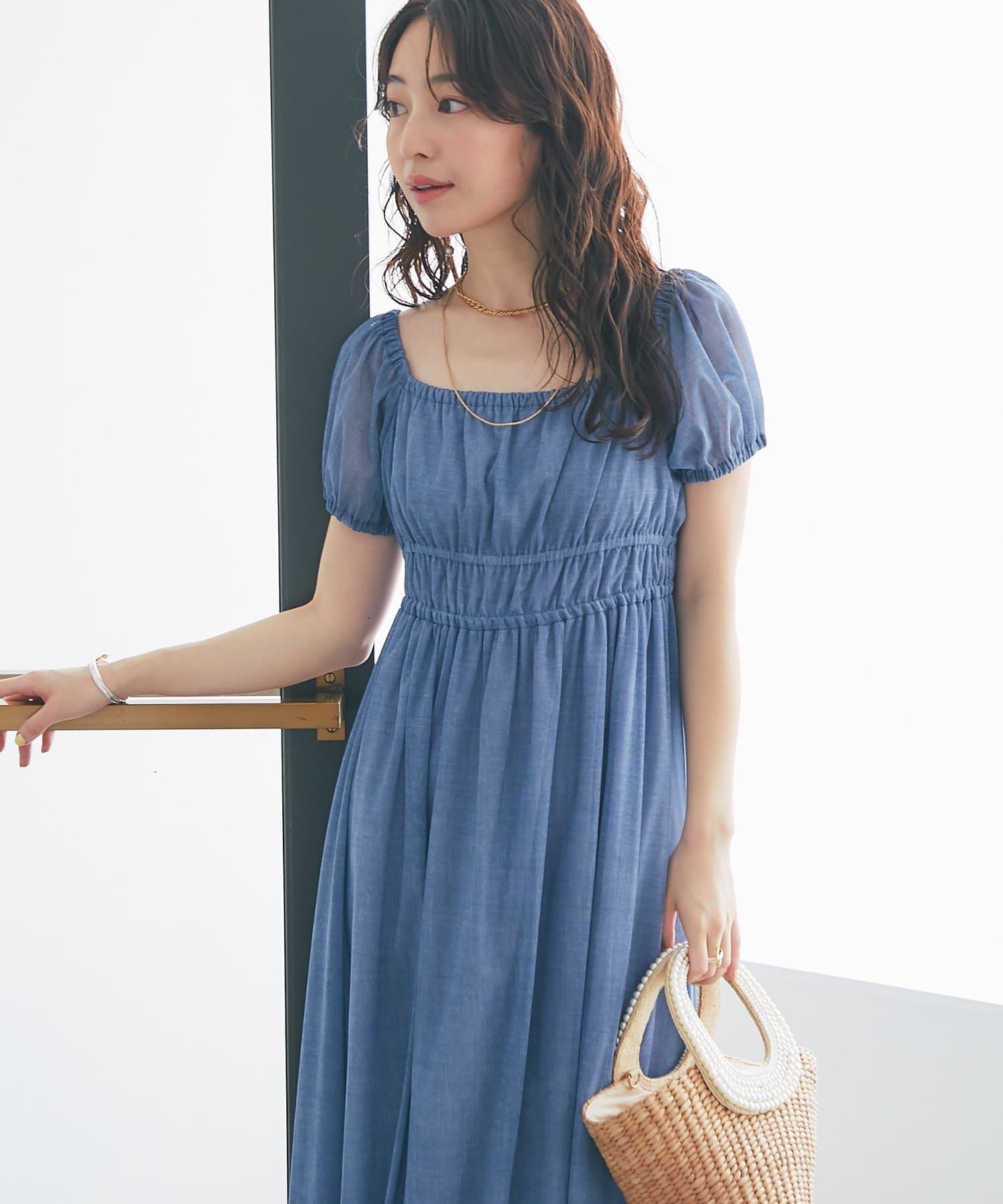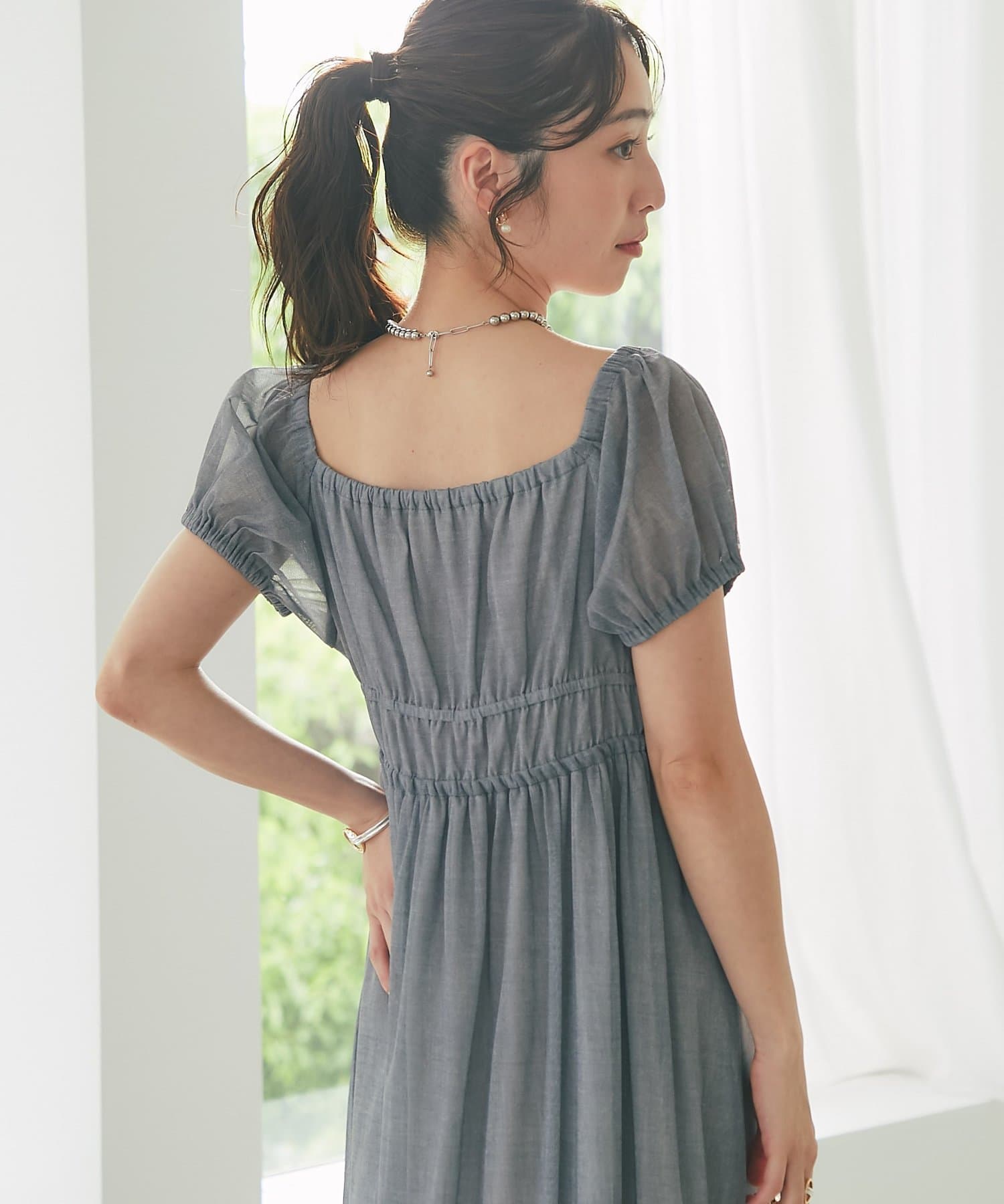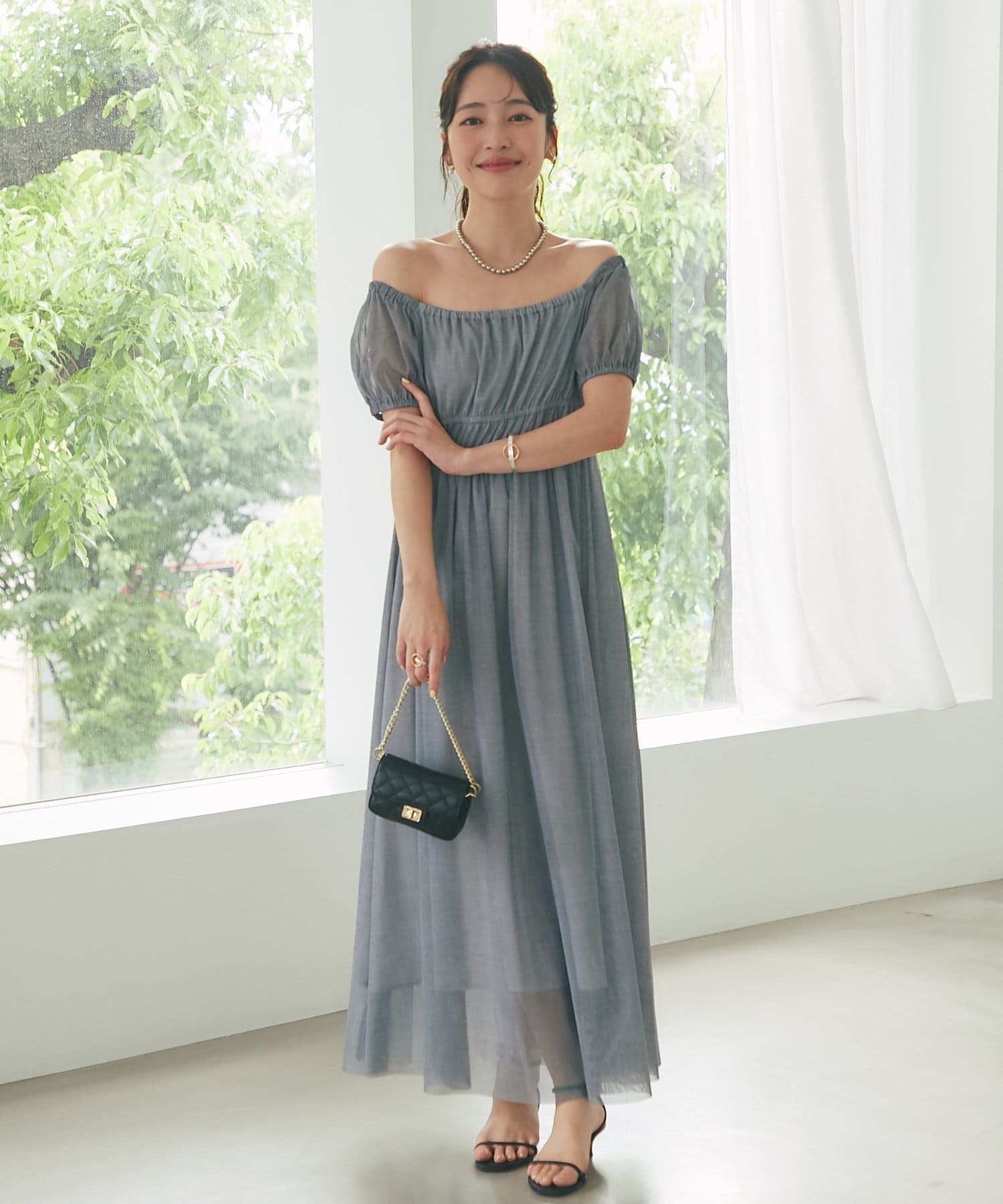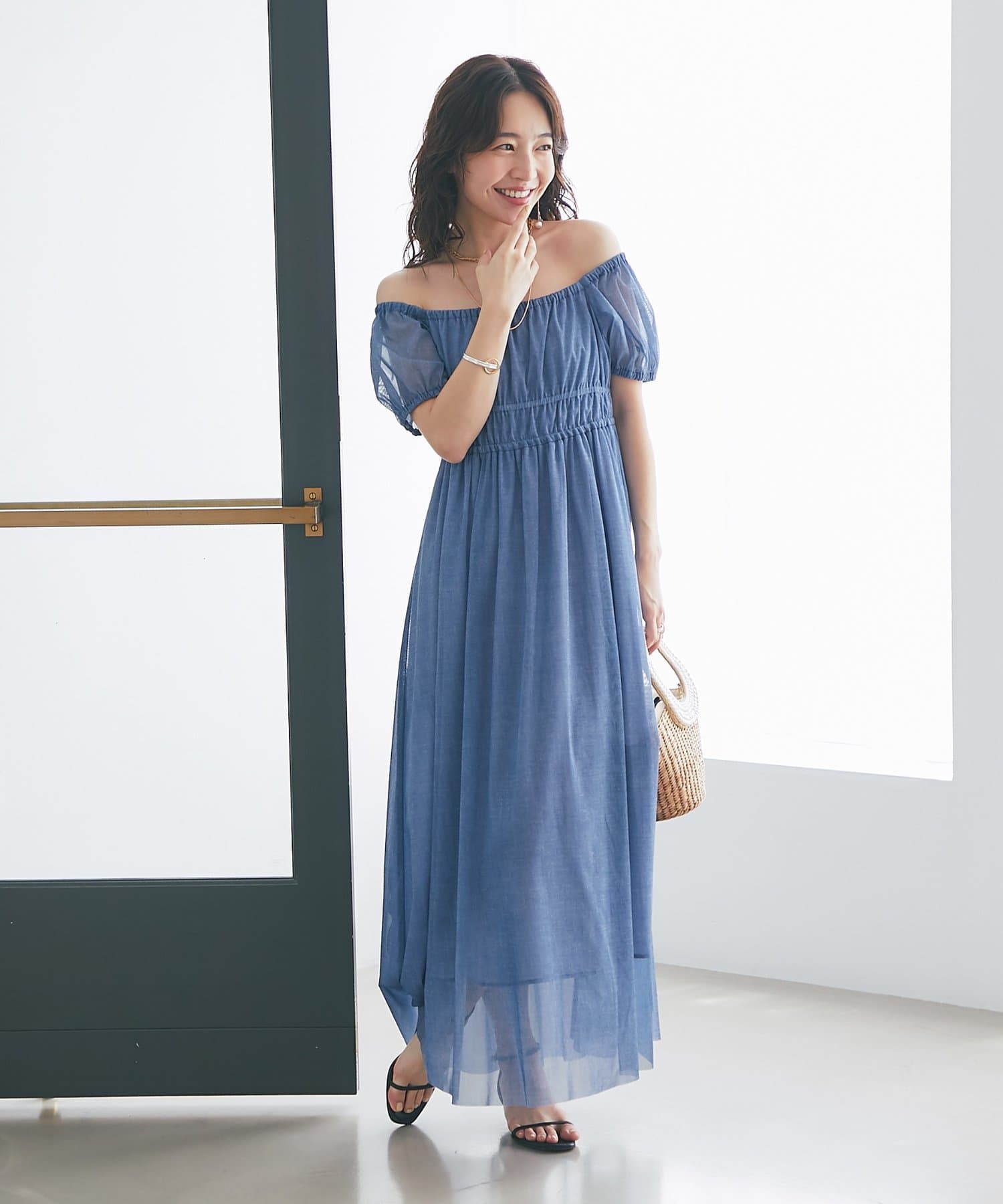 【涼しくて美シルエット】デニムライクネットチュールワンピース