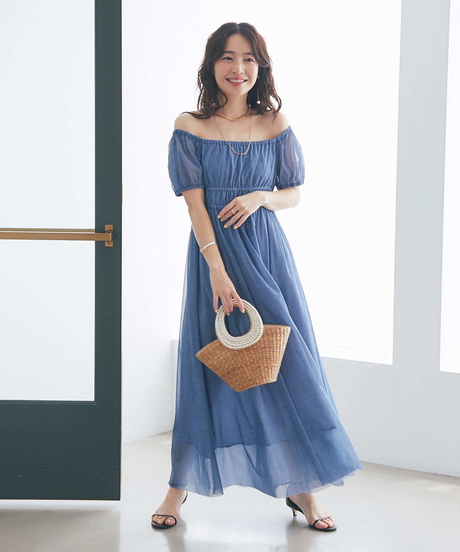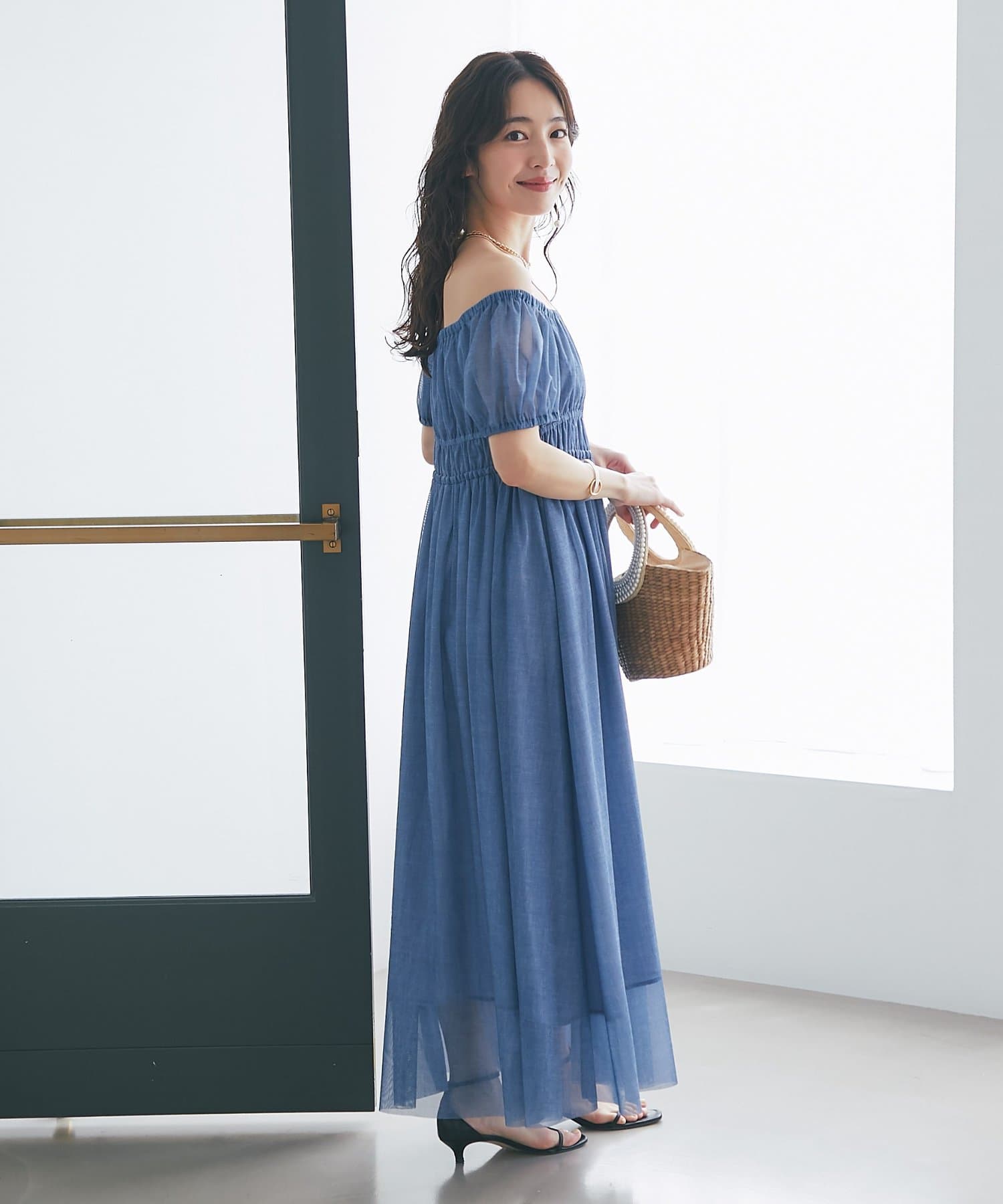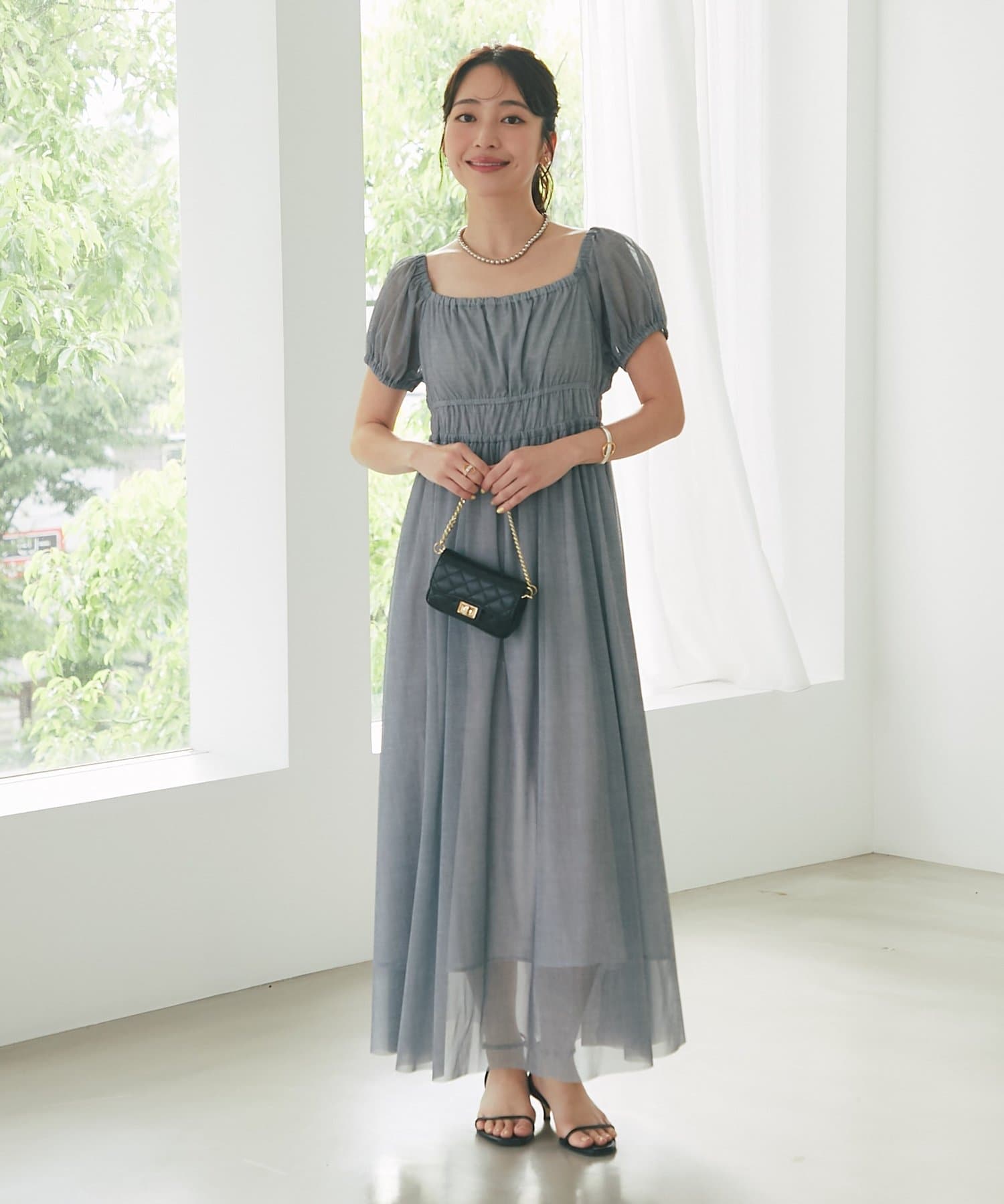 大人の女性を涼やかに彩るエアリーシアーロングワンピース