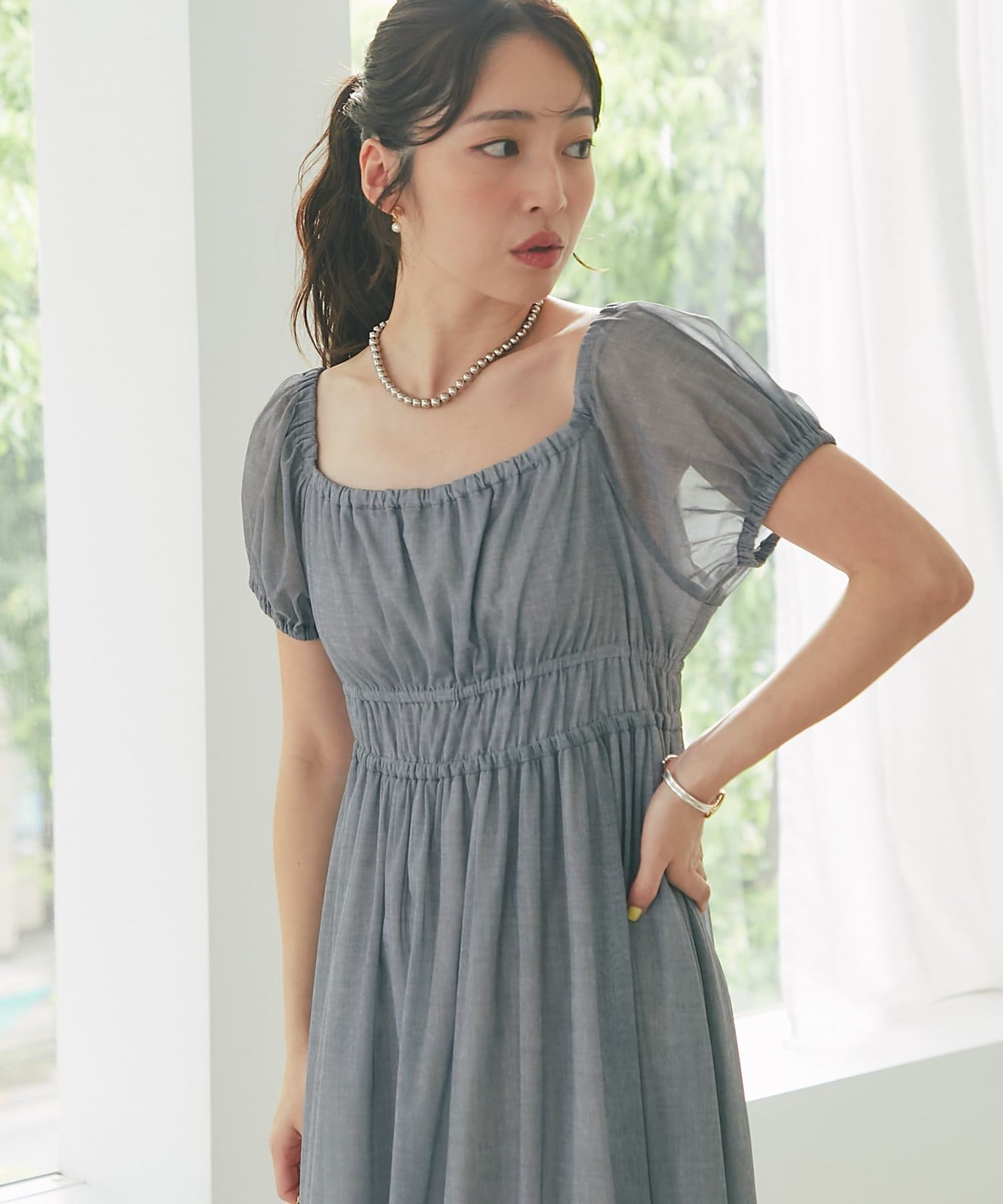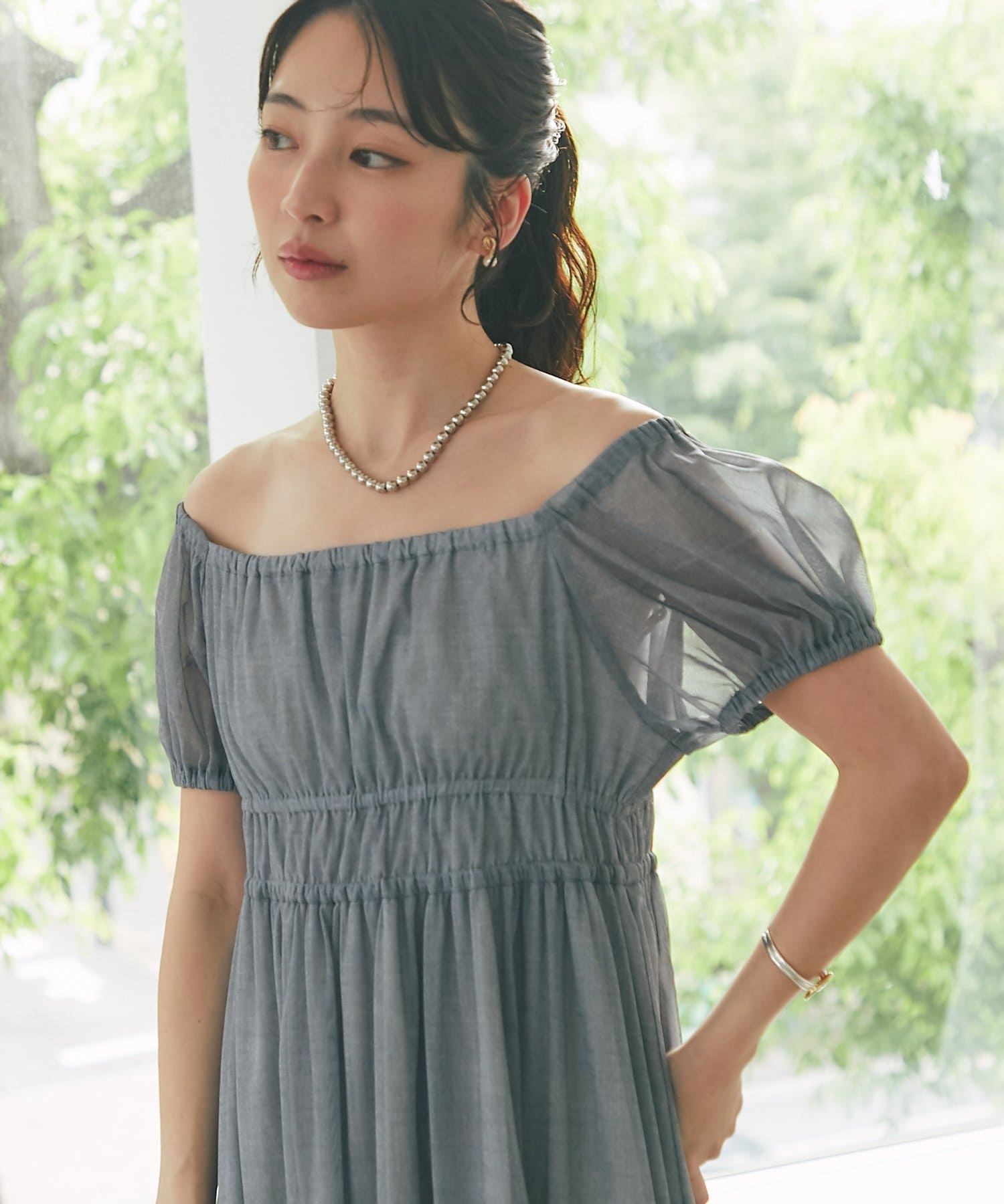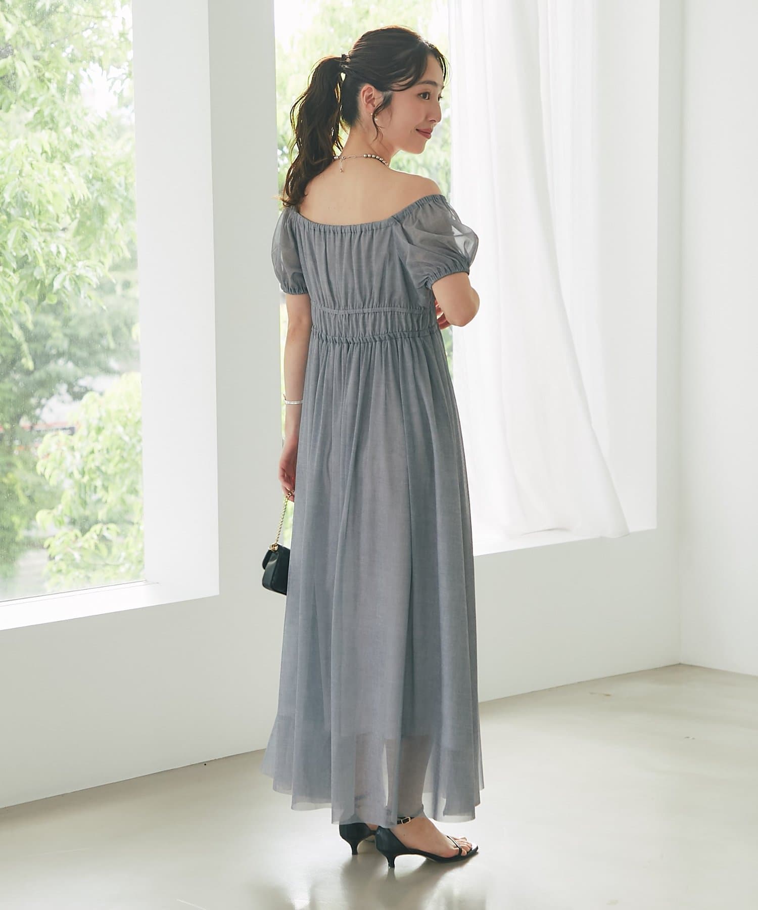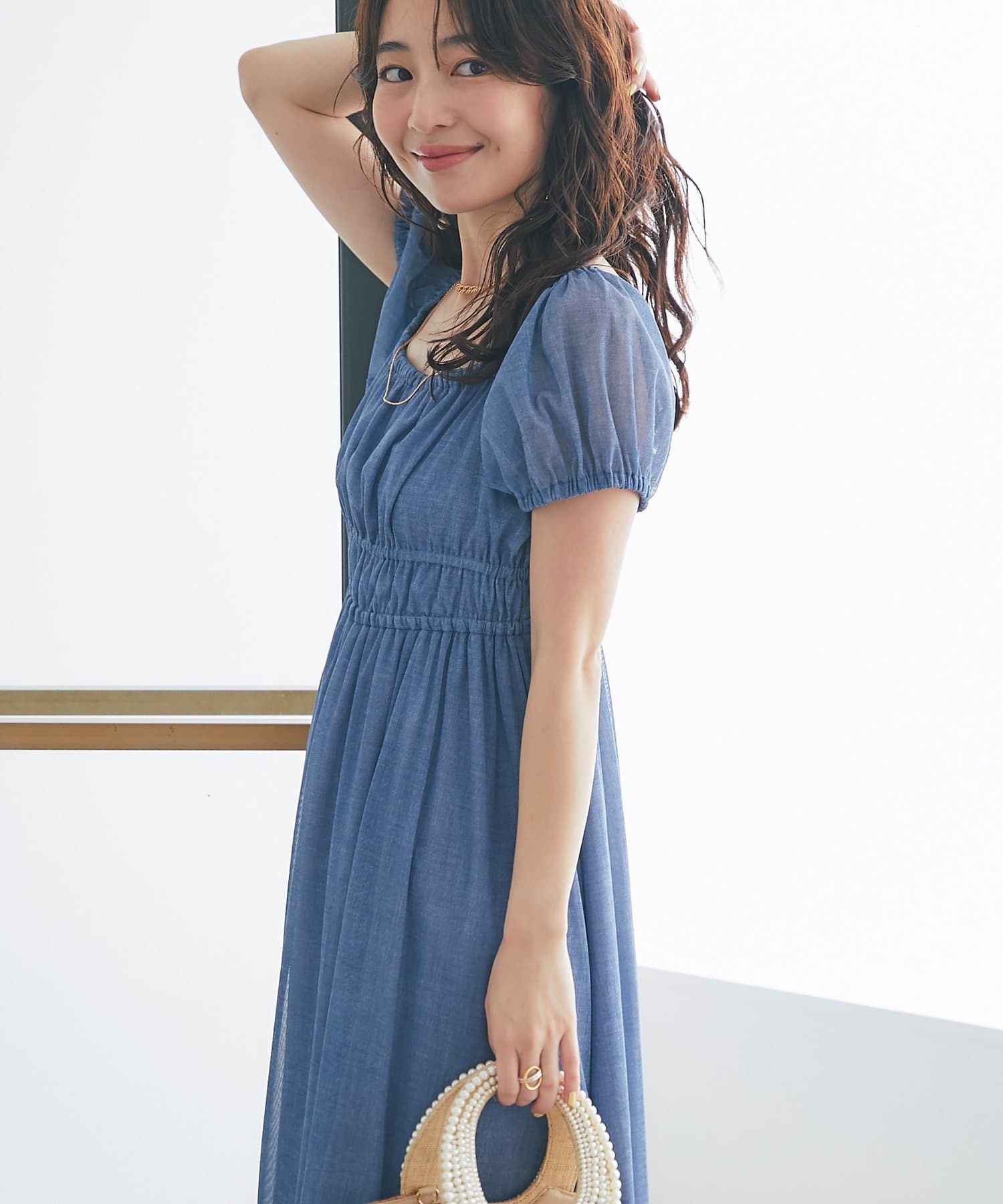 大人の女性を涼やかに彩るエアリーシアーロングワンピース