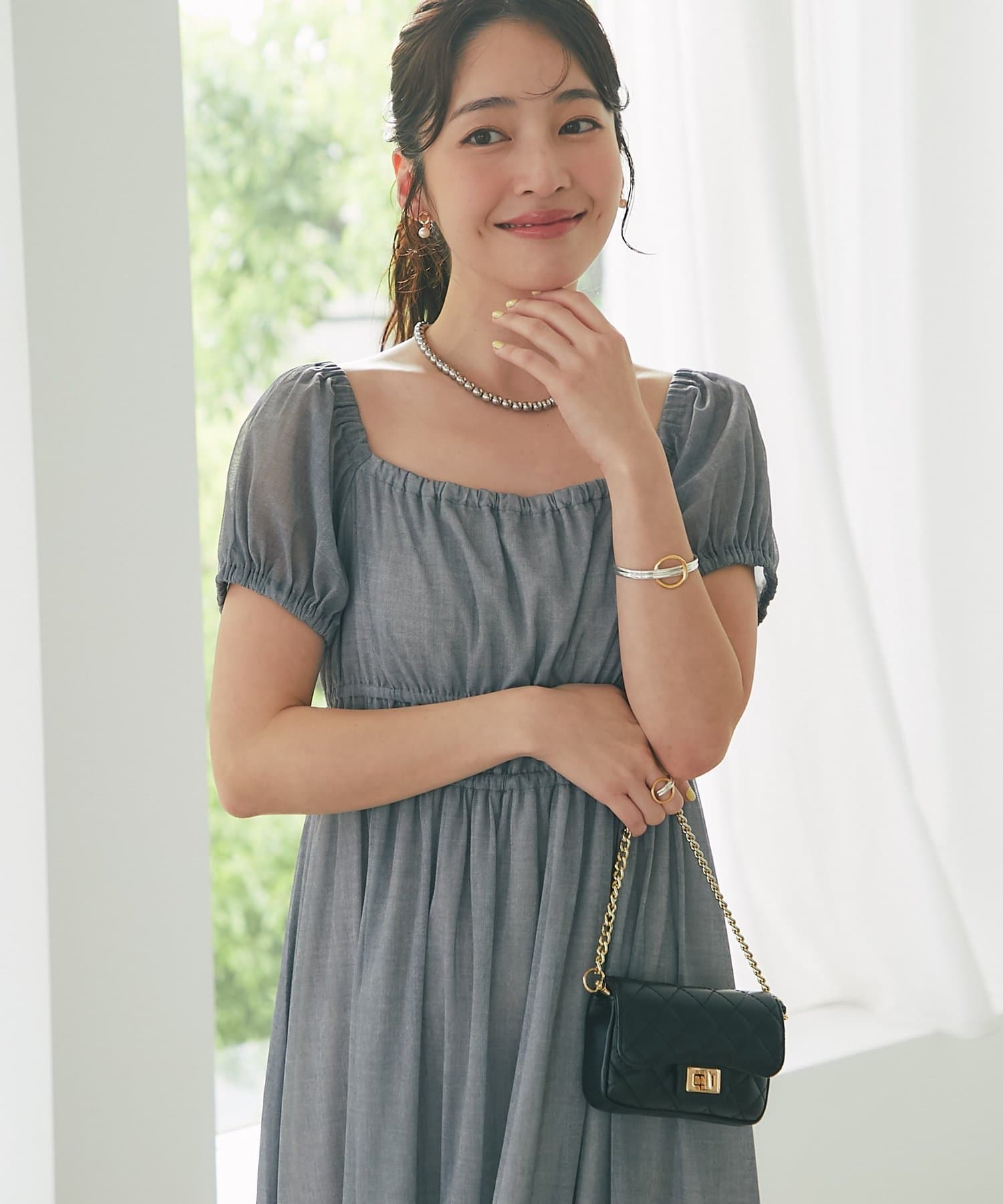 エンパイアラインでスタイルよく華奢見えするシルエット。