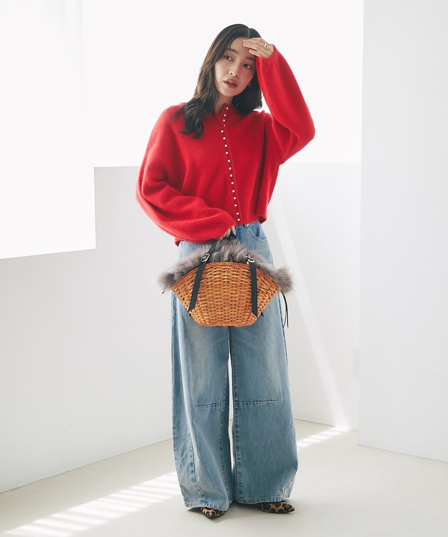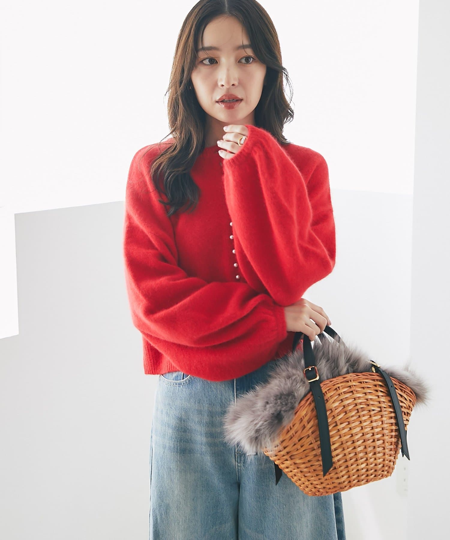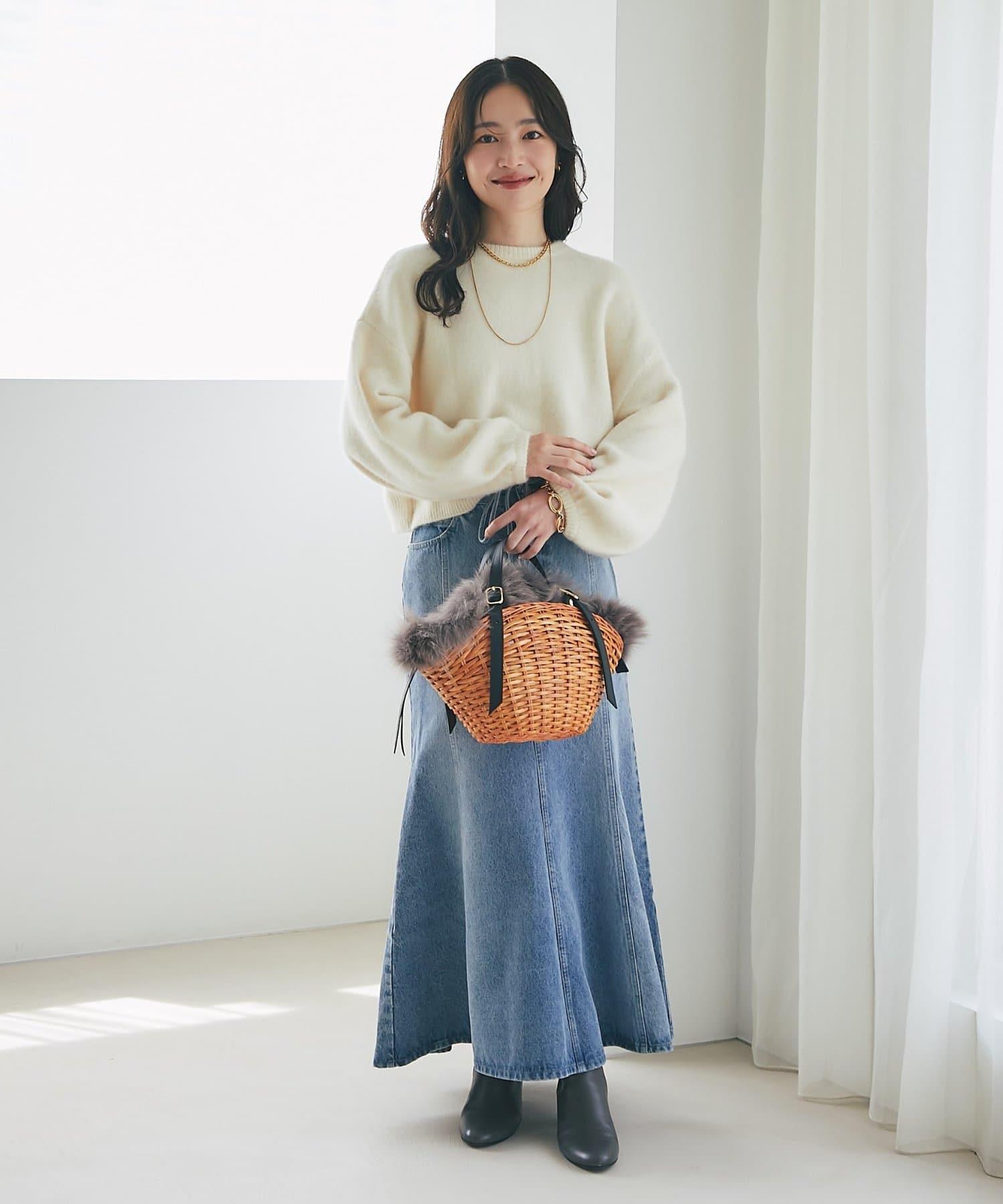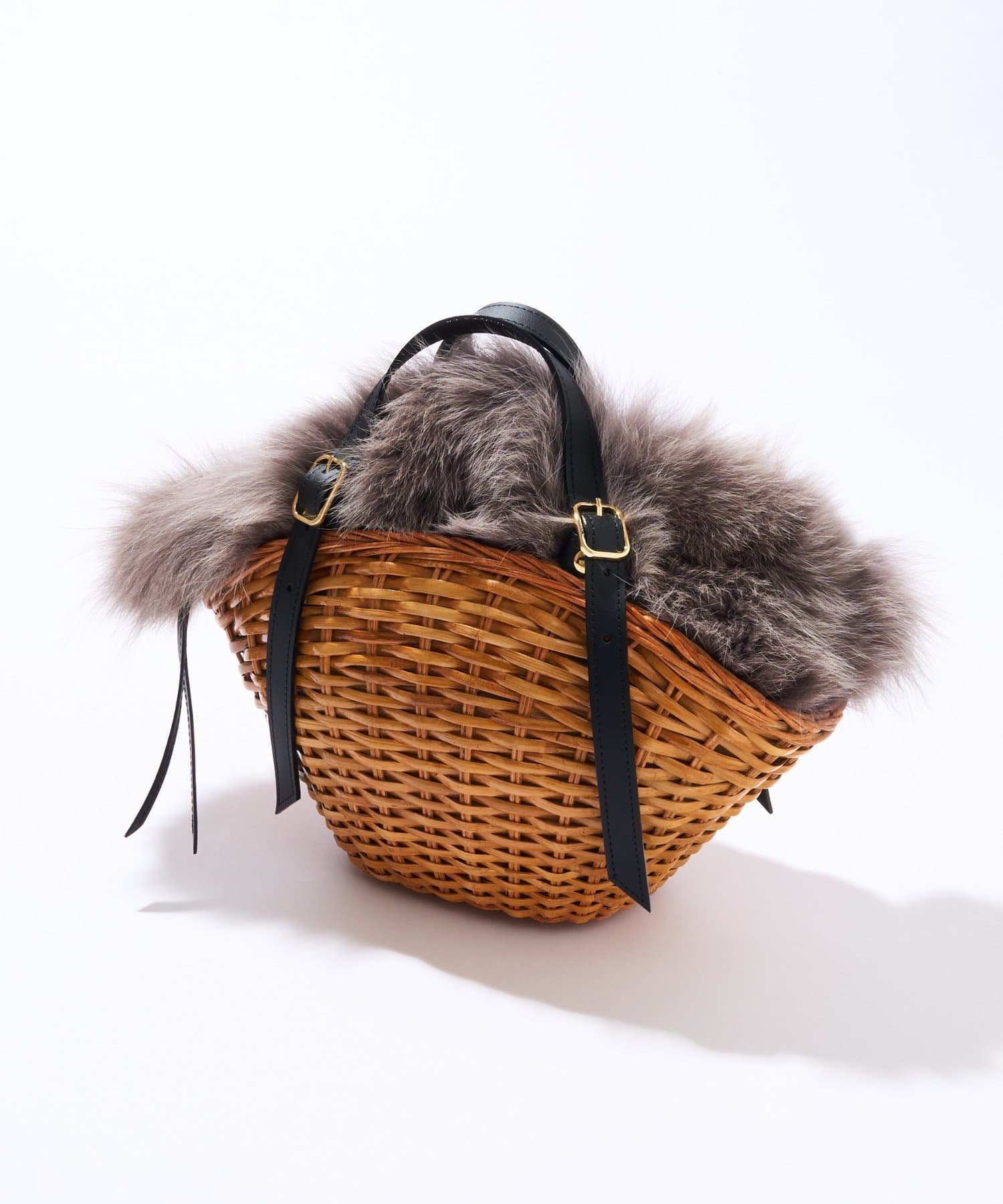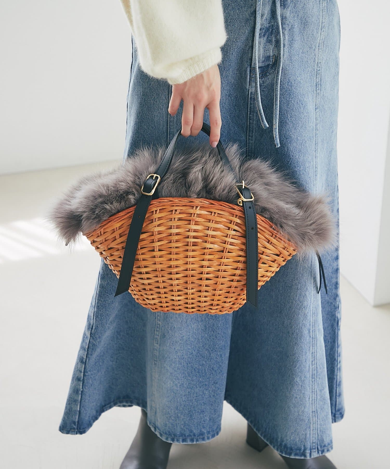 スプリットラタンとフォックスファーを贅沢に組み合わせたカゴバッグ。
