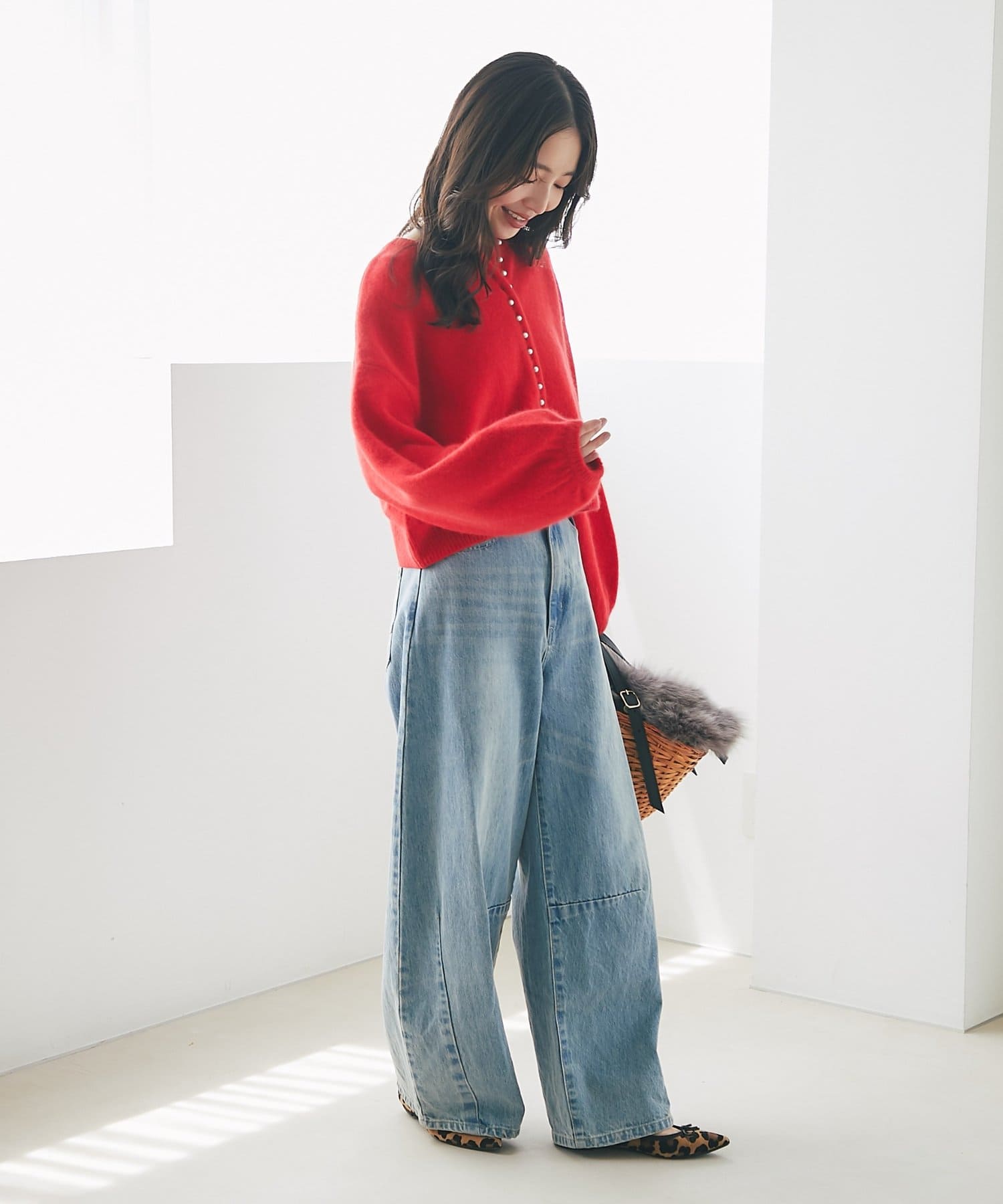 ラタンのボディに随所に施されたレザーパーツを使用したデザインが、カゴバッグでありながら上品な雰囲気を演出してくれます。