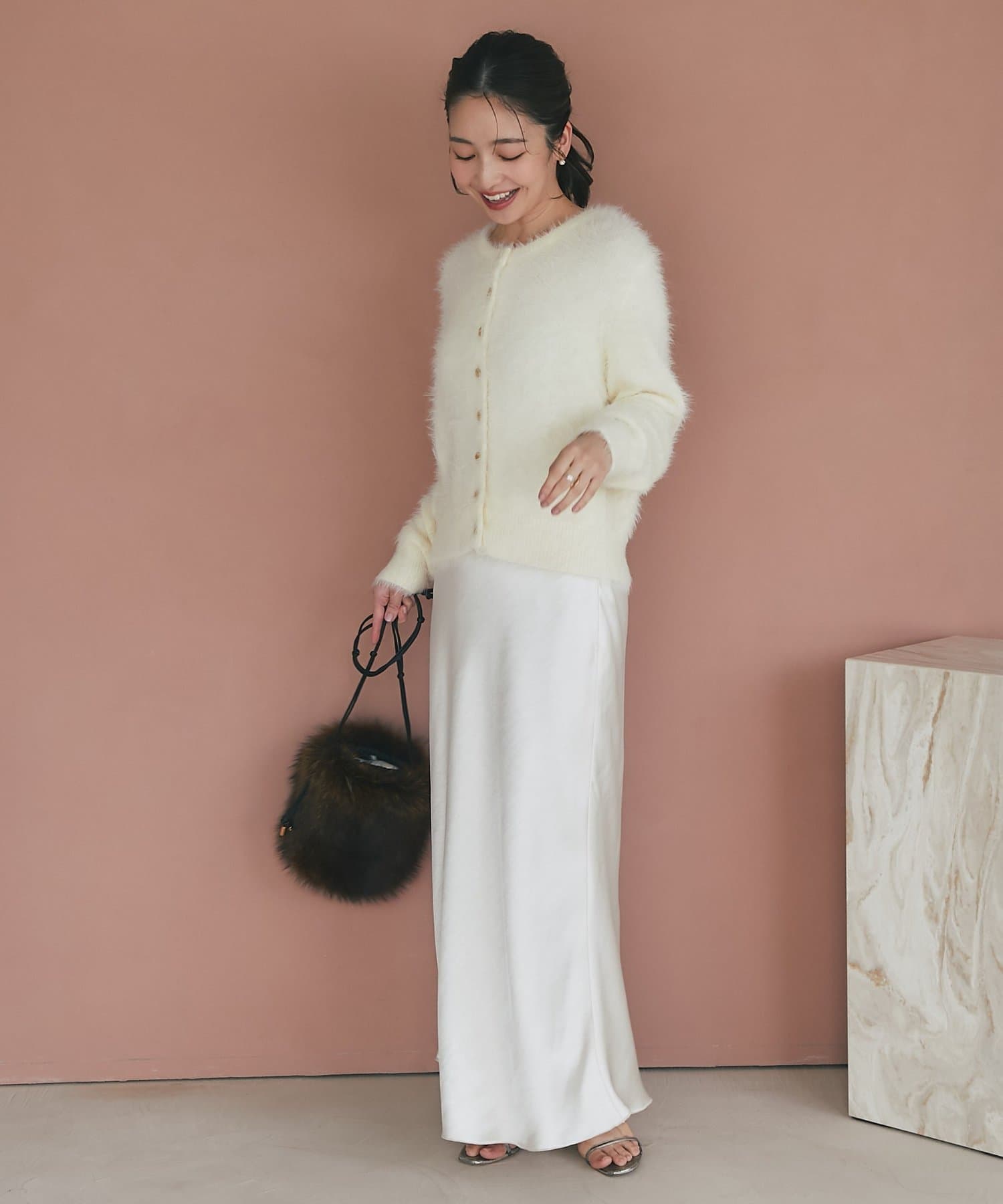 肌触りのよいファーがシーズンムードを高めてくれます。