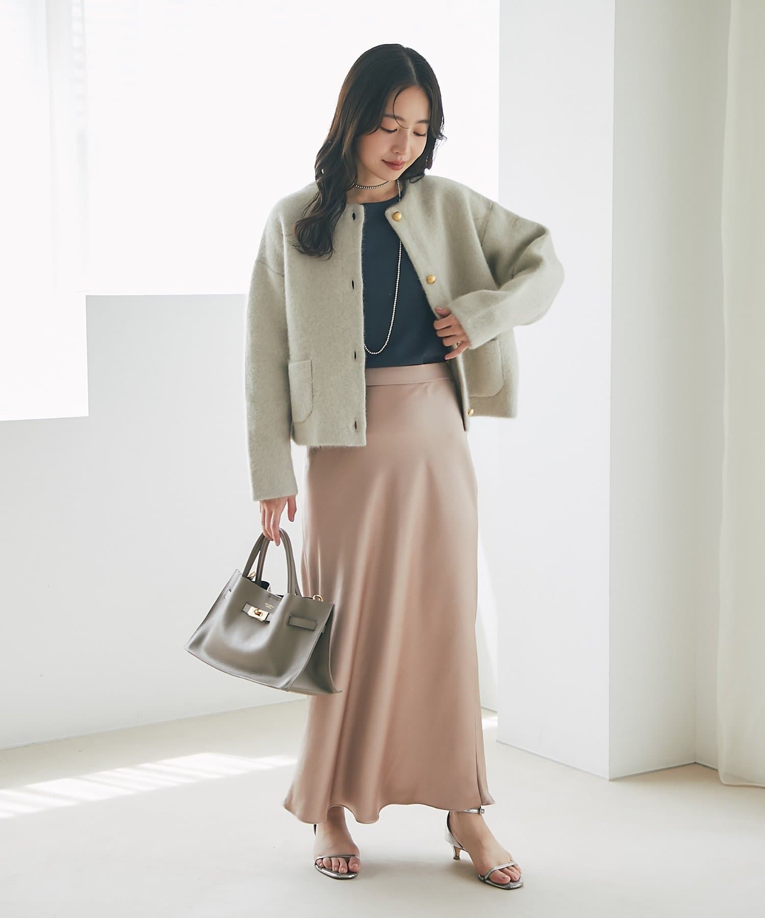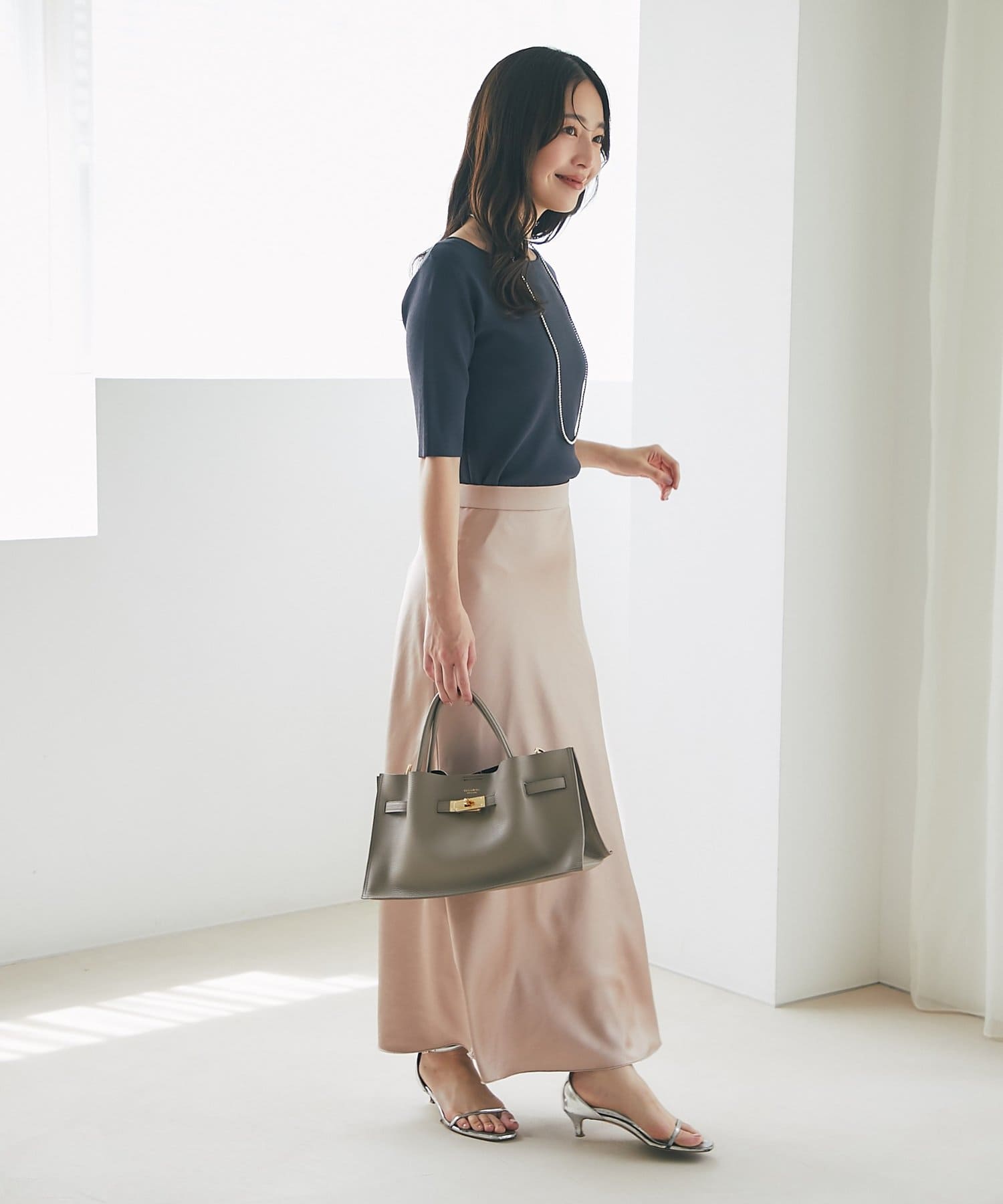 コーデを選ばず使えて持つだけで品の上がるコーデが完成します。
