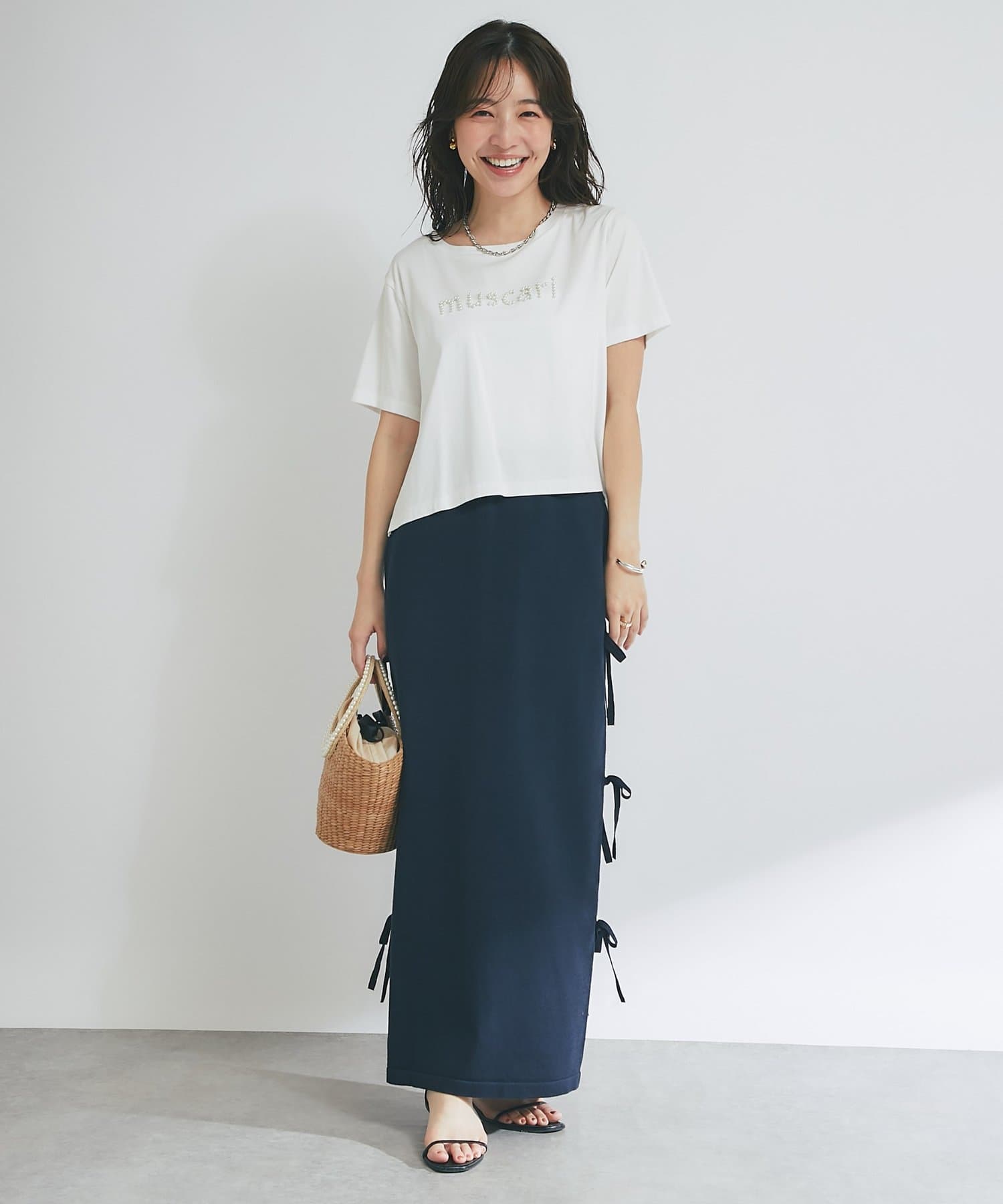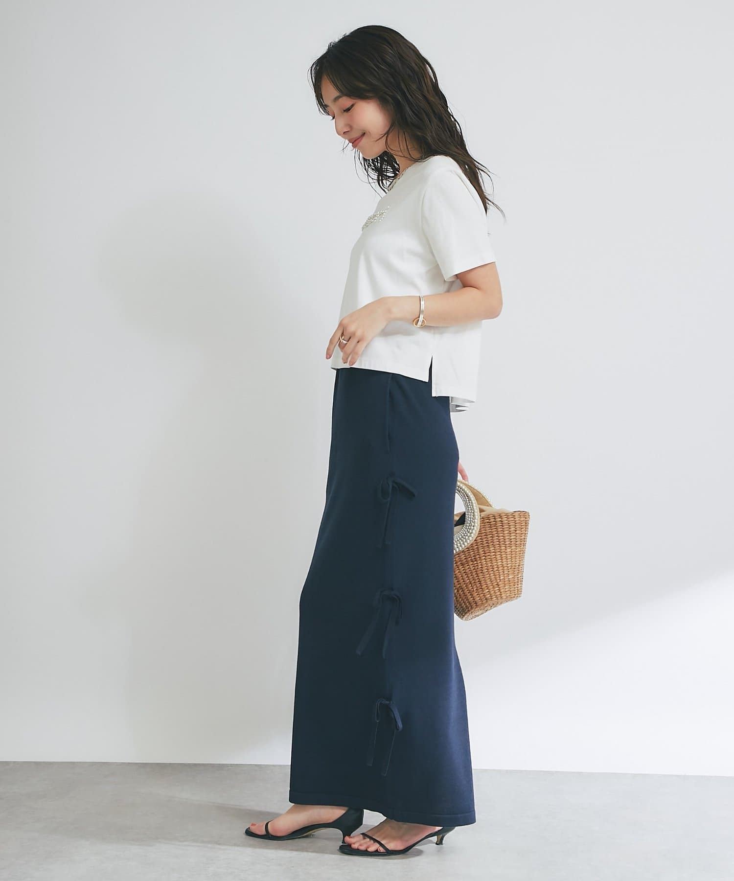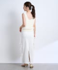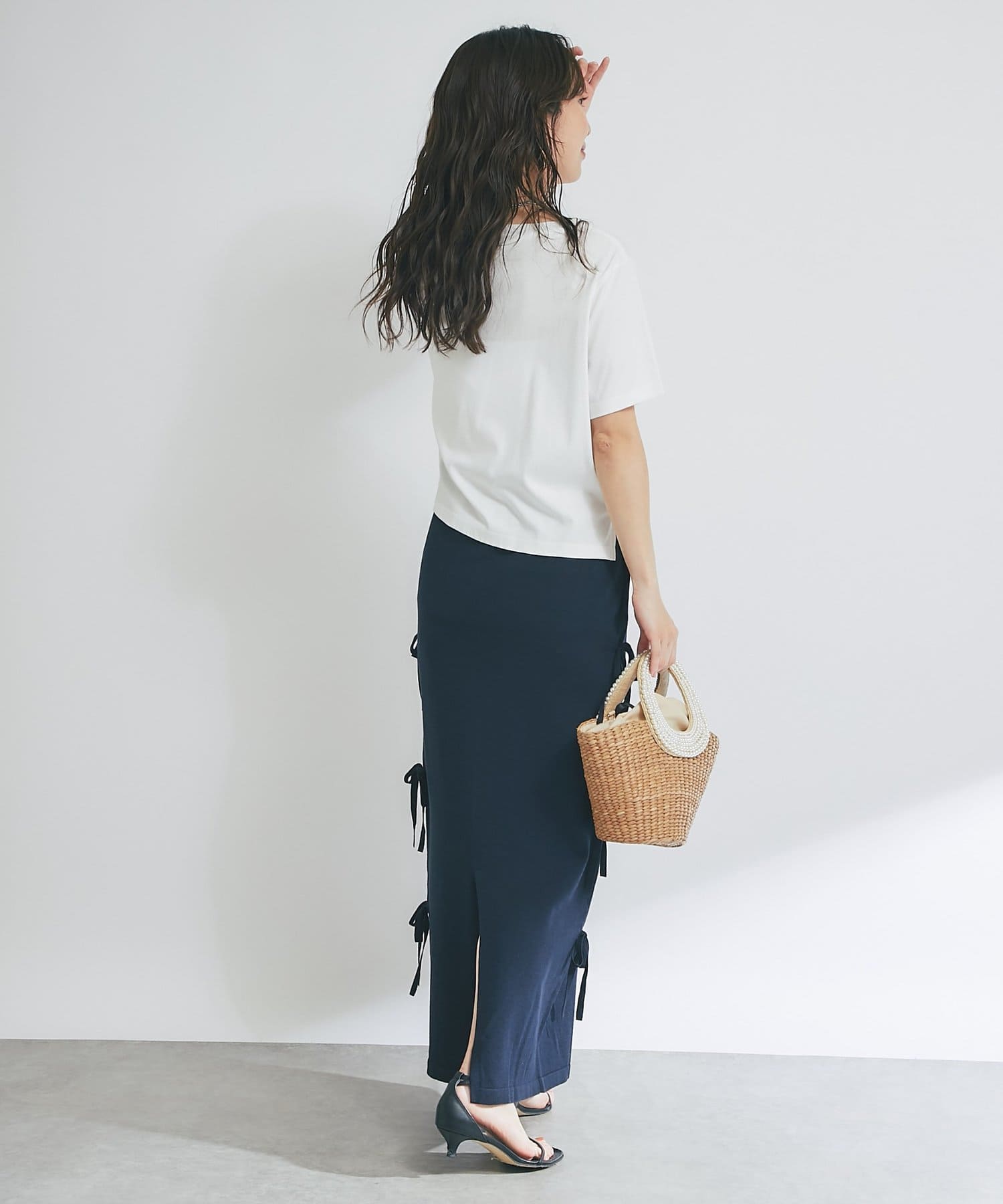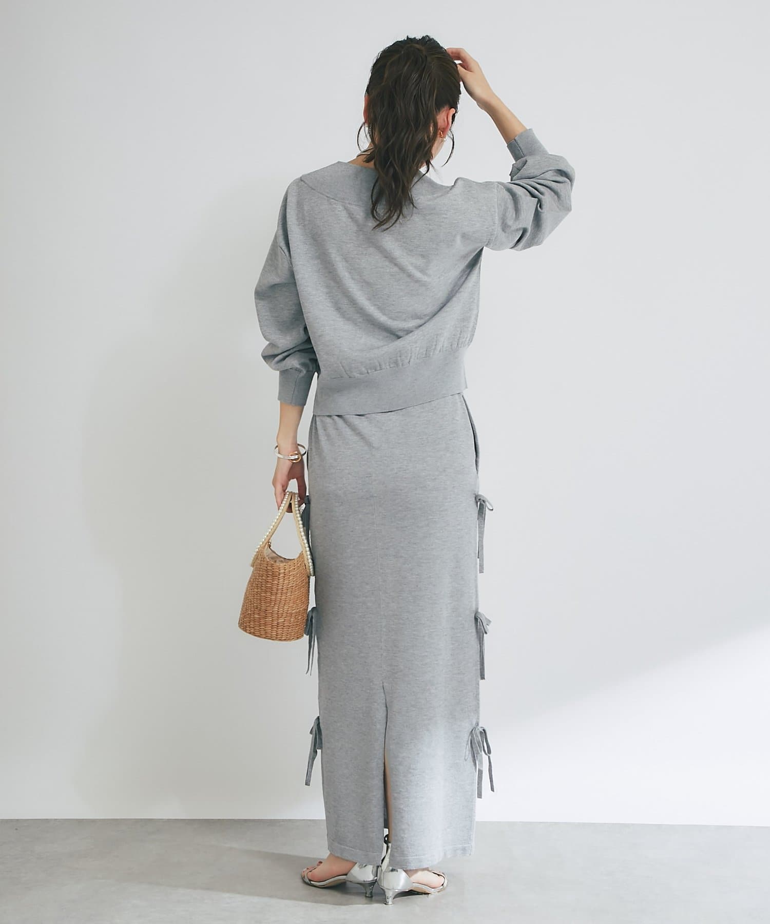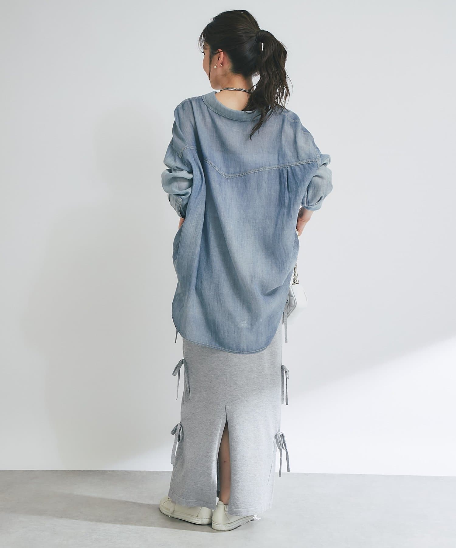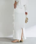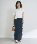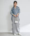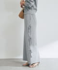 バックにはスリットを施し、ロング丈でも足さばきが良く、軽やかな抜け感をプラスします。