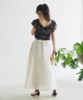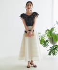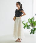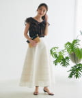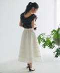 裾にかけてたっぷりと広がるボリュームシルエットがエレガントでありながらも軽やかな印象に。