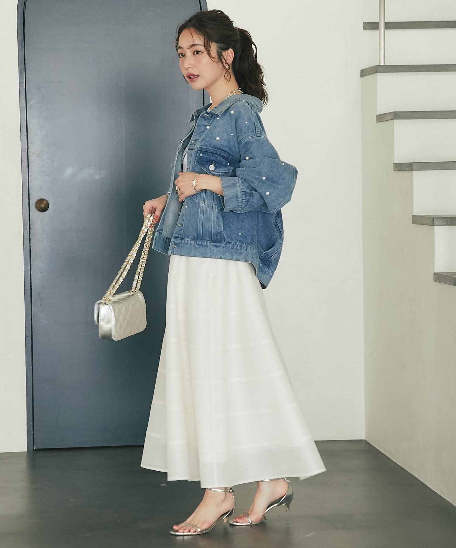 足元はヒールやサンダル、ブーツなど合わせるアイテムによって雰囲気を変えて楽しめます。