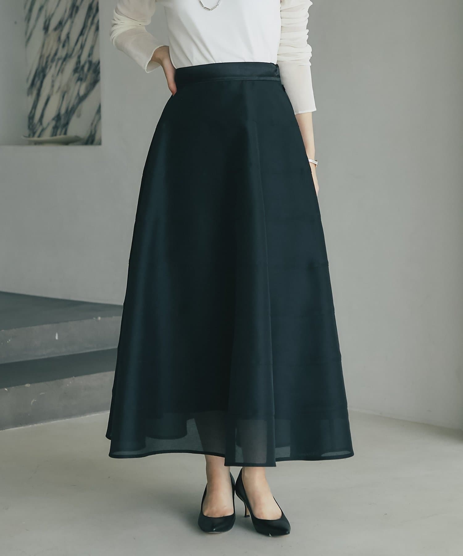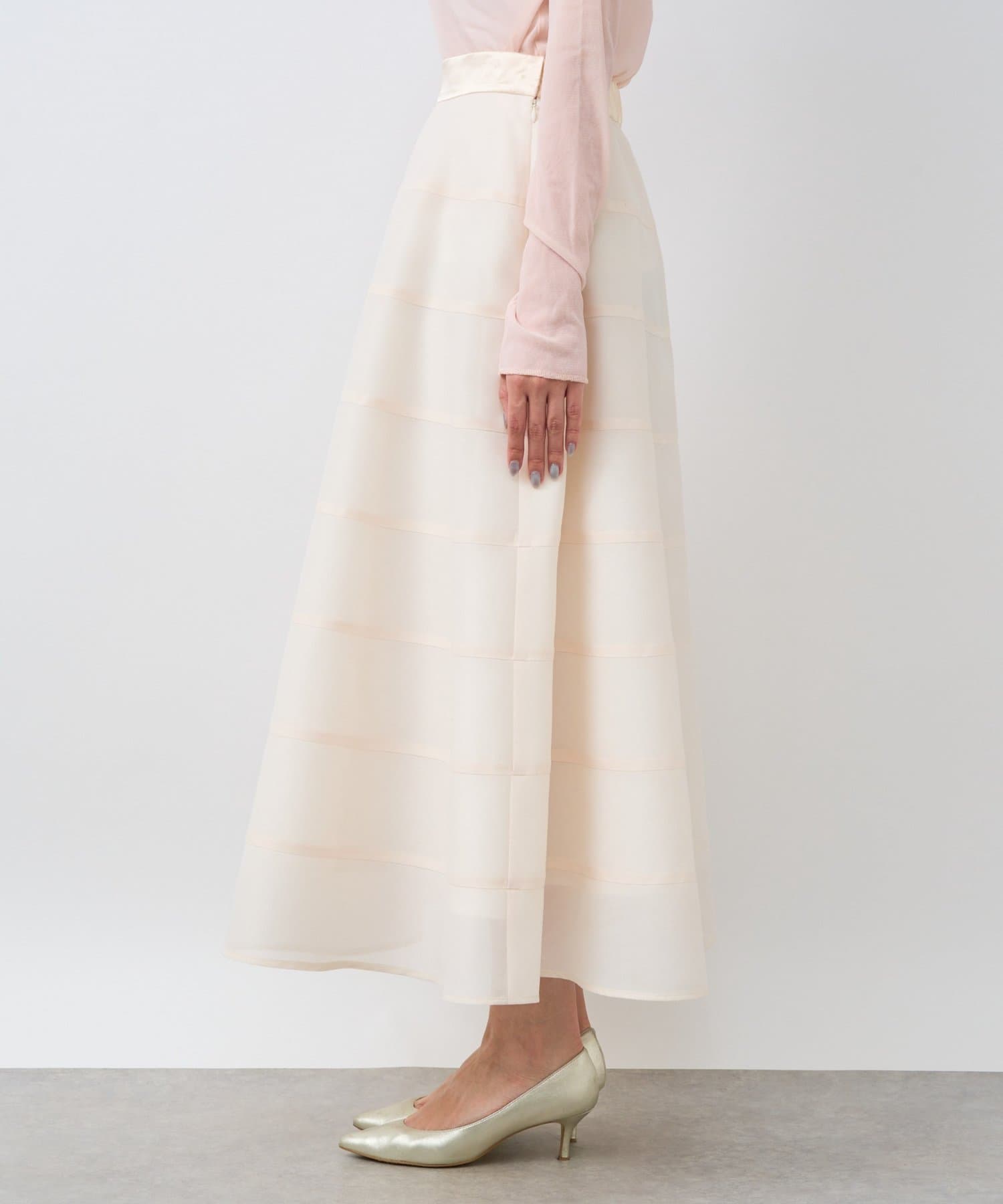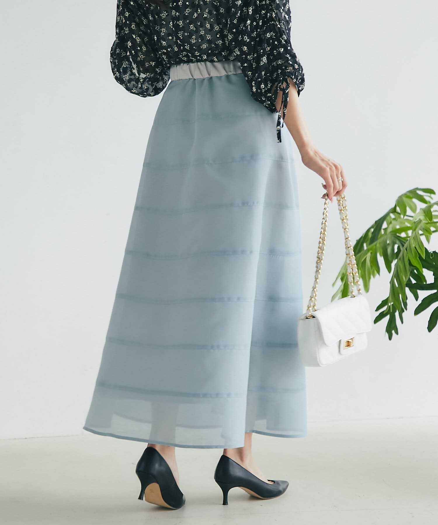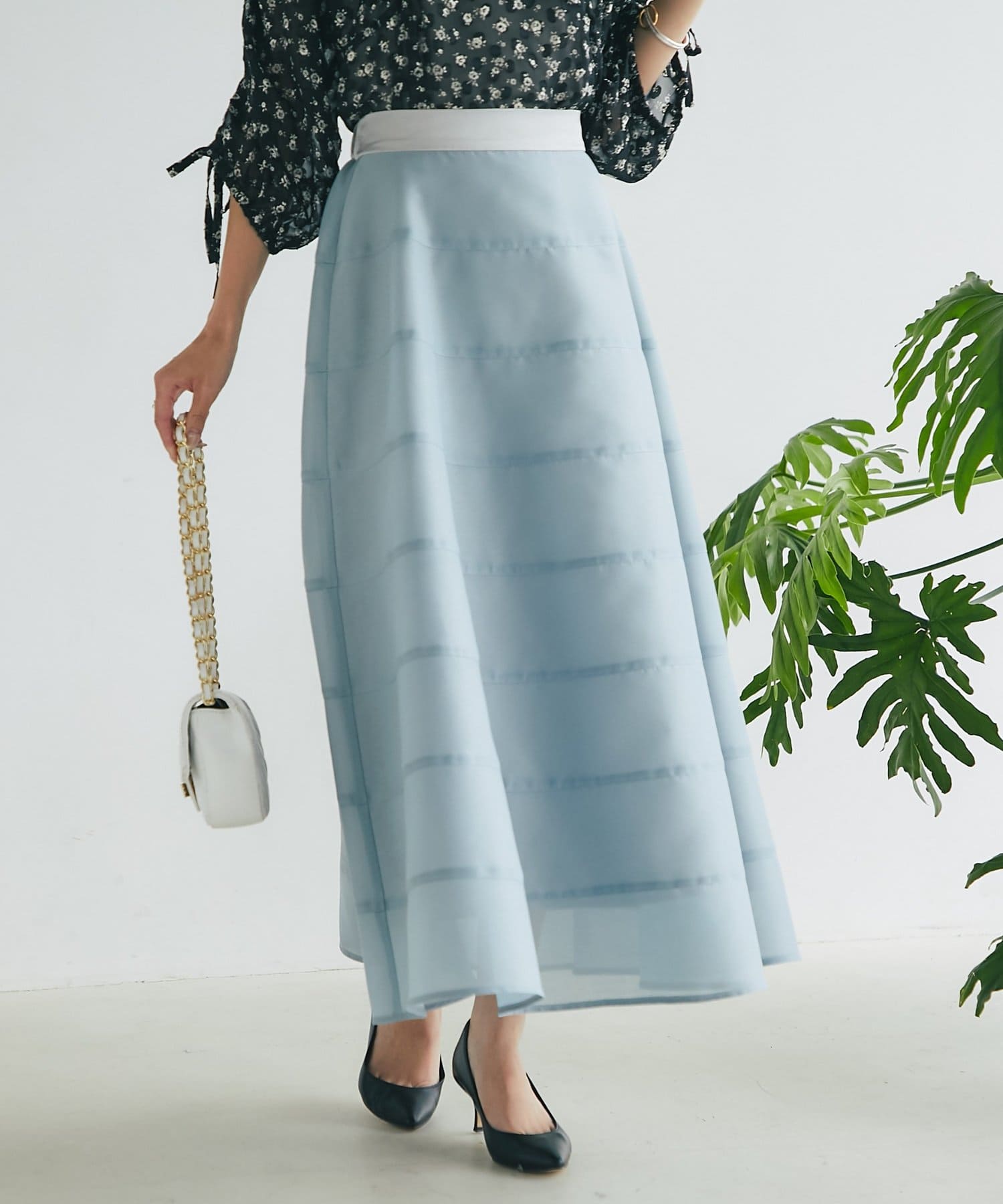 歩くたびにふわりと揺れるエアリーなサーキュラースカート。