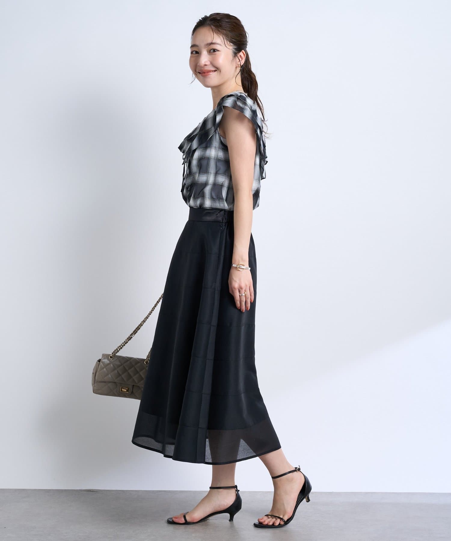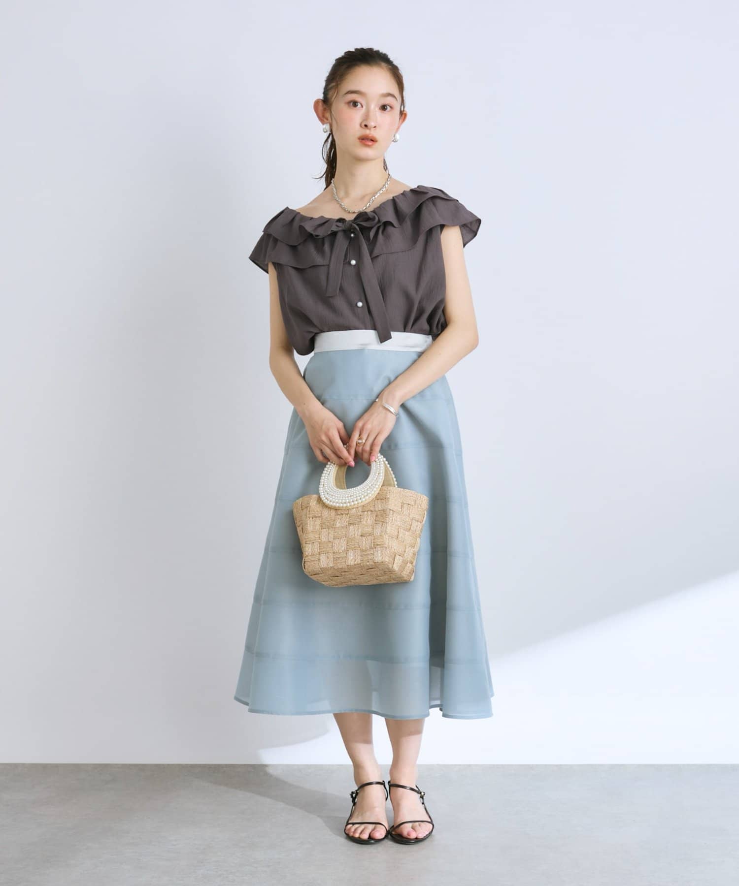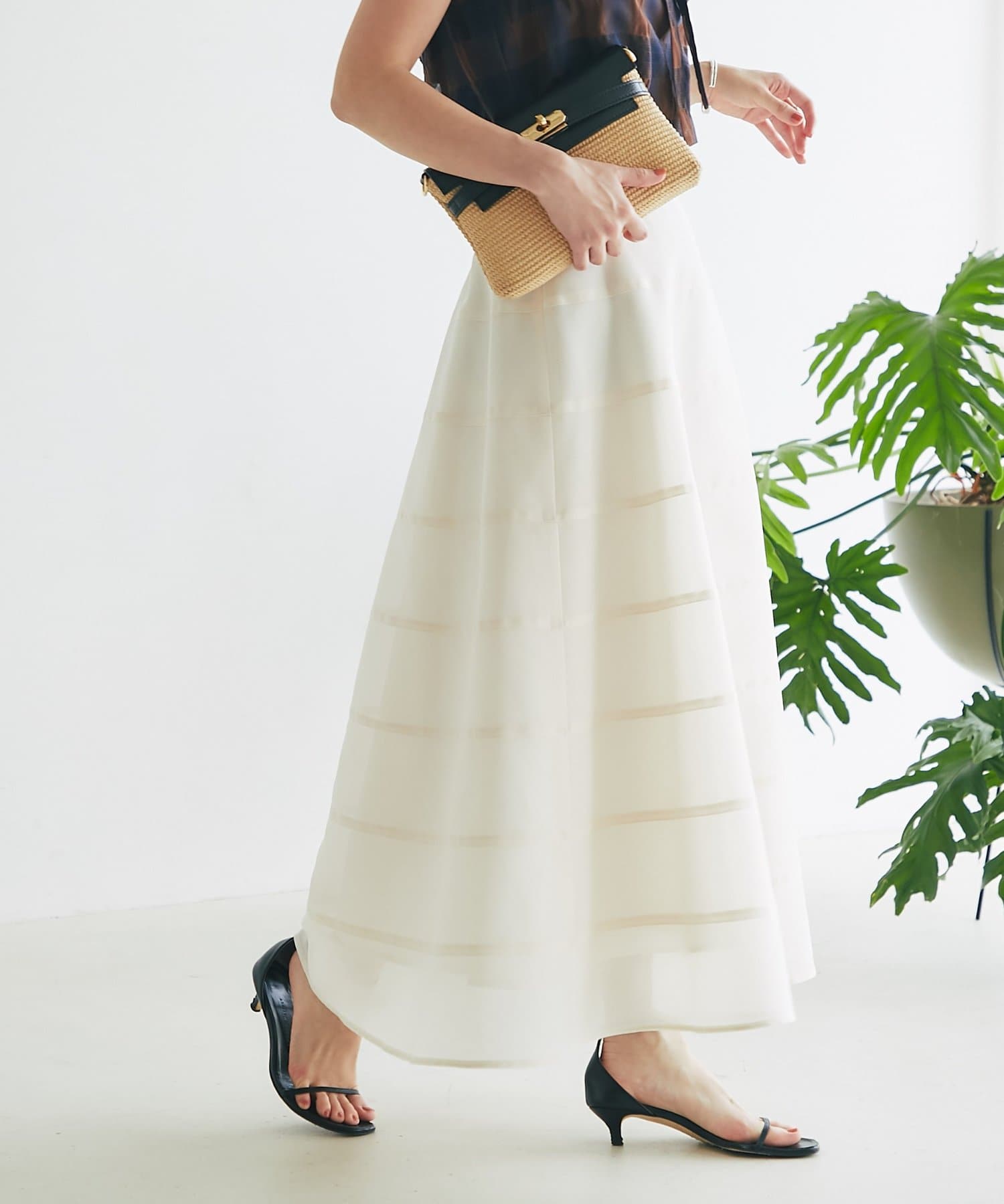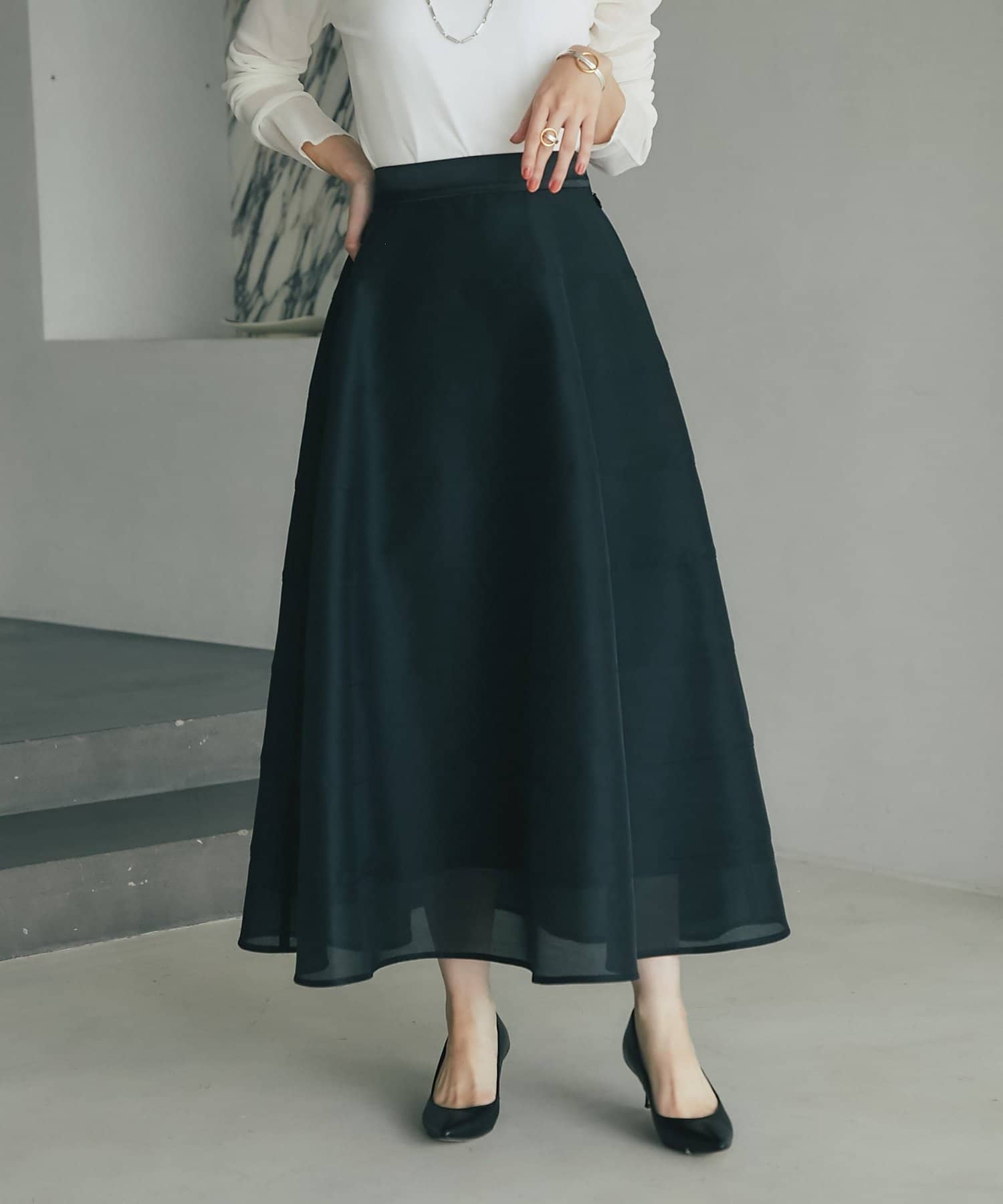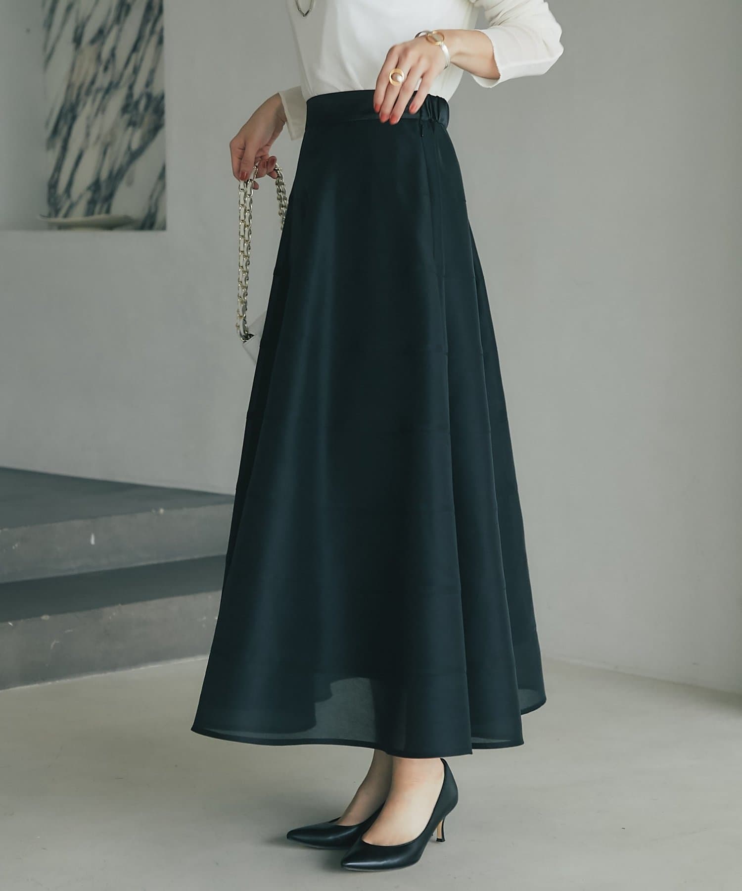 歩くたびにふわりと揺れるエアリーなサーキュラースカート。
