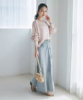 ショート丈のトップスを合わせれば、ウエストのリボンが引き立ち、