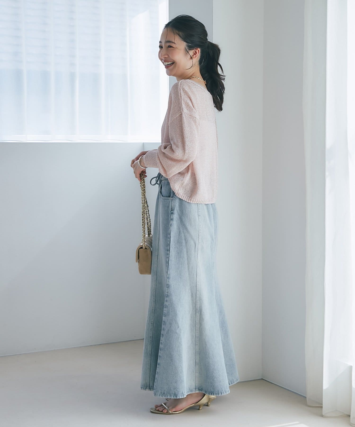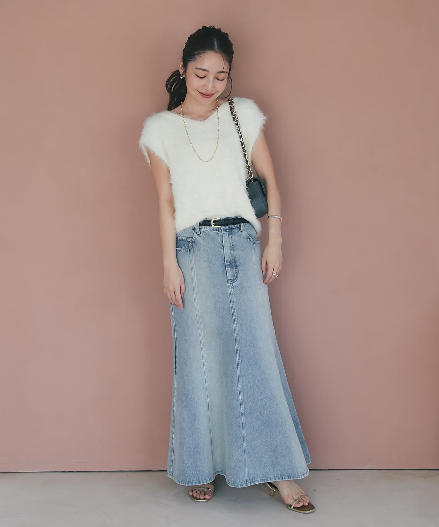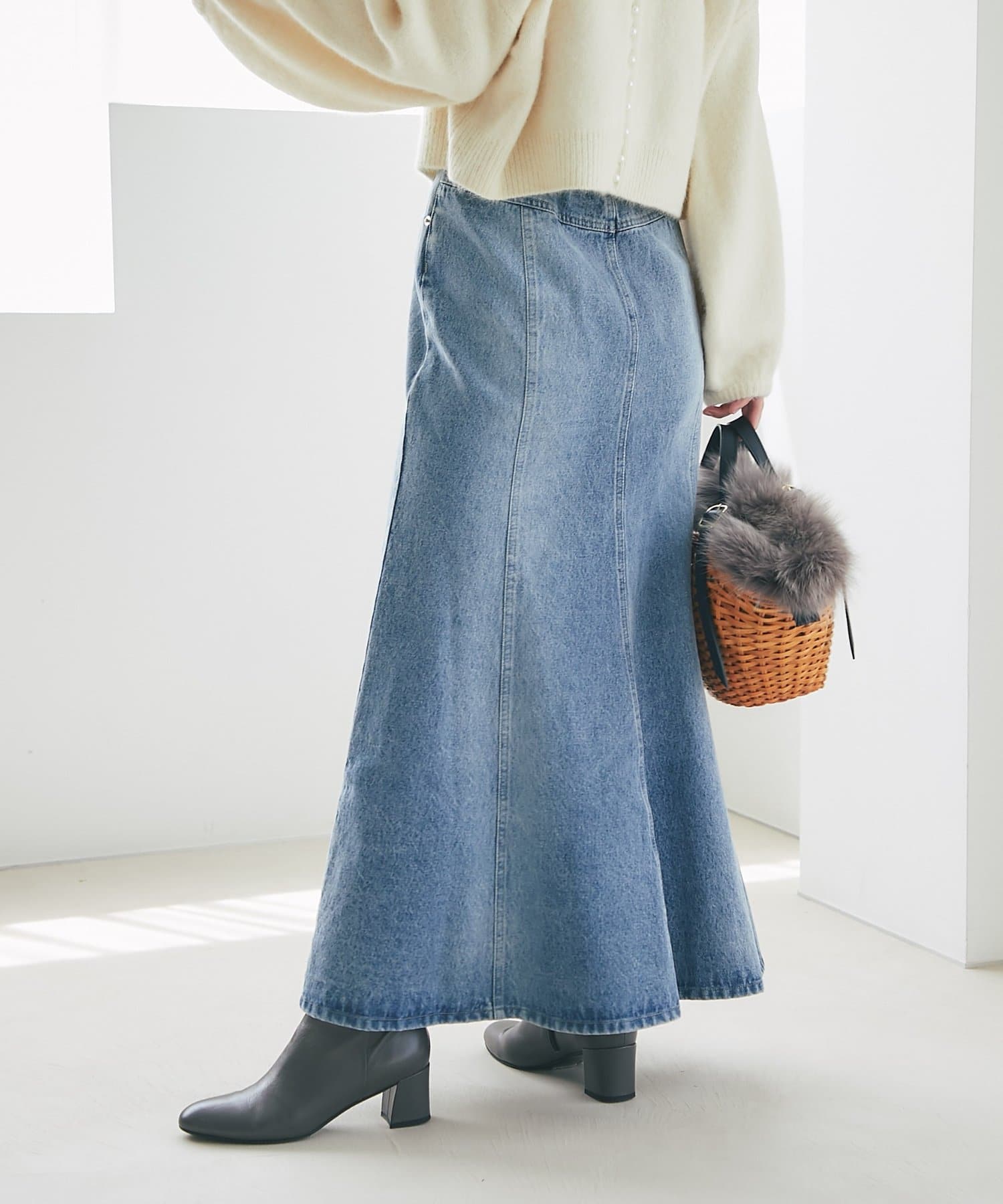 ●デザイン                                                                                                   カジュアルカジュアルになりすぎず、大人っぽく着こなせるデニム素材のマーメイドスカート。