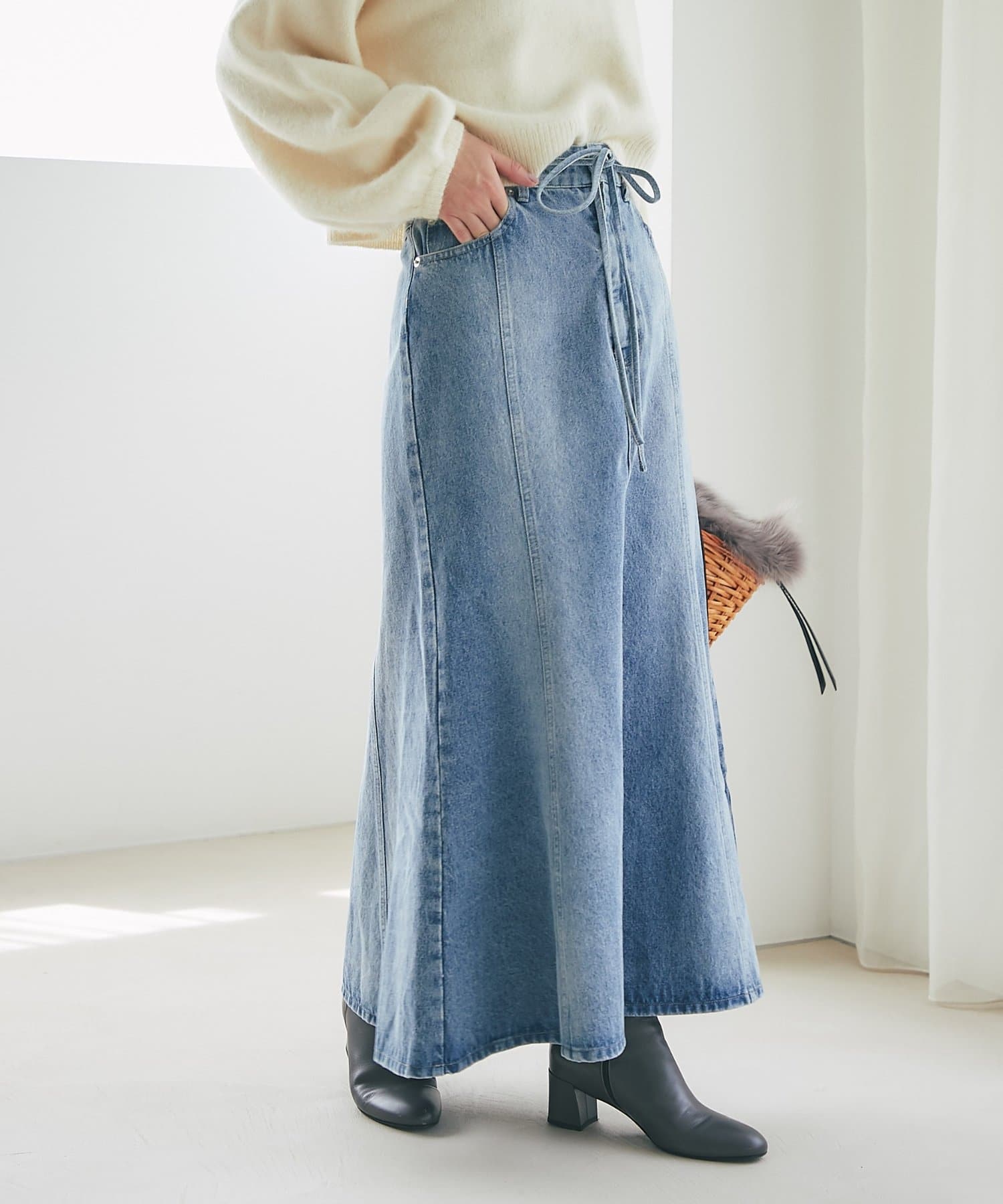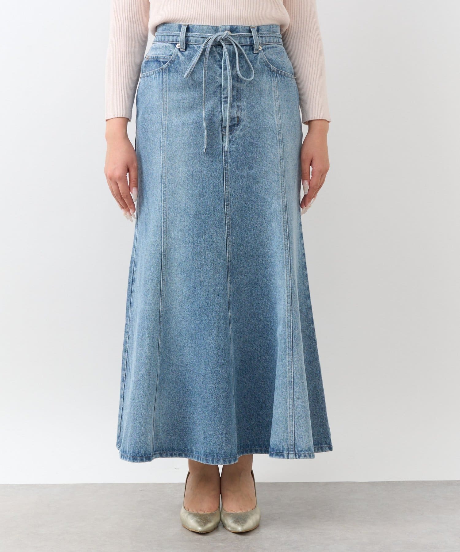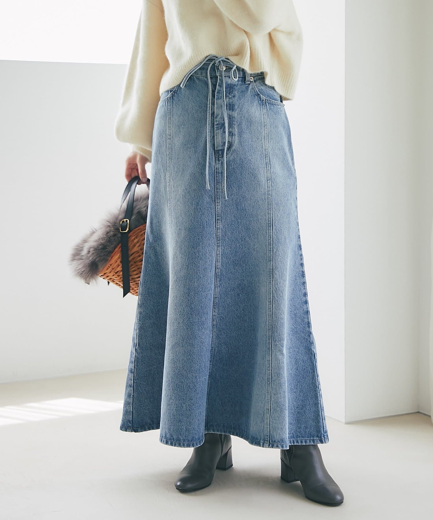 【美シルエット】リボンデニムマーメイドマキシスカート