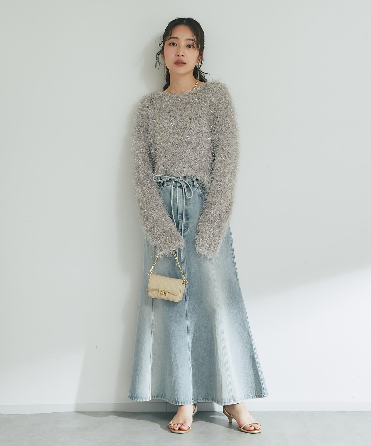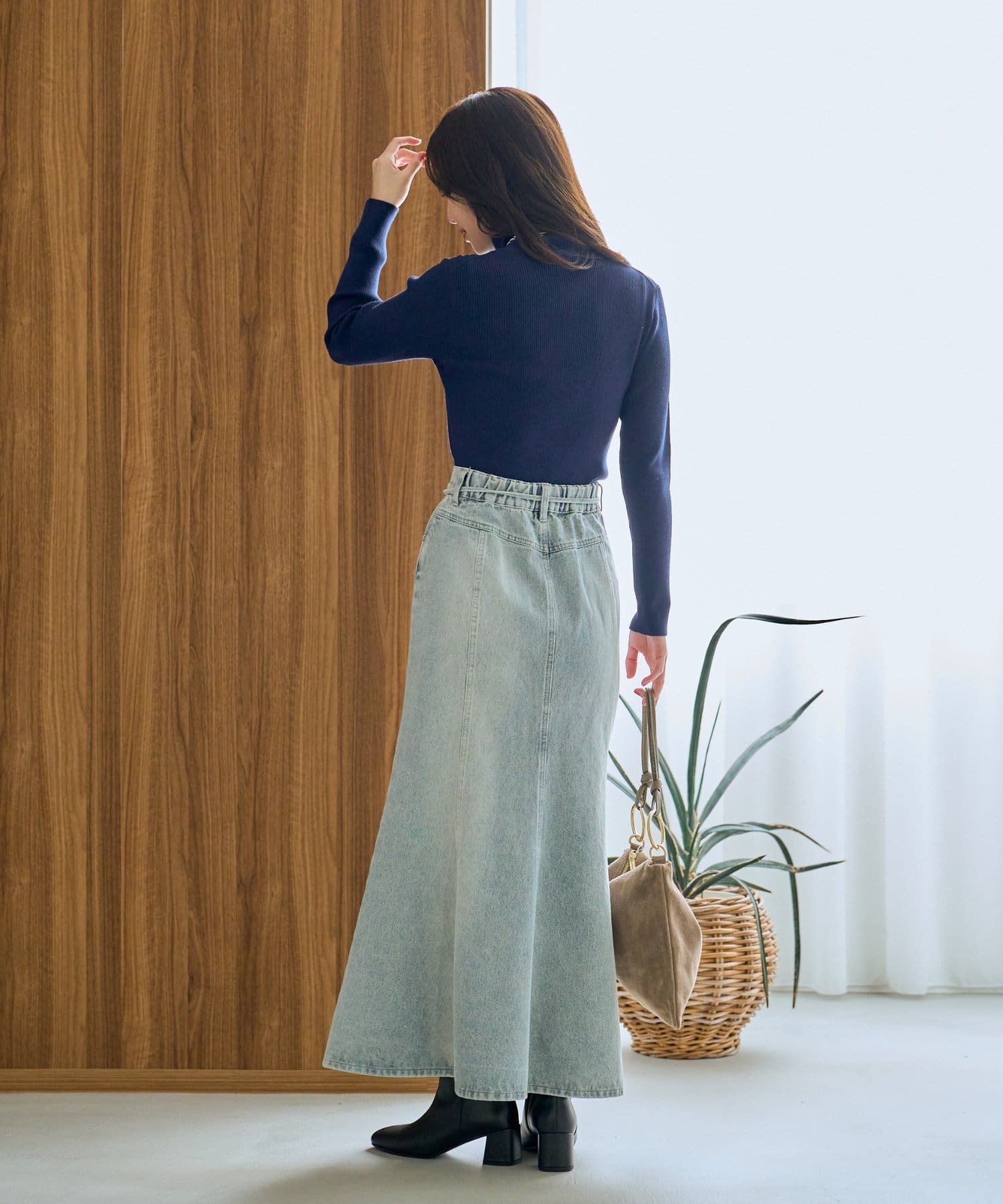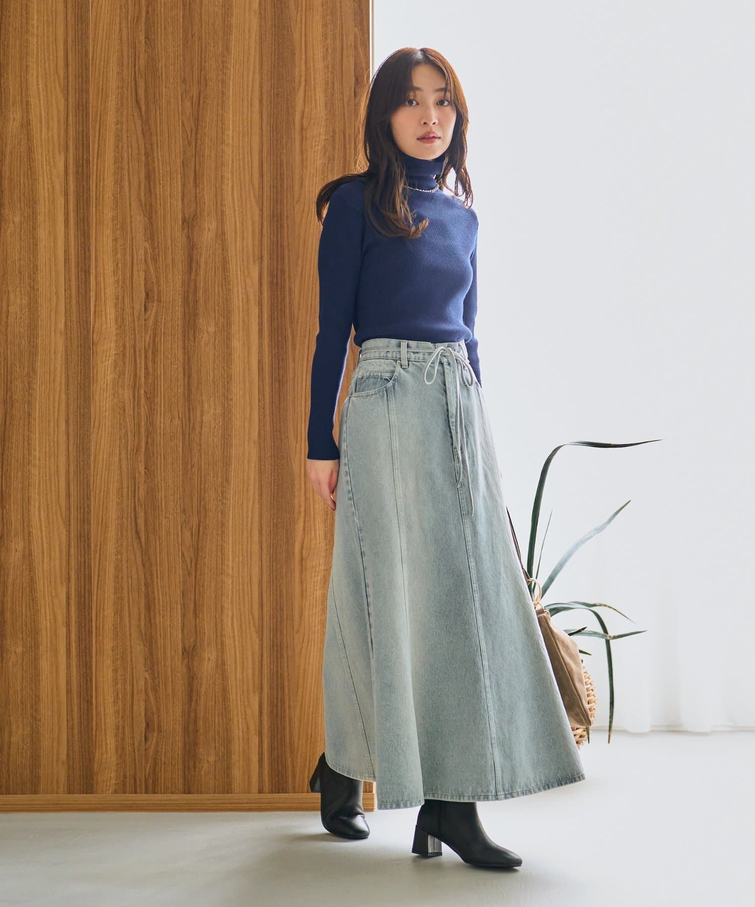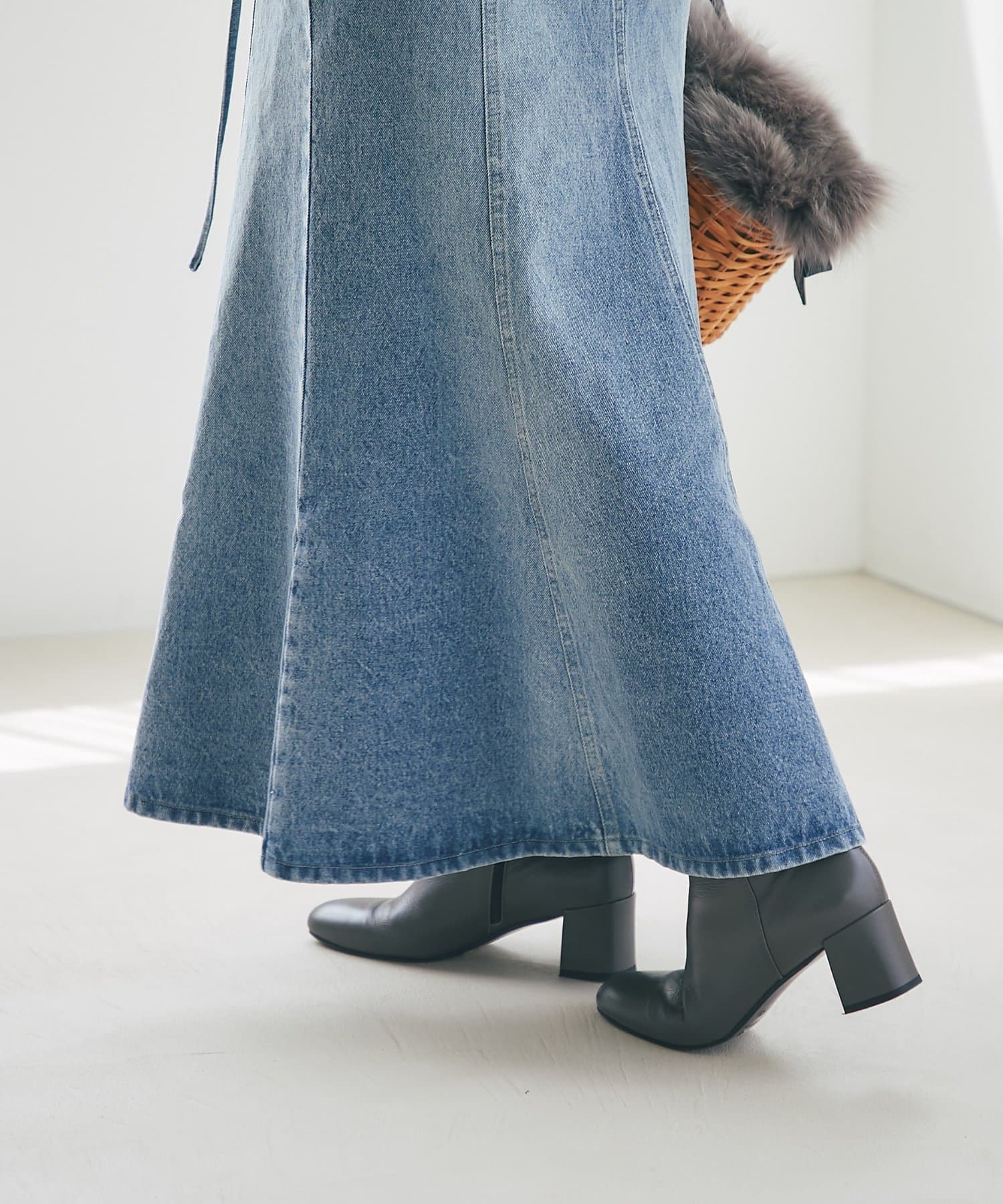 【美シルエット】リボンデニムマーメイドマキシスカート