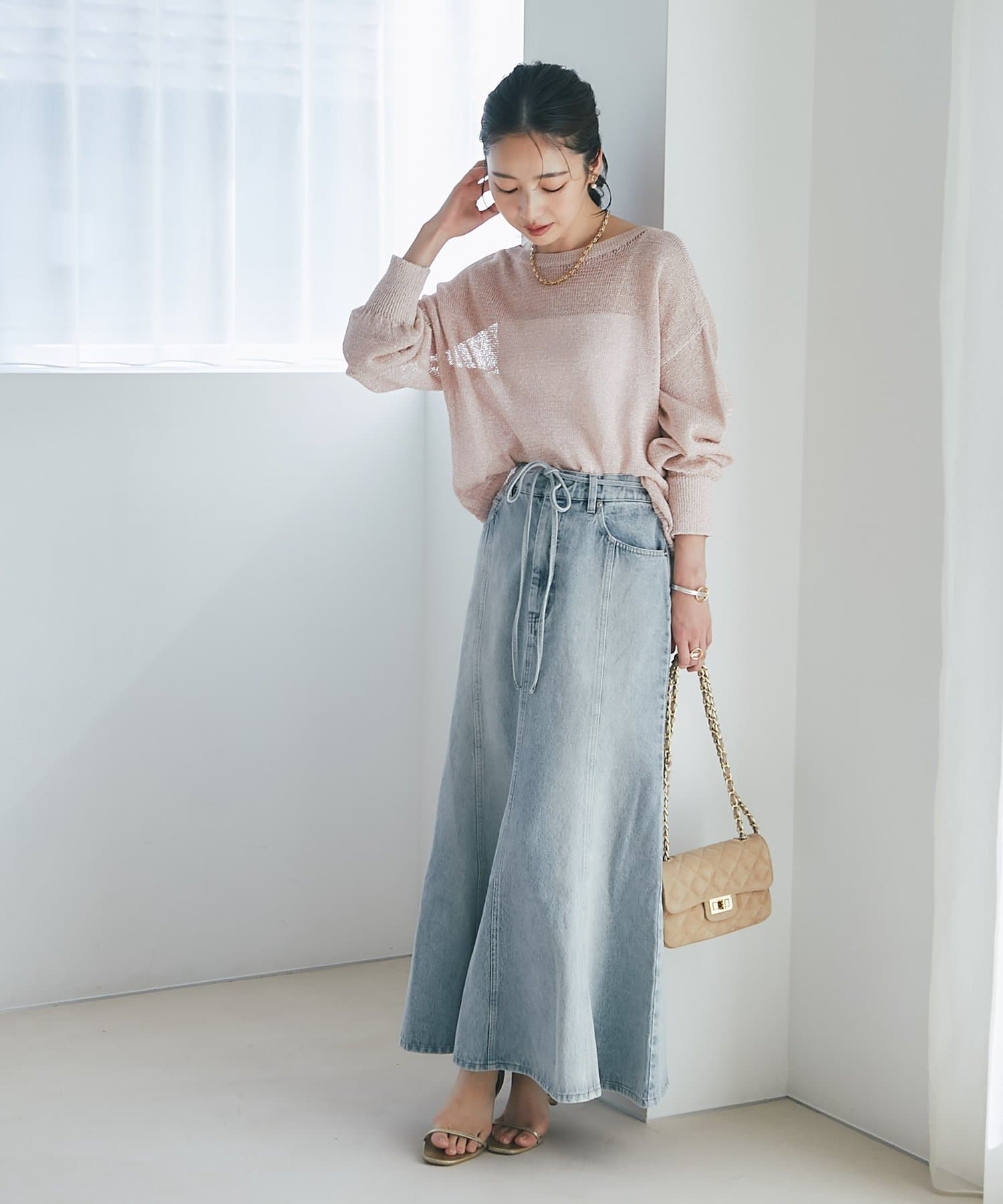 TOP > La boutique BonBon > レディース > スカート > スカート > 【美シルエット】リボンデニムマーメイドマキシスカート