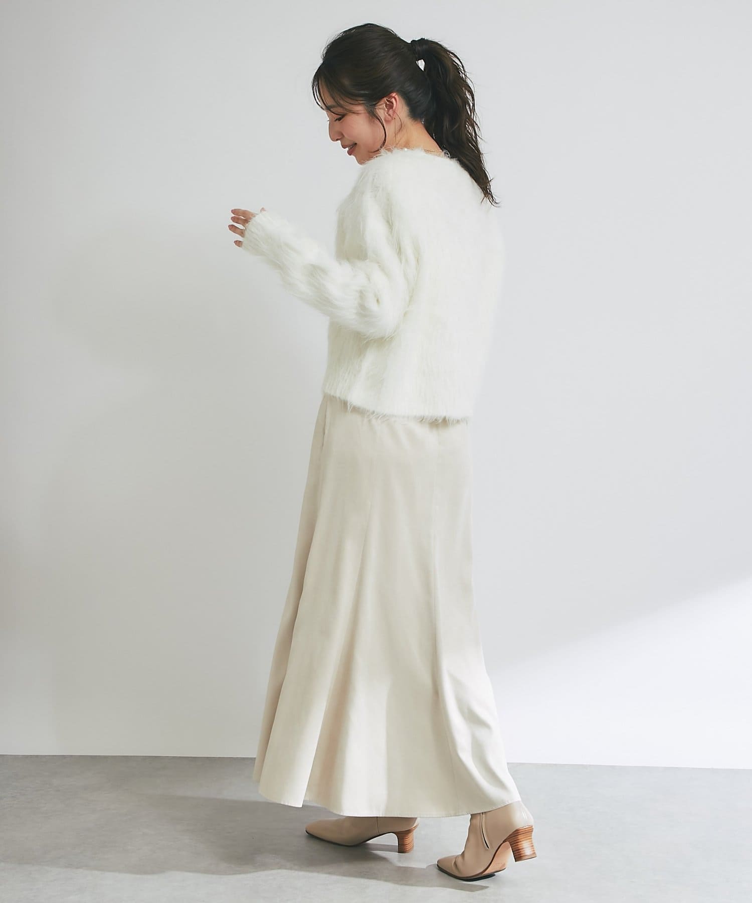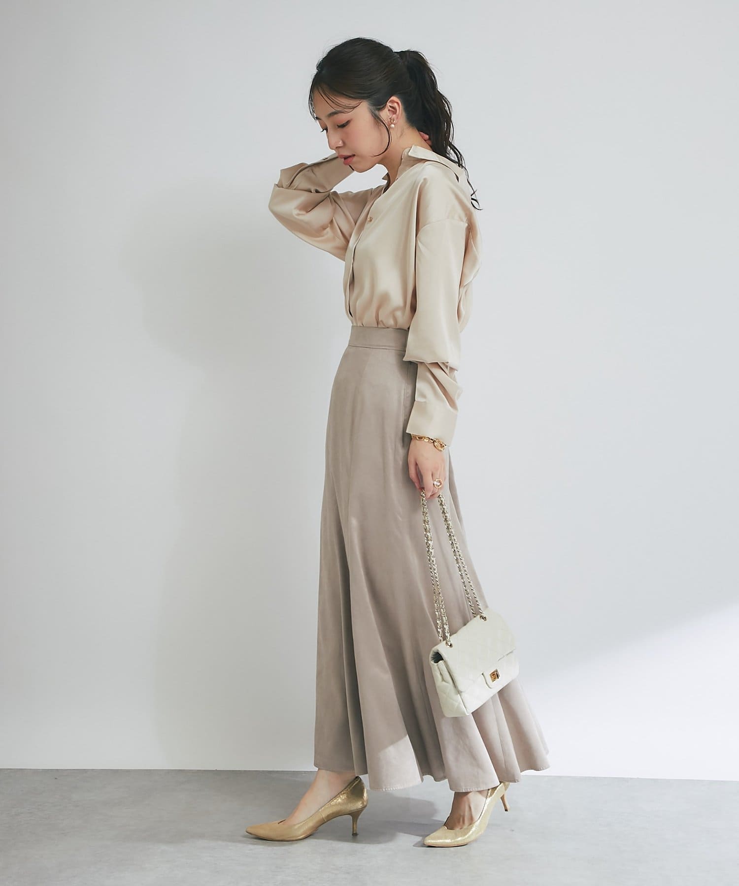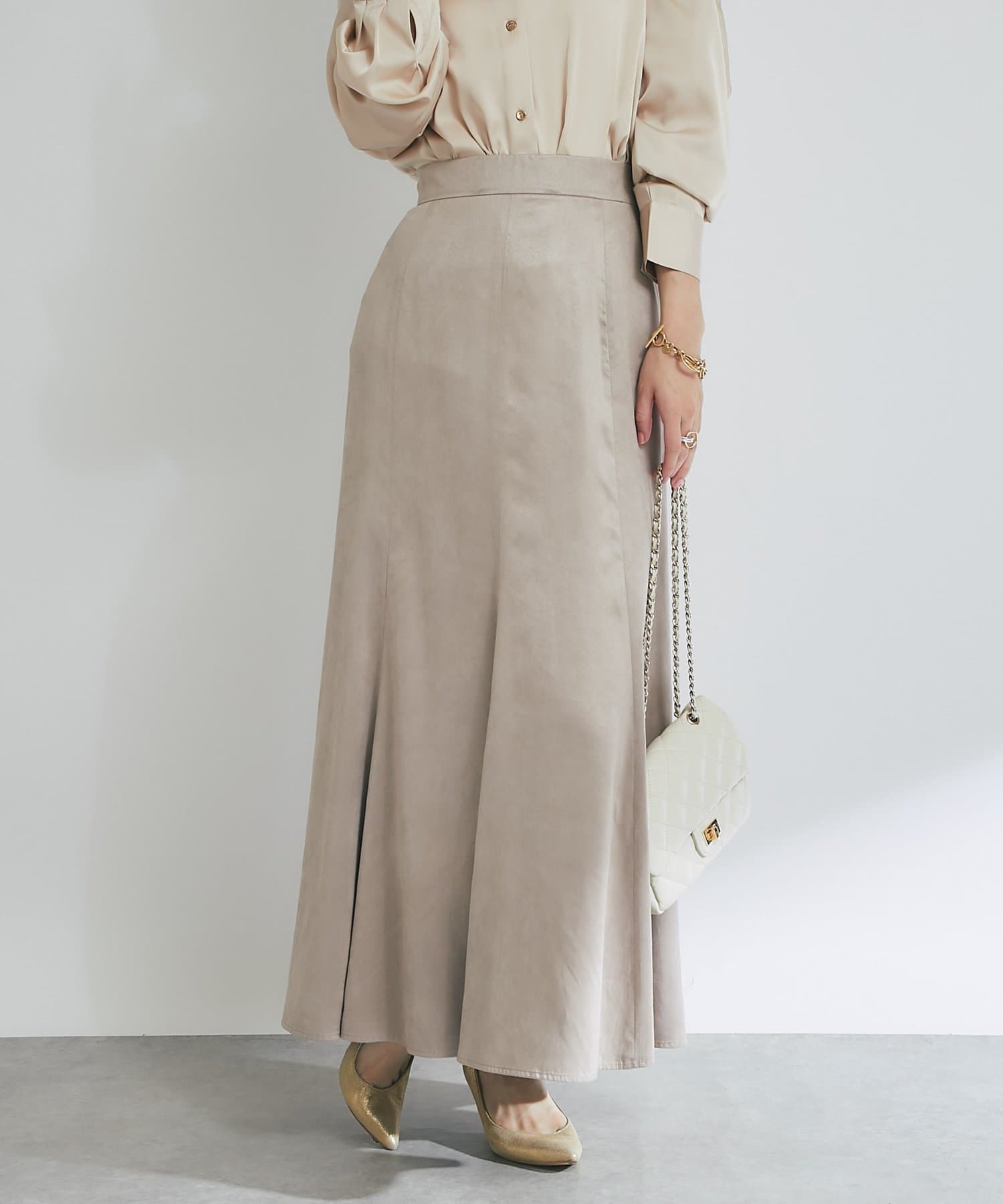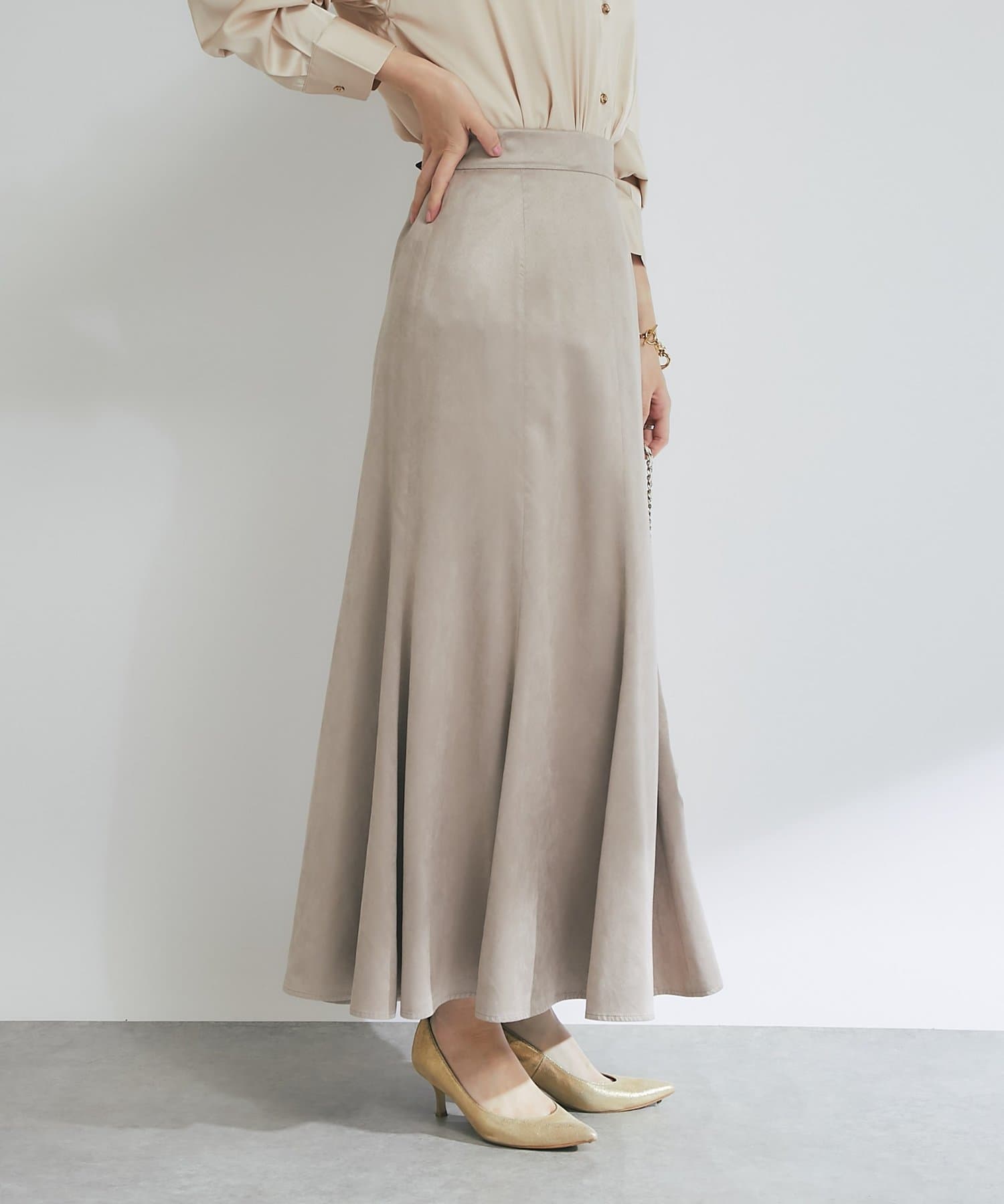 女性らしいシルエットと、上品なフェイクスエード素材が魅力のマーメイドスカート。