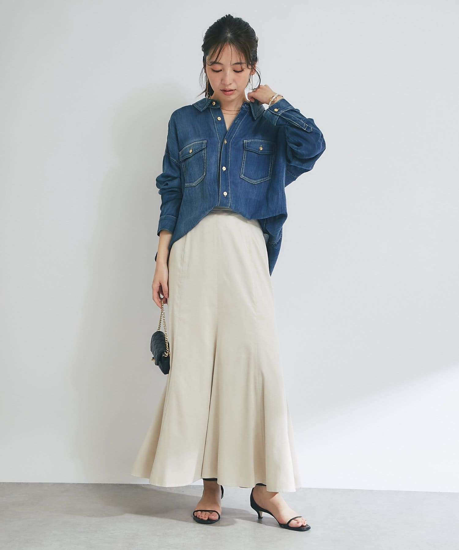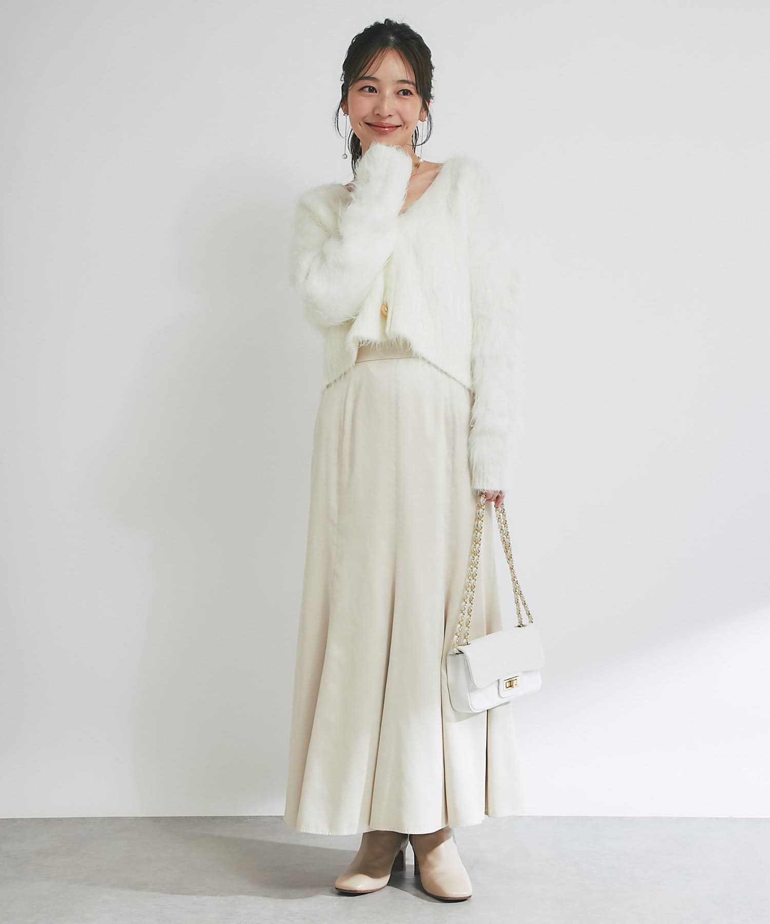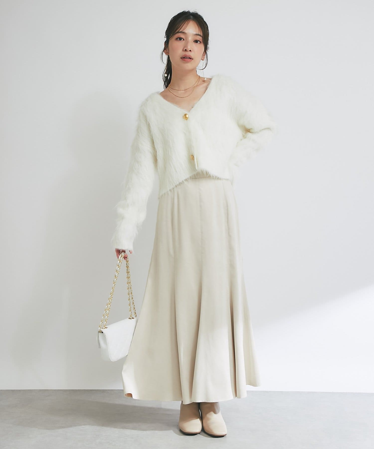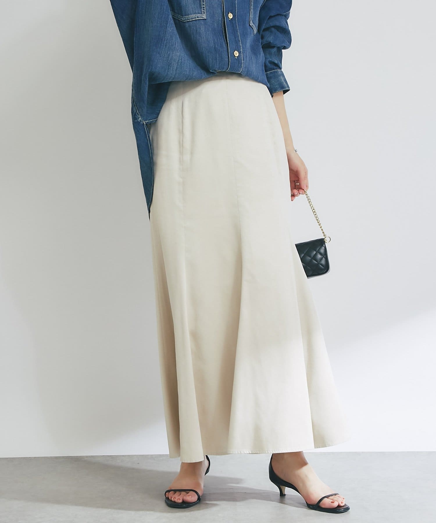 女性らしいシルエットと、上品なフェイクスエード素材が魅力のマーメイドスカート。