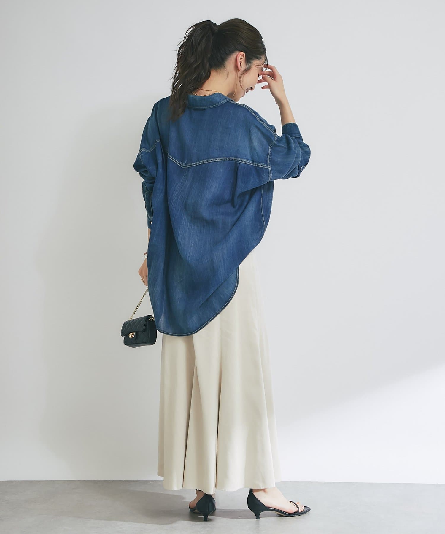 落ち感のある美しいシルエットは、動くたびに裾がしなやかに揺れ、華やぎをプラス。
