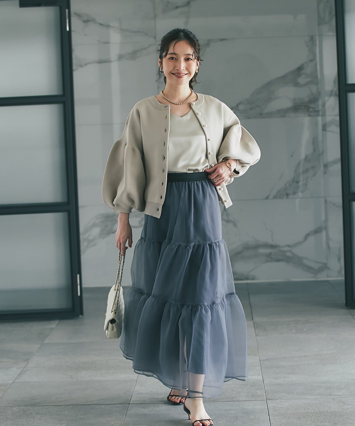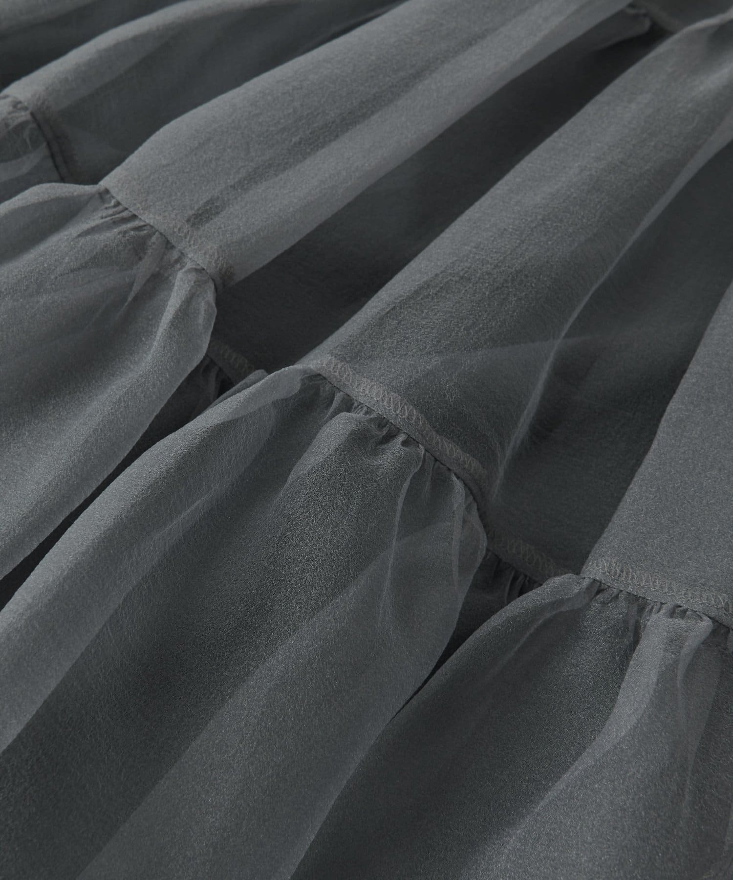 オーガンジー特有の軽やかさとふわっとしたシルエットが魅力的なティアードスカート。