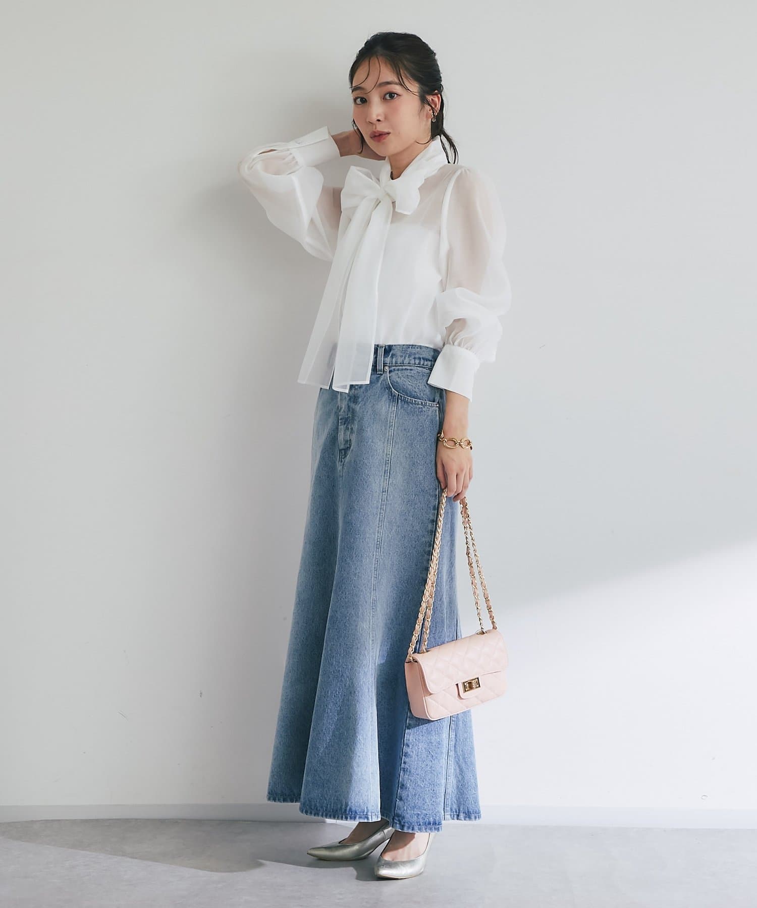 透け感のある軽やかな素材が、甘さを抑えつつ、女性らしい抜け感を演出。