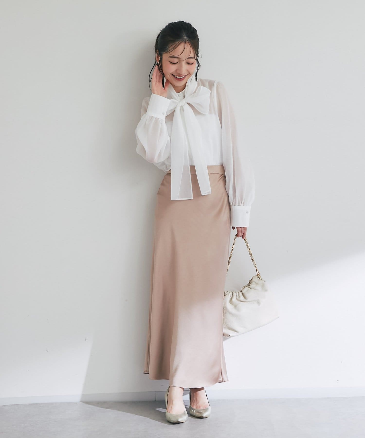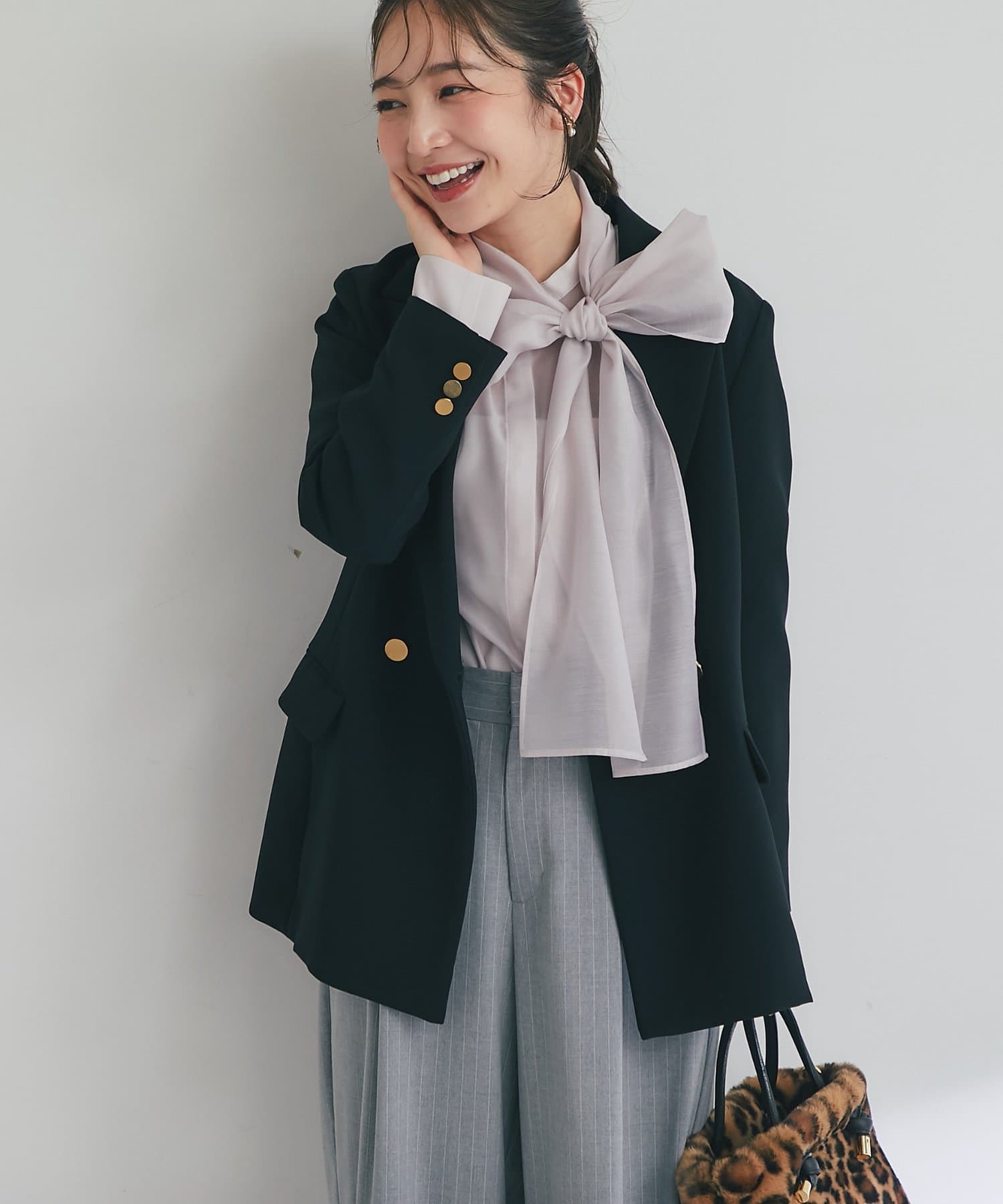 軽やかで洗練された大人のビッグボウタイシアーブラウス