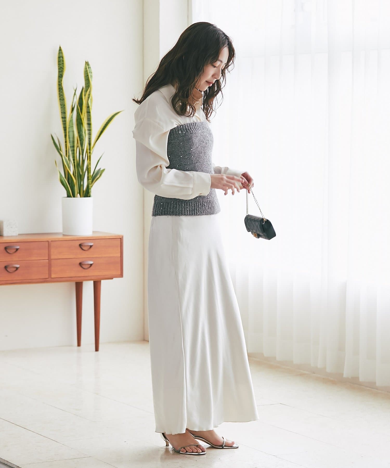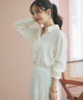ふんわりとしたスカート合わせでフェミニンな印象もおすすめです。