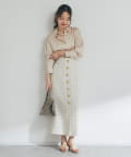 ゴールドボタンが上品なアクセントとなり、シンプルながらも艶やかな存在感をプラス。