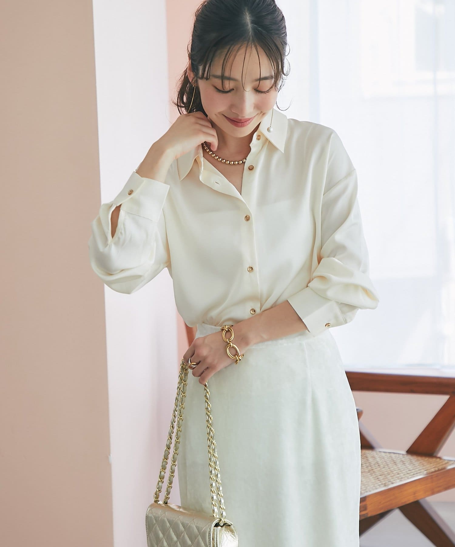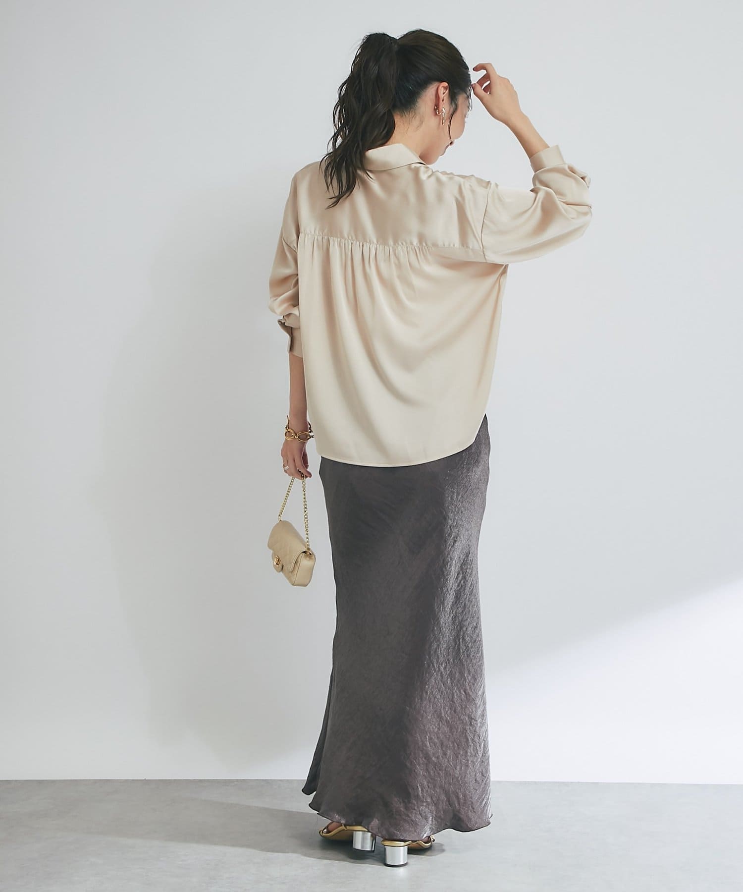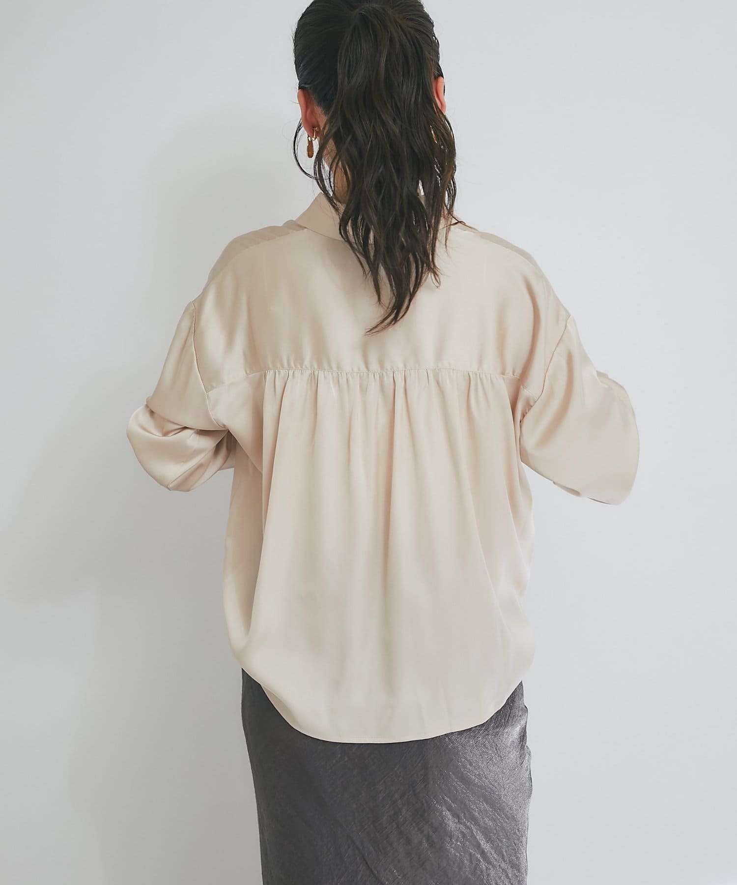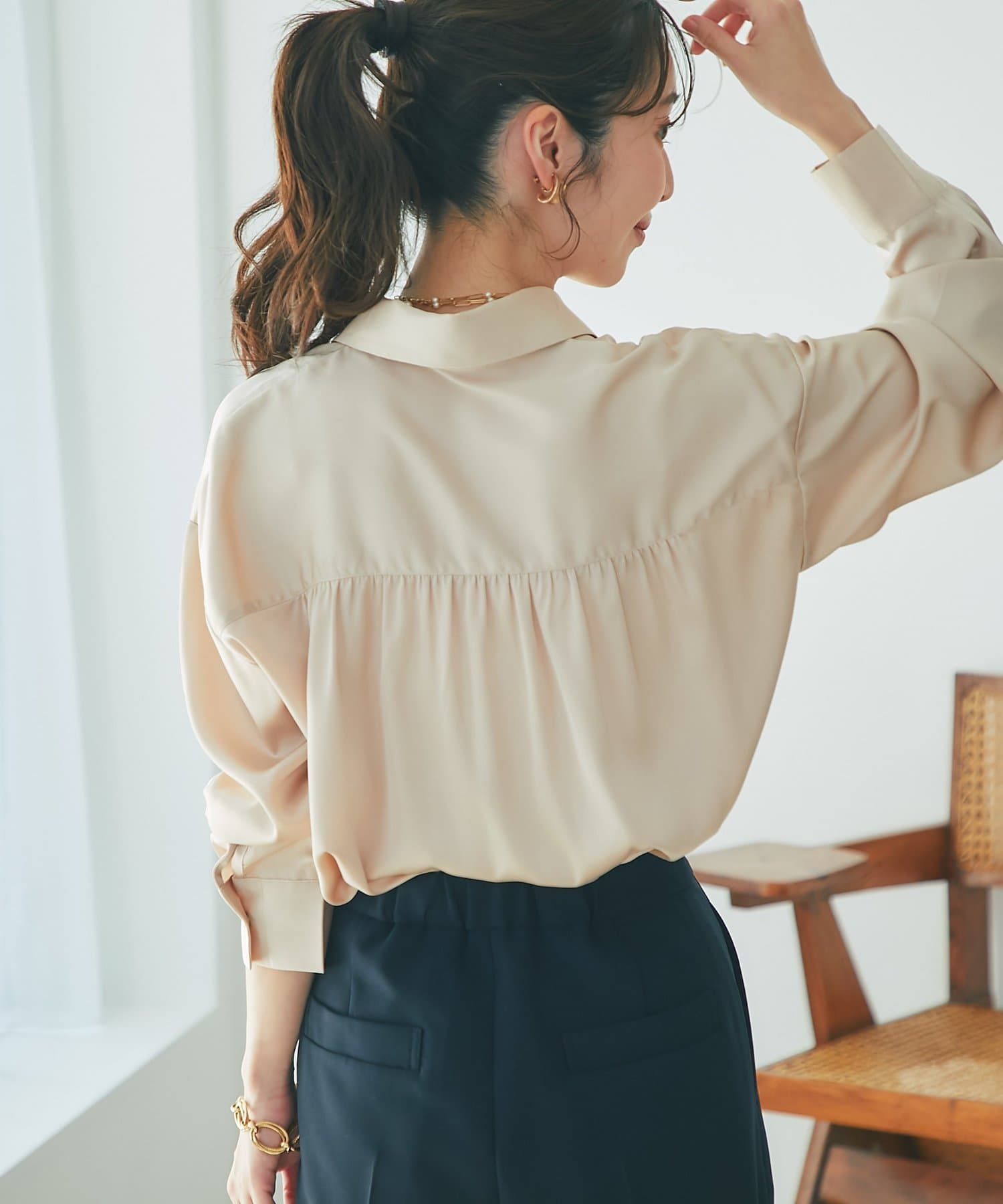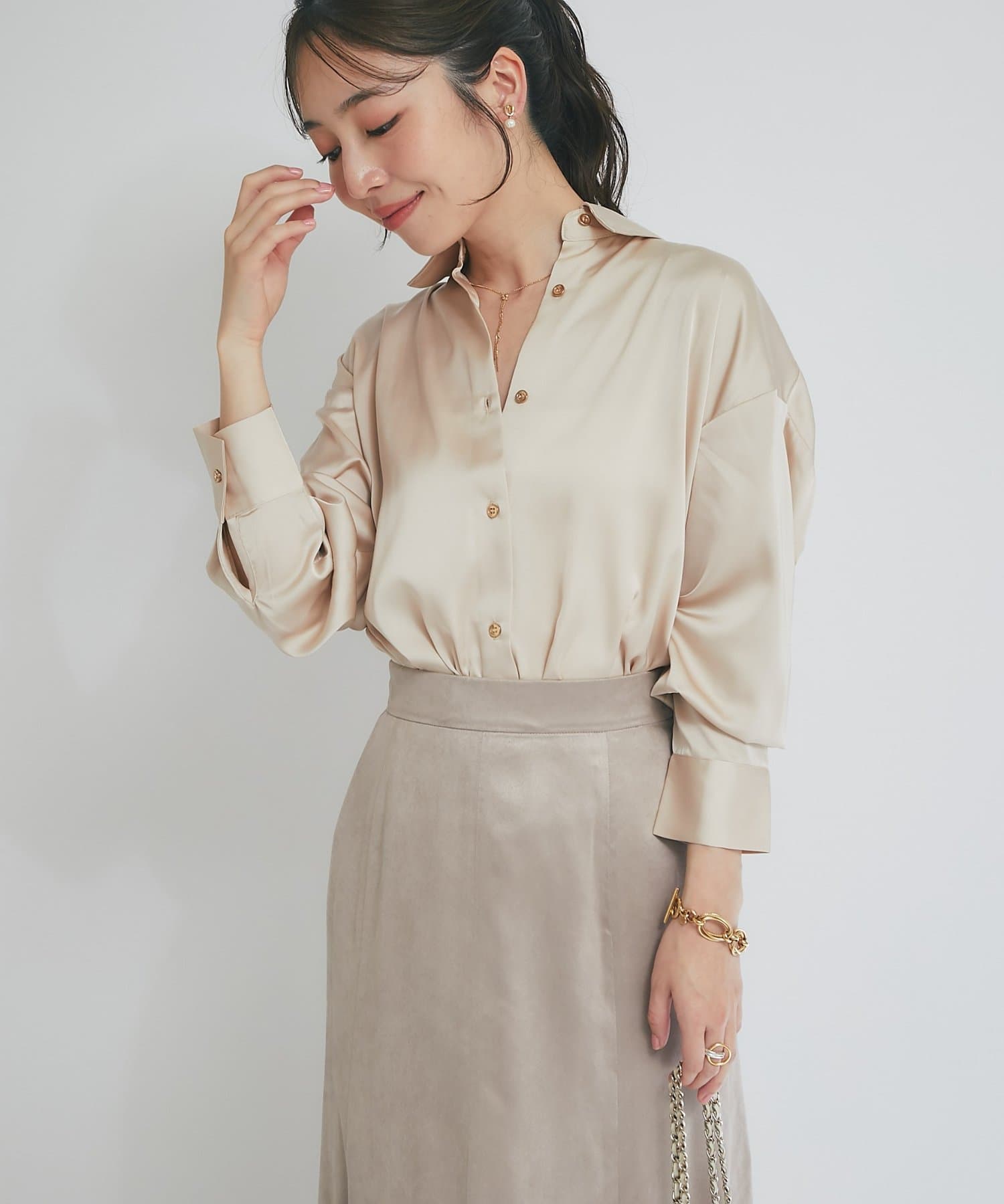 女性らしい艶感と落ち感が魅力の、上品見えするサテンシャツ。