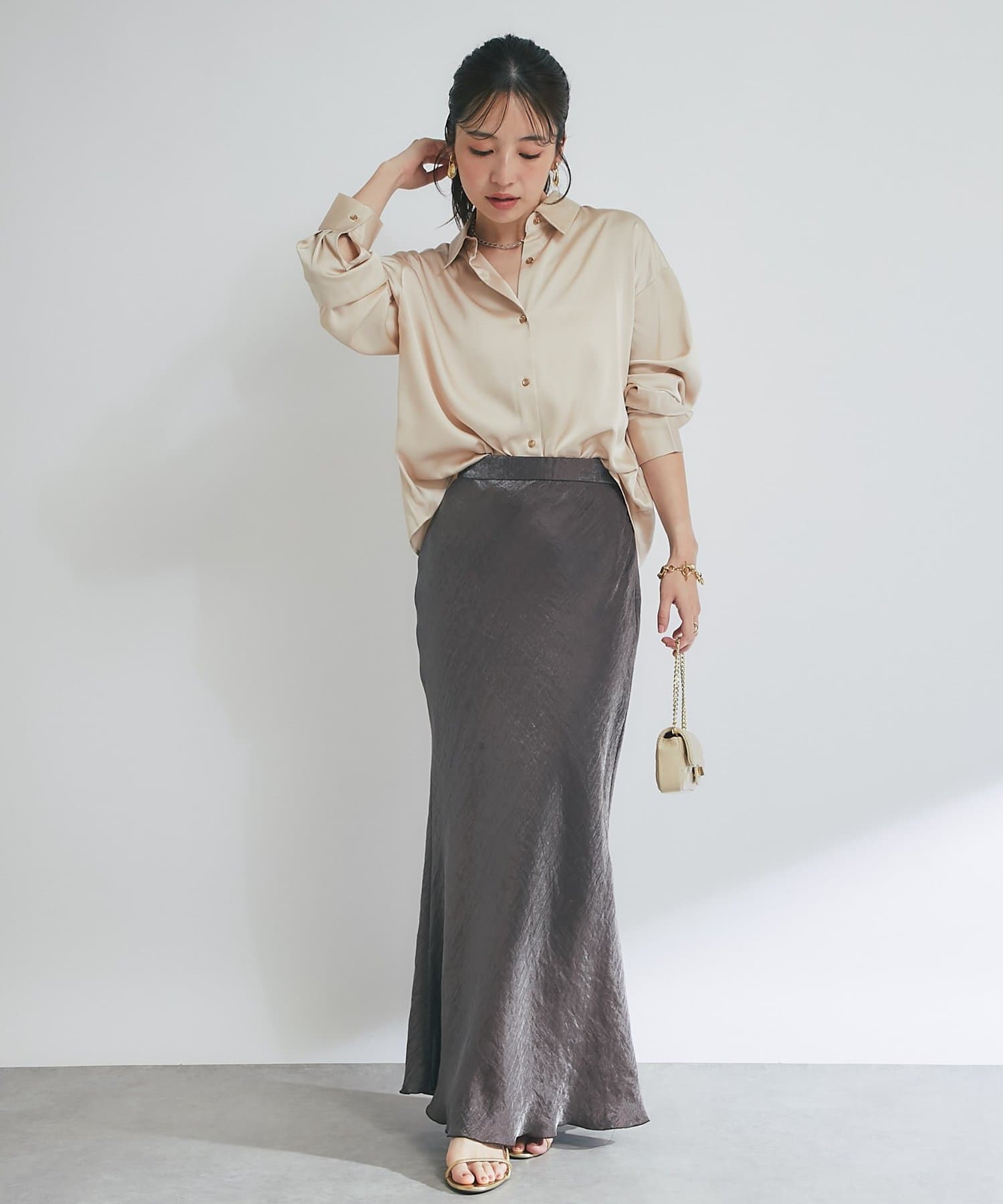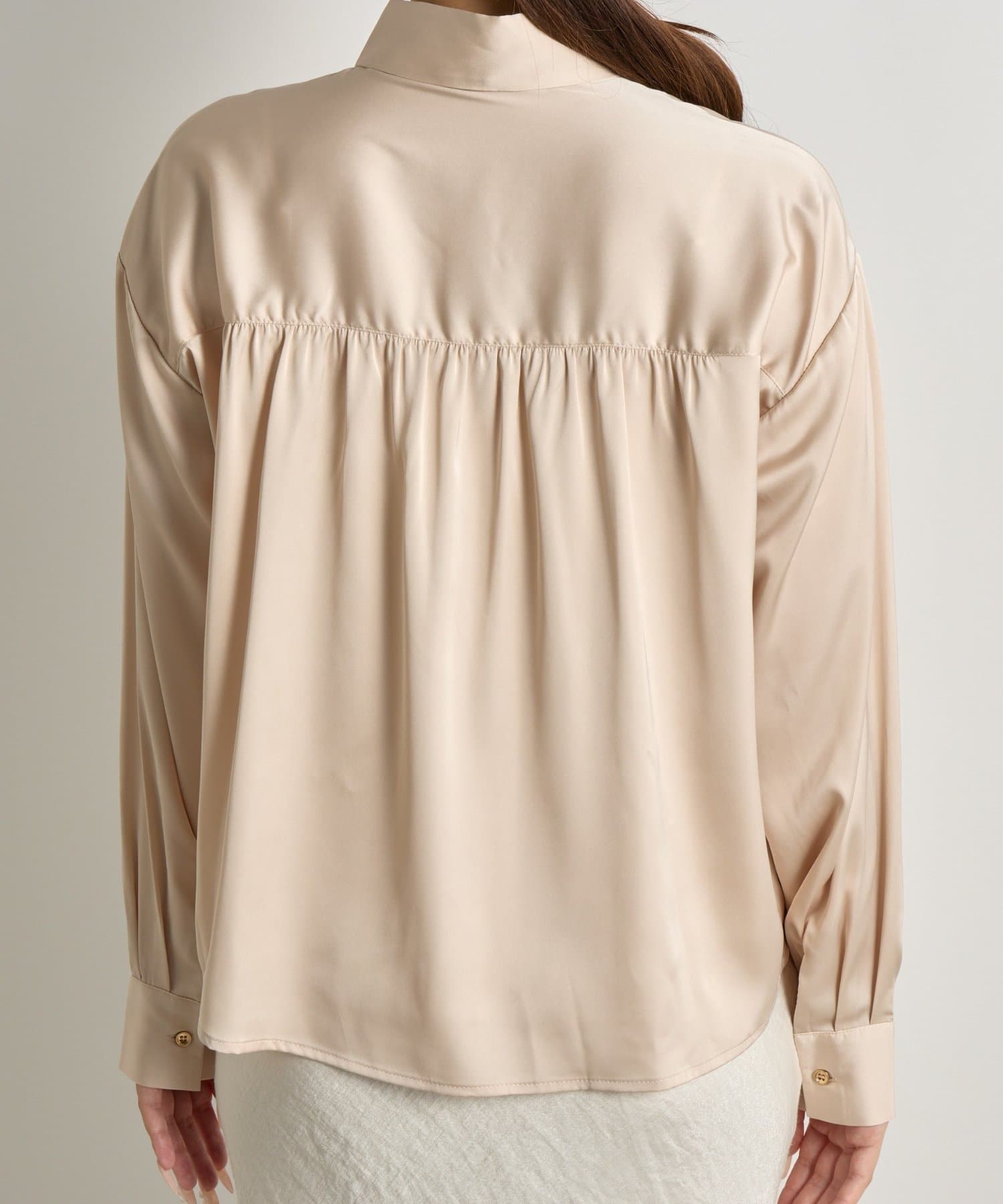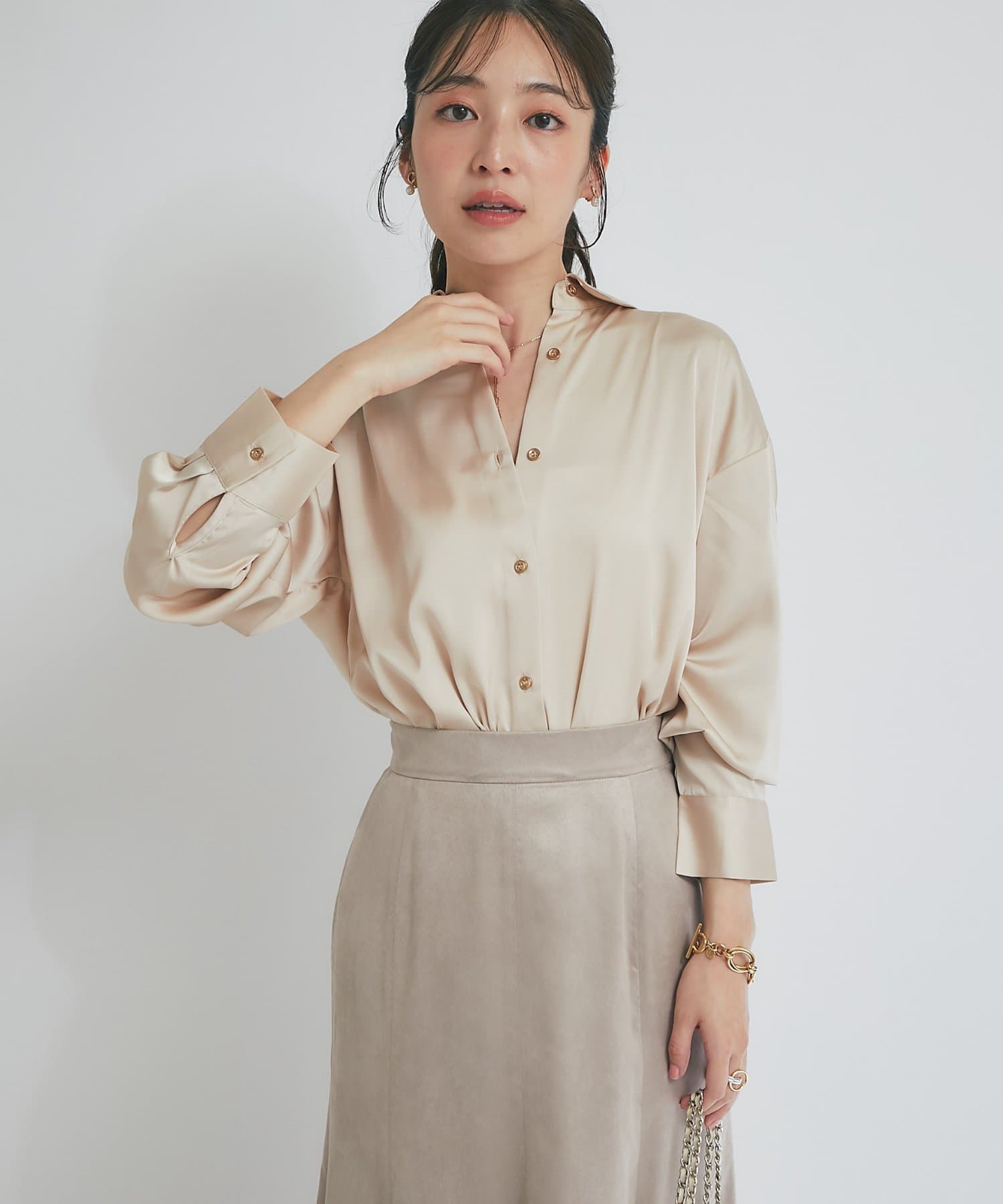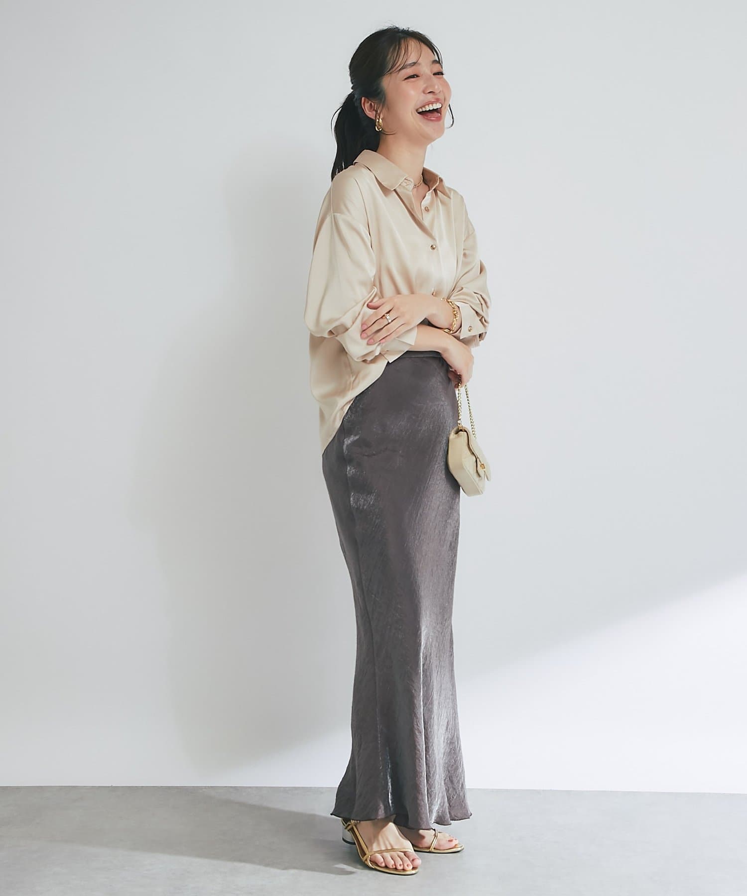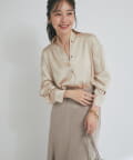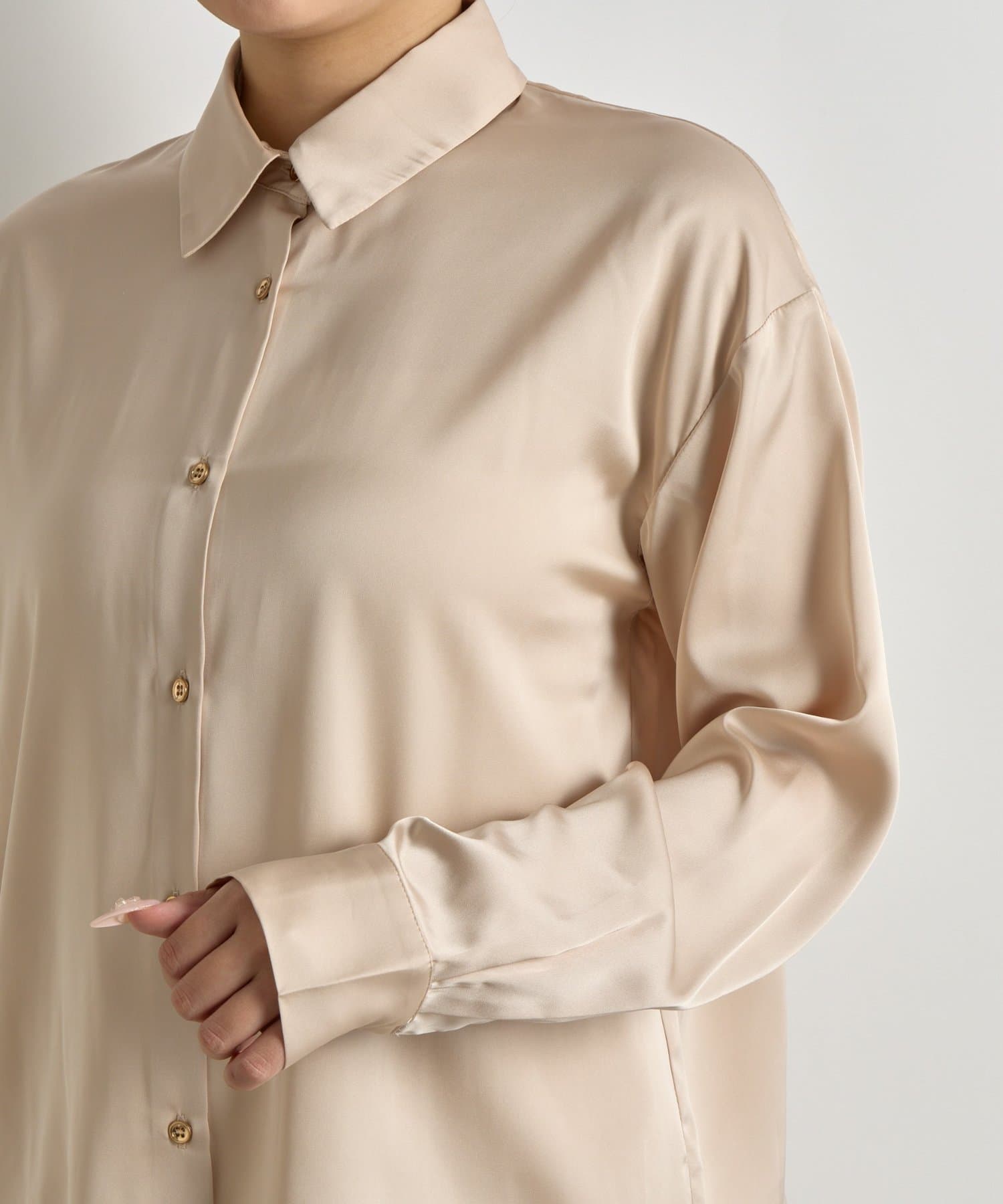 女性らしい艶感と落ち感が魅力の、上品見えするサテンシャツ。